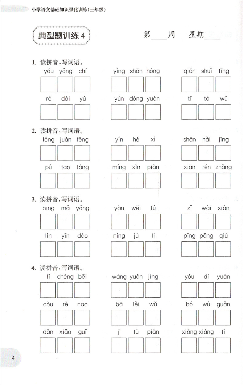 周计划小学语文基础知识强化训练 三年级/3年级全一册 适用各版教材 华东理工大学出版社 每日10分钟小学语文基础知识辅导训练用书