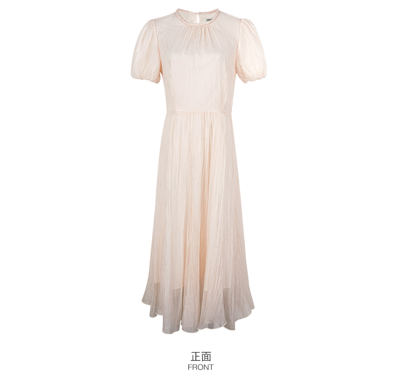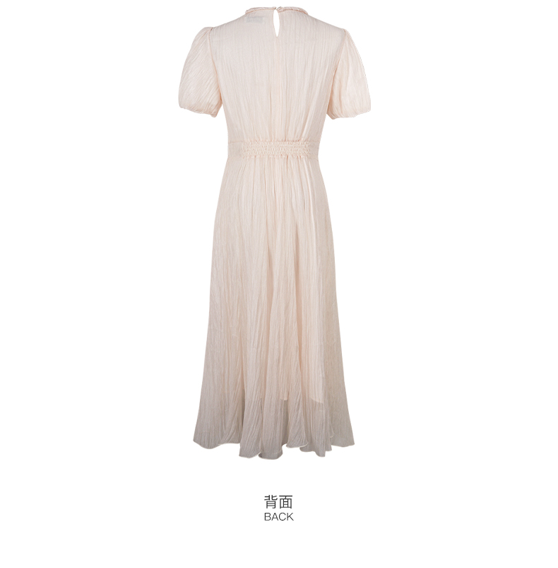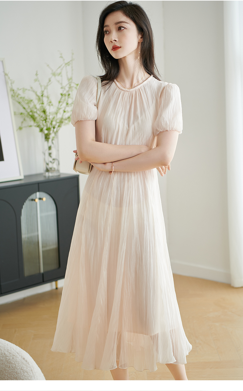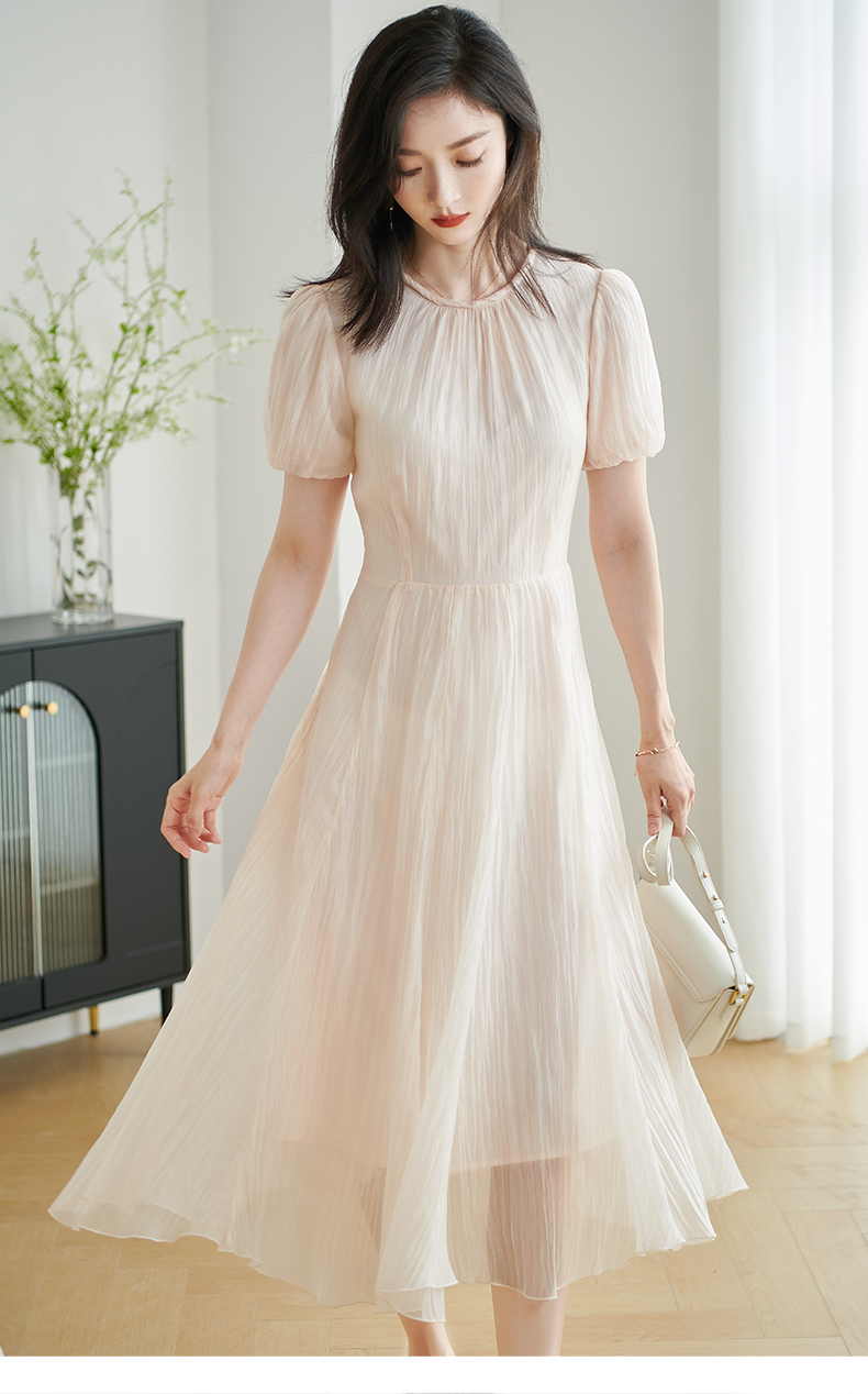 米思阳2025夏季新款优雅气质短袖连衣裙时尚褶皱泡泡袖仙女裙1643