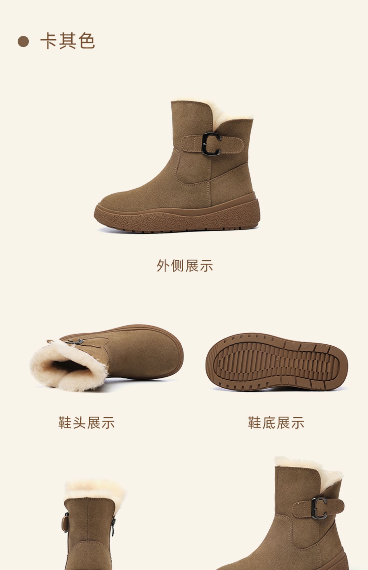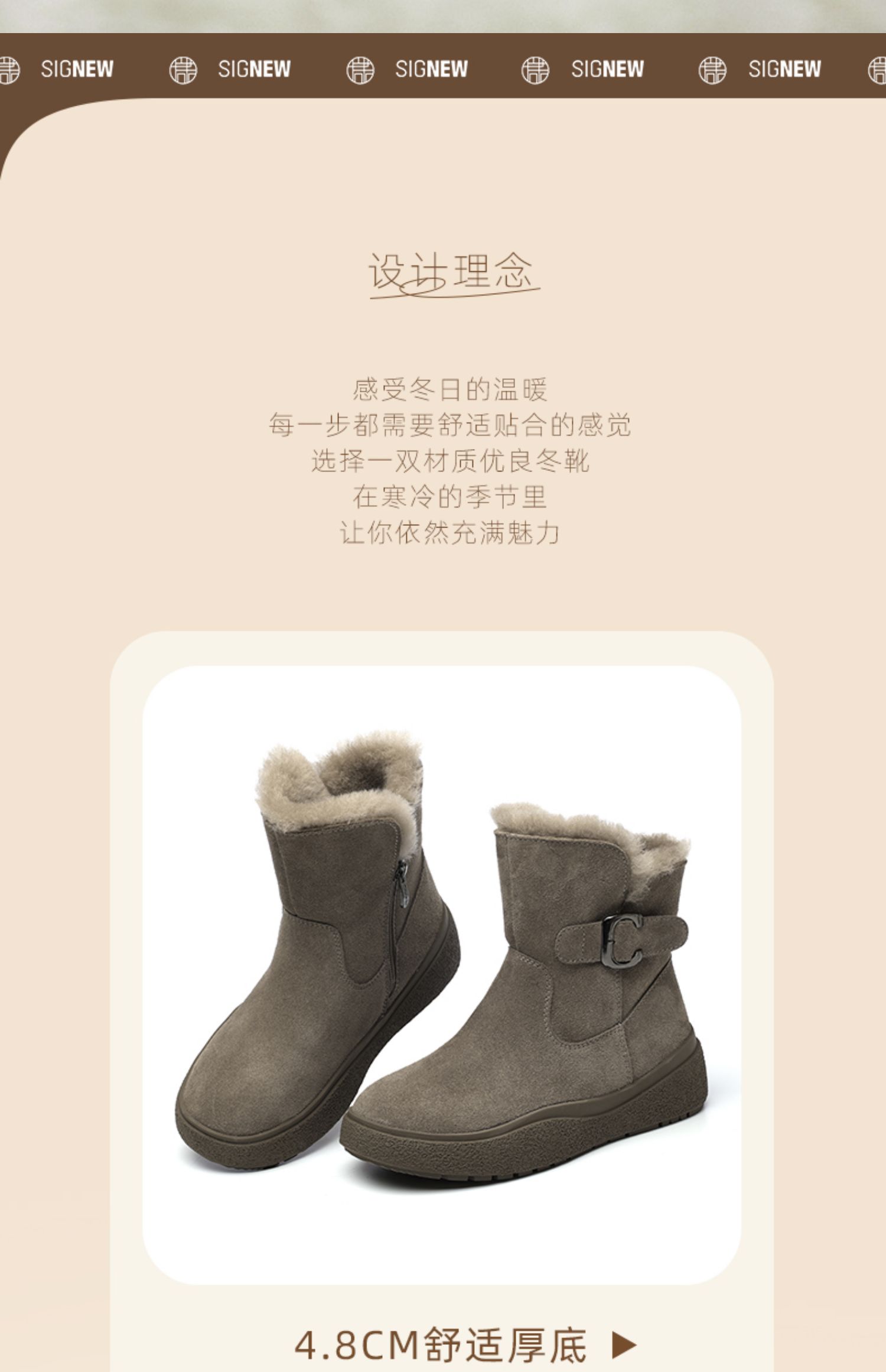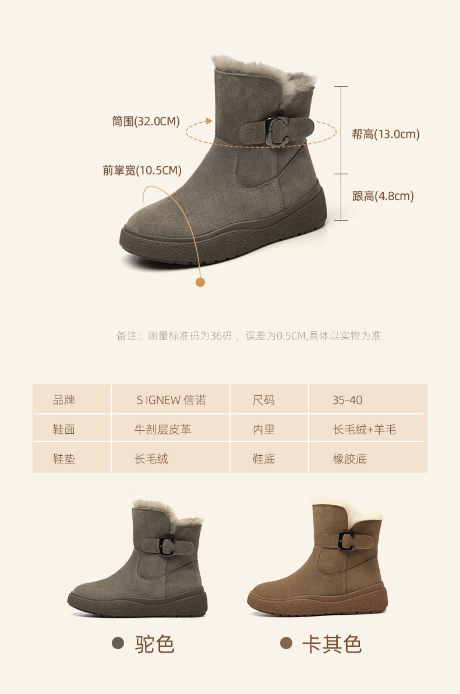 信诺羊毛雪地靴2024冬季新款女鞋加绒加厚保暖短靴厚底妈妈鞋棉鞋