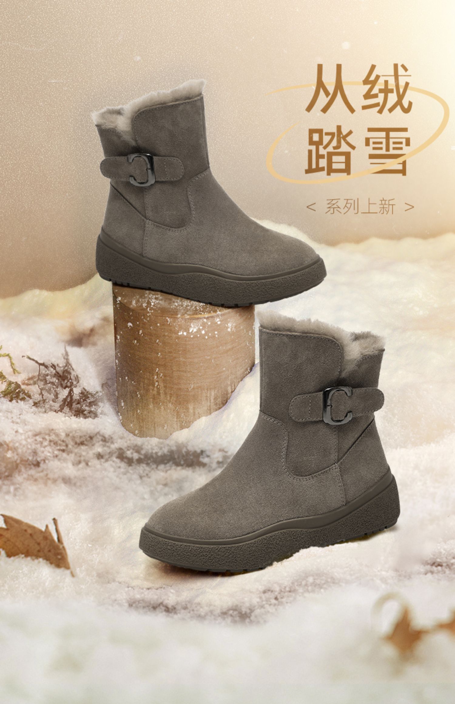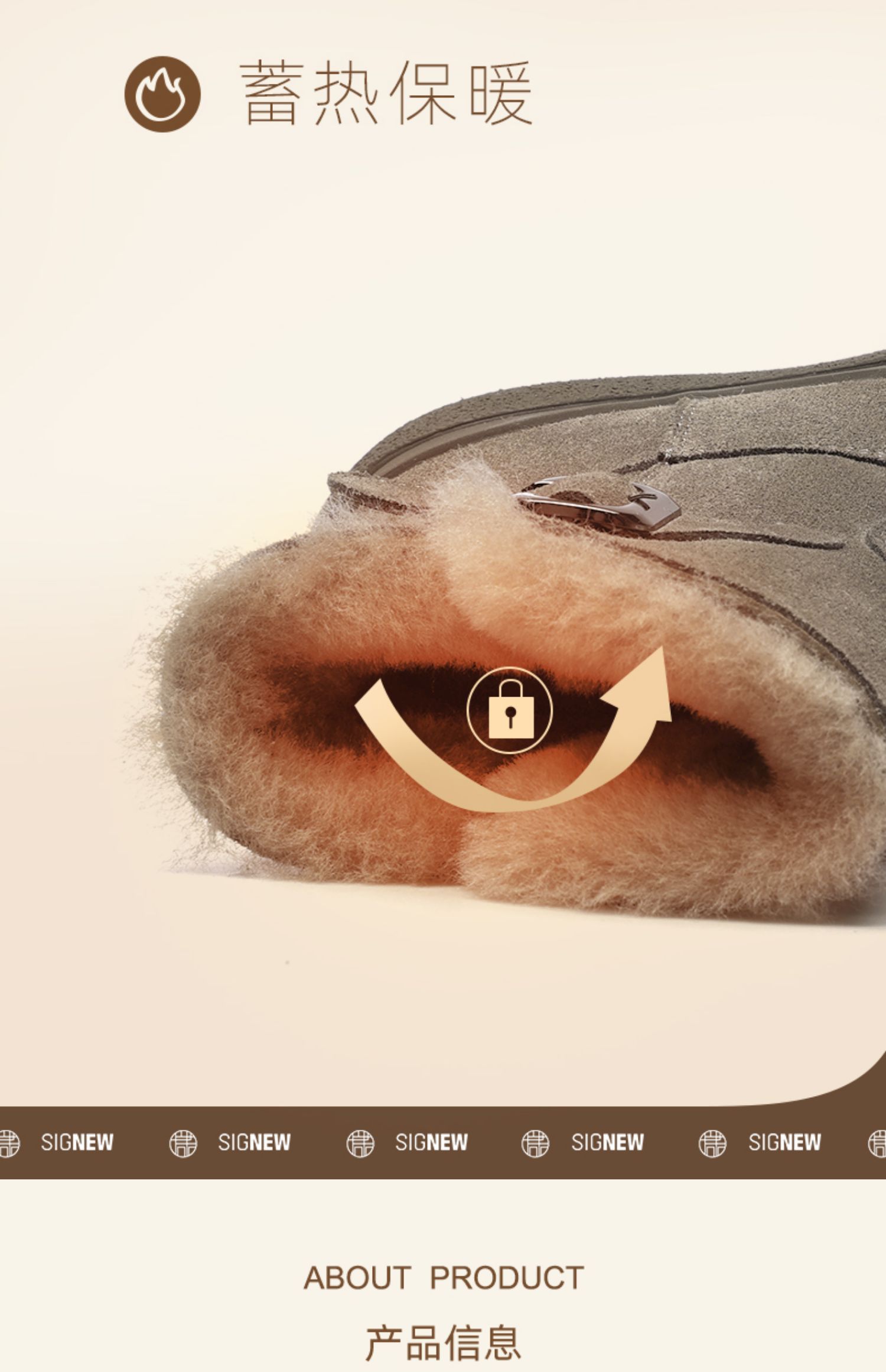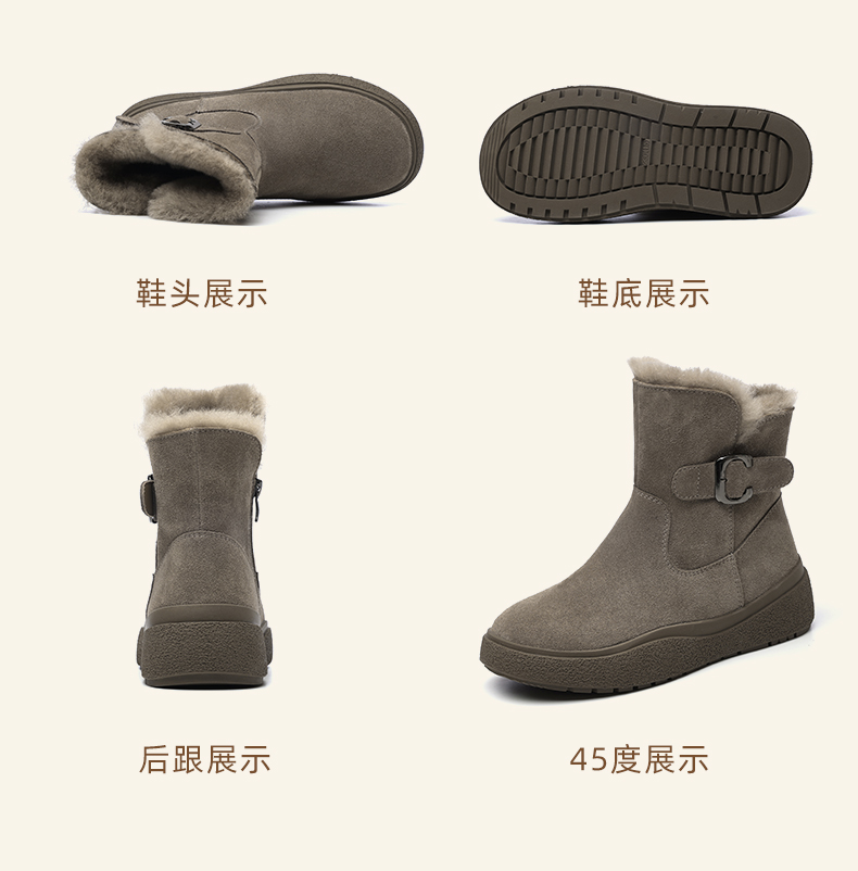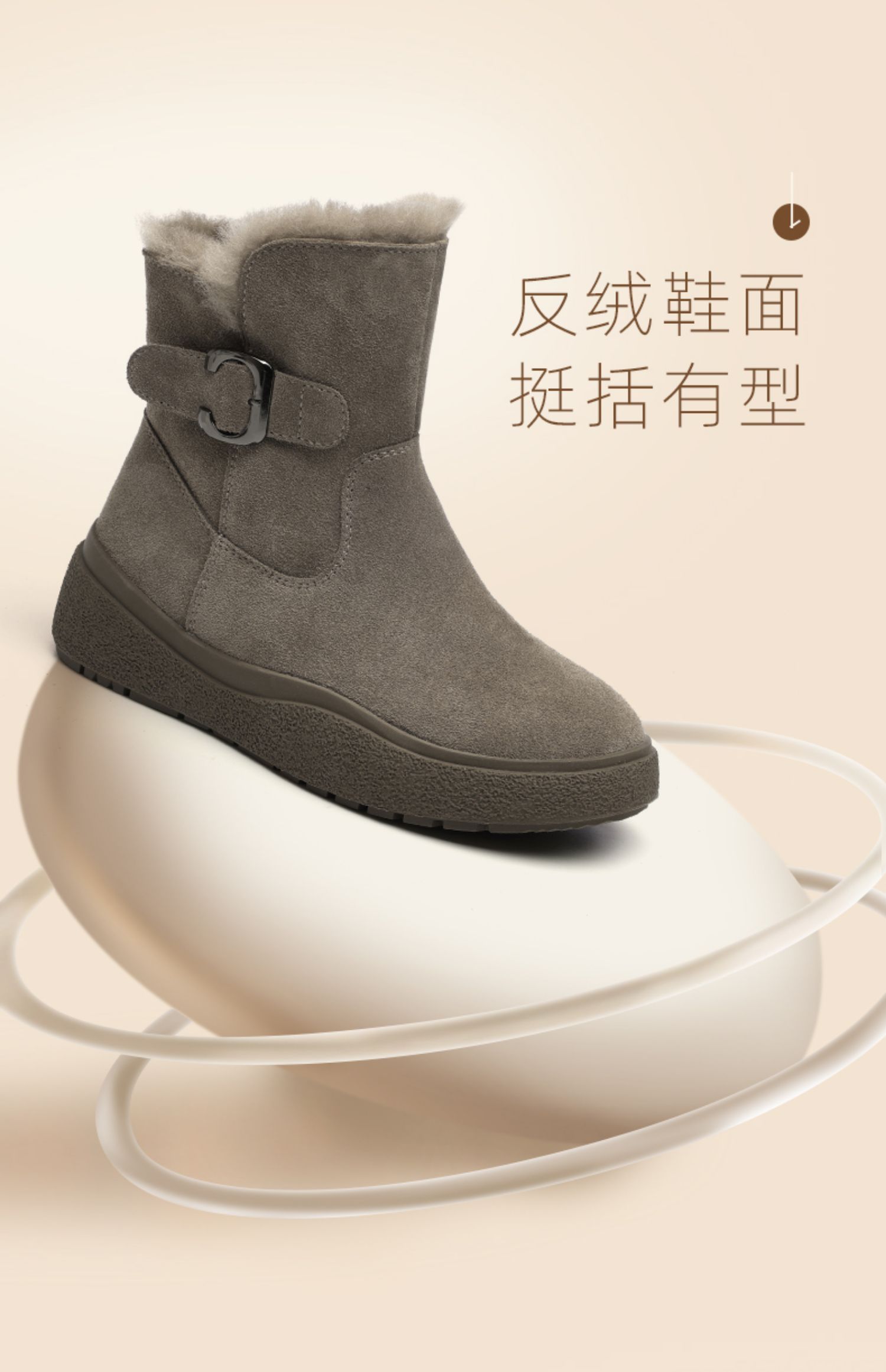 信诺羊毛雪地靴2024冬季新款女鞋加绒加厚保暖短靴厚底妈妈鞋棉鞋