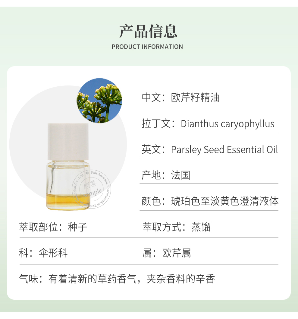 法国进口欧芹籽精油原料法国单方精油厂商颇黎进口天然欧芹籽精油