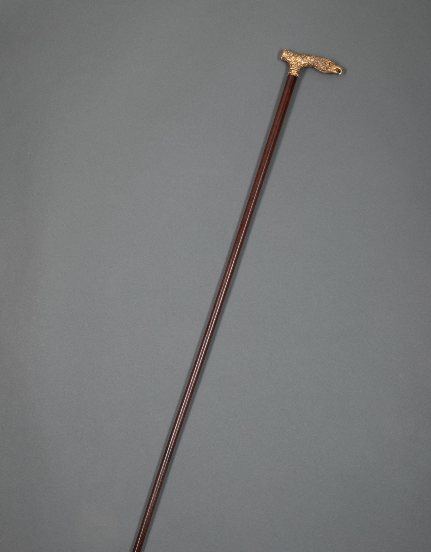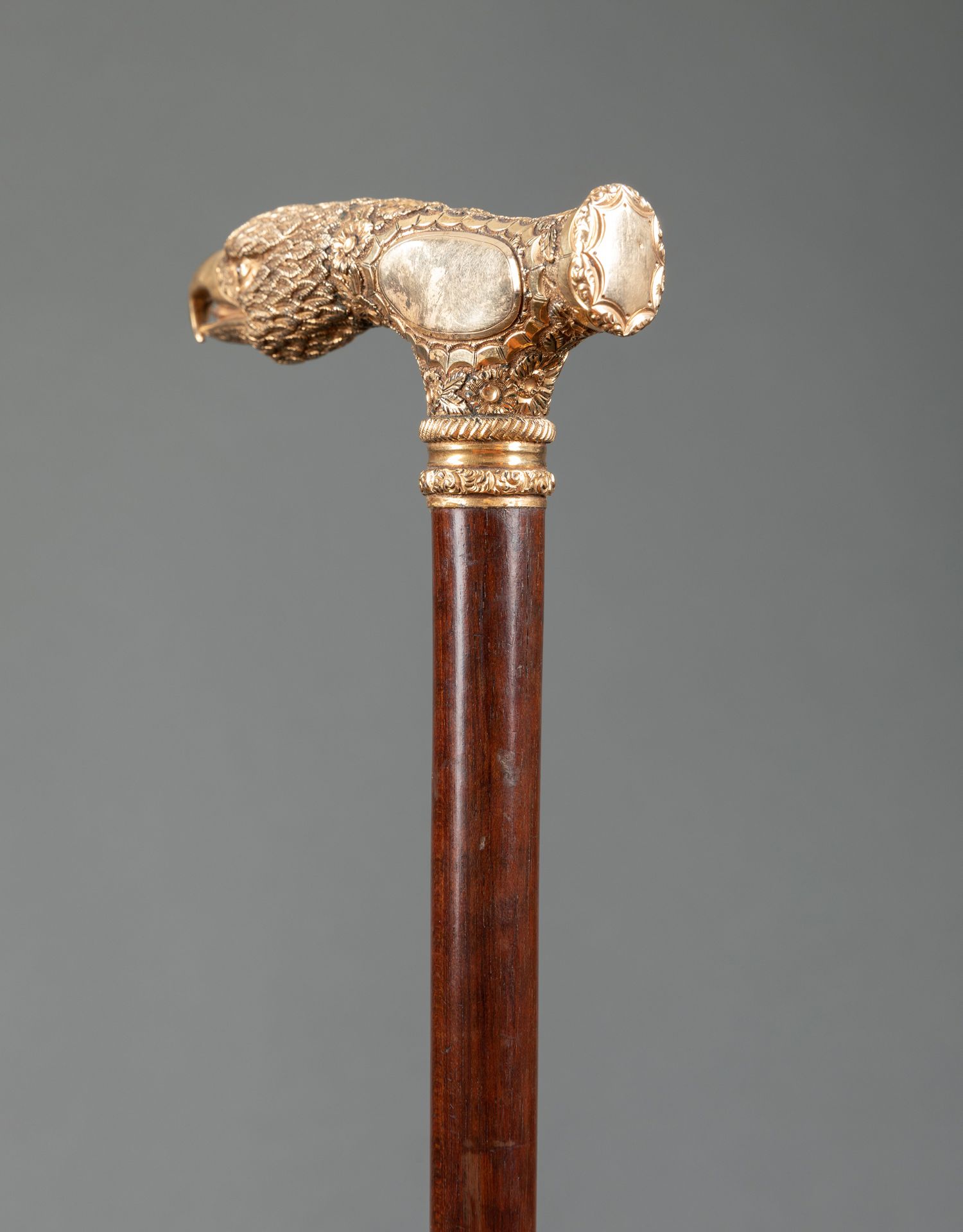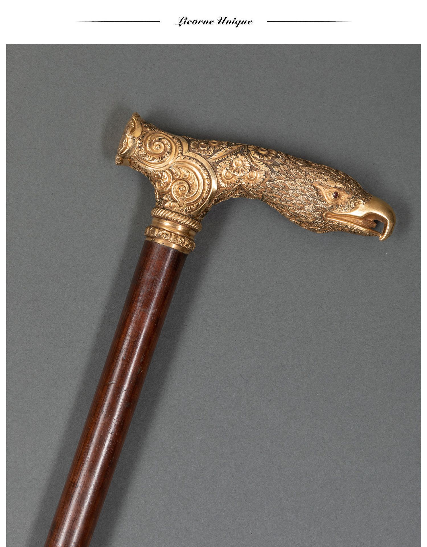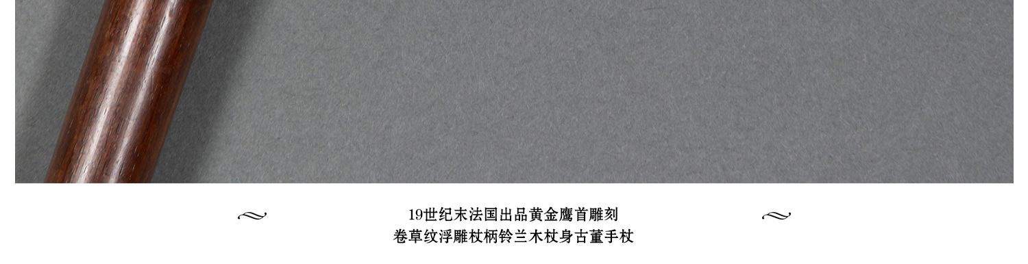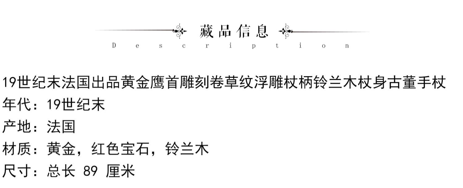 独角鹿西洋古董法国黄金鹰首雕刻卷草纹浮雕杖柄铃兰木杖身手杖
