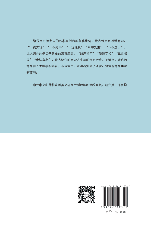 一个绰号,一段故事,每个绰号都蕴含着一份历史的沉淀。在中国极具特色的众多官吏中,有廉洁奉公的清官,也有臭名昭著的贪官,他们的绰号背后都有故事。本书对他们的绰号进行解读,既论述了清官、贪官做人做官的轶闻趣事,又对绰号产生的过程和人生的归途进行了总结;既表达了对清官高尚情操的赞美,又鞭挞了贪官的卑劣行为。