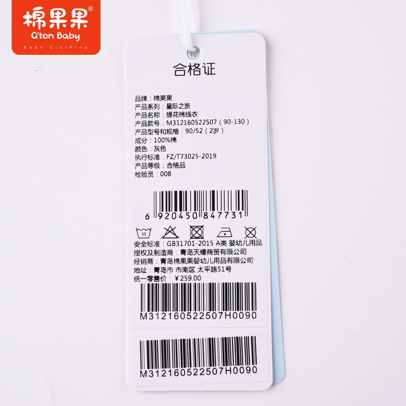商场同款棉果果秋季新款男童全棉提花棉线衣套头毛衣舒适柔软M312160522507