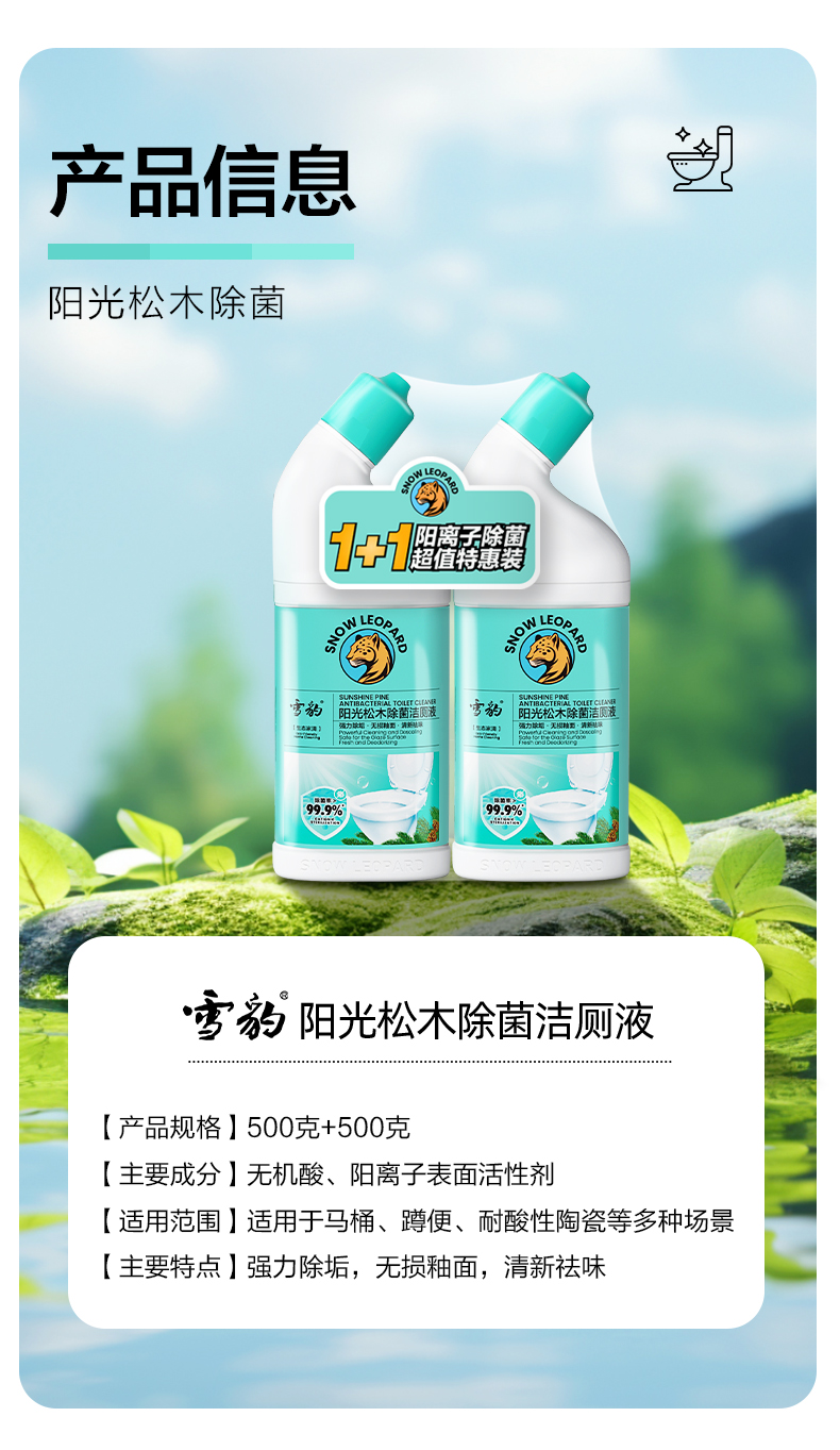 雪豹生态家清 阳光松木除菌洁厕液 (阳离子除菌)500g*2 L30296