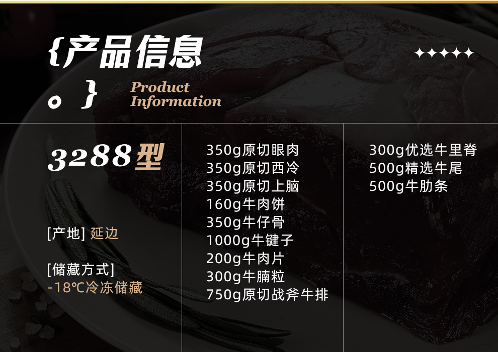 蟹状元 延边黄牛肉 礼盒 清真 牛腩 牛肋条 原切眼肉 原切西冷 牛排 牛仔骨等
