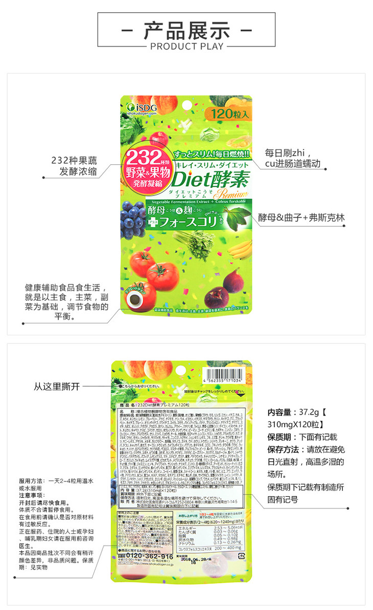 ISDG 日本进口 黄金酵素120粒/袋