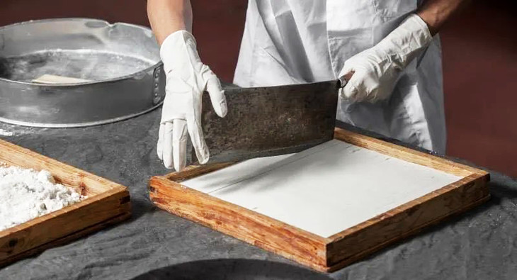 配糕粉 | 大米和糯米用60℃的温水浸泡,然后晾干磨成糕粉炒熟。用滚筒碾成绒,过筛使用。