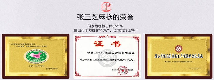 112年的历史洗礼,自林商号不仅屹立不倒,还壮大分成了三派,其中以“张三”芝麻糕的名号更为响亮,成为“国家地理标志保护产品”、“眉山市非物质文化遗产”。