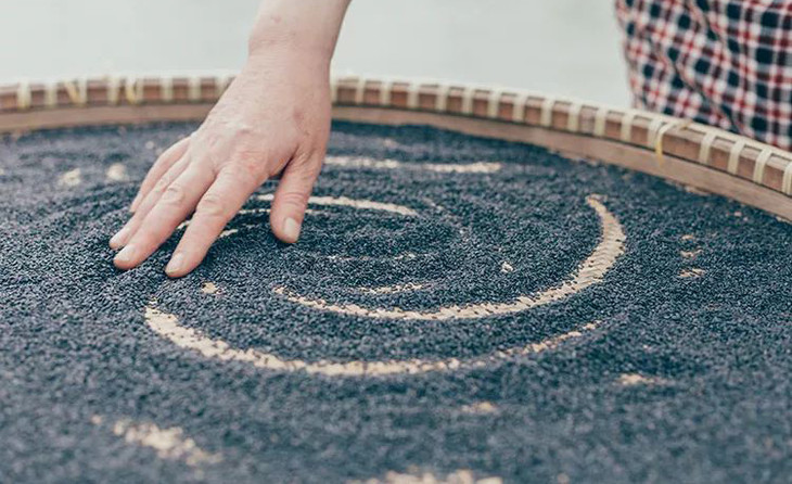 选芝麻 | 芝麻先在筐里细细挑选,把坏的差的都选出。然后用白纱布包着反复清水沥洗5次,保证没有细沙,再放到阳光下自然晾干。