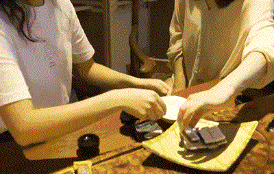 当地人还有一种创意吃法。倒一碗开水,放入3块芝麻糕搅拌,就成了一碗快手芝麻糊。浓稠香滑,可以与糖水店现磨的味道媲美。
