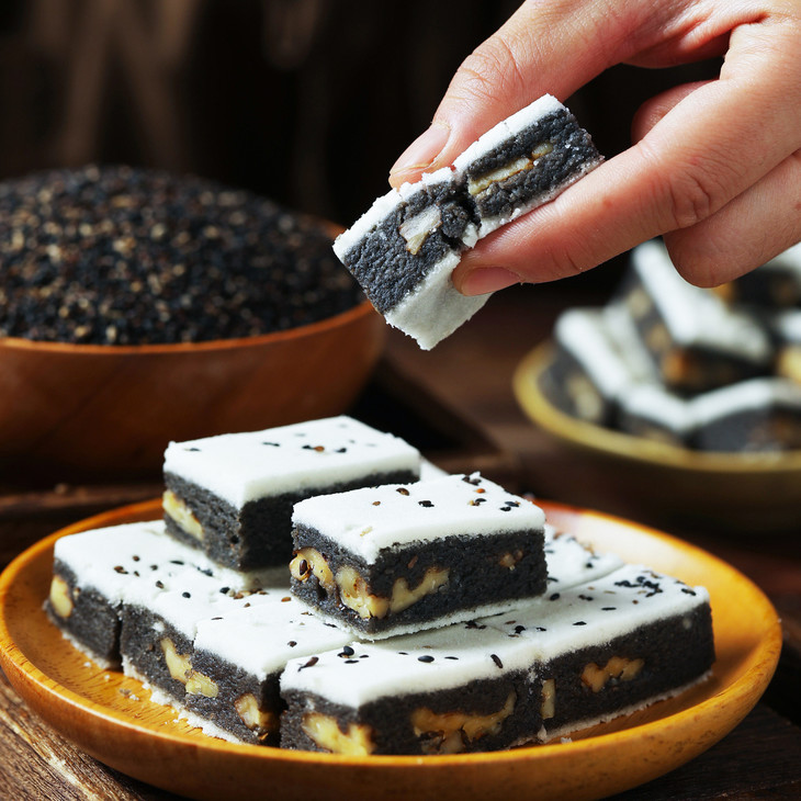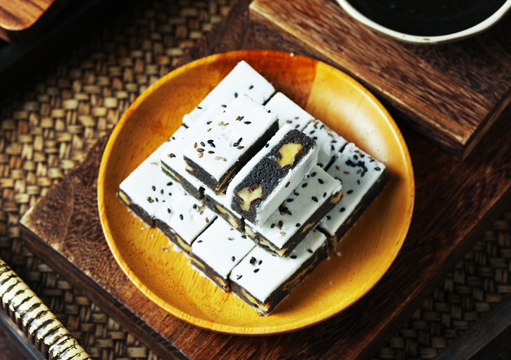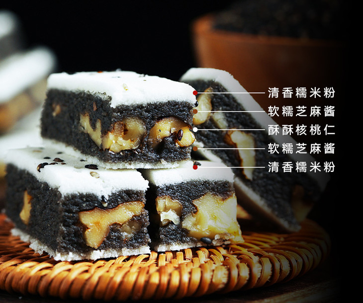 两头是清香糯米粉,中间是软糯芝麻酱,里面还夹着酥酥的核桃仁。