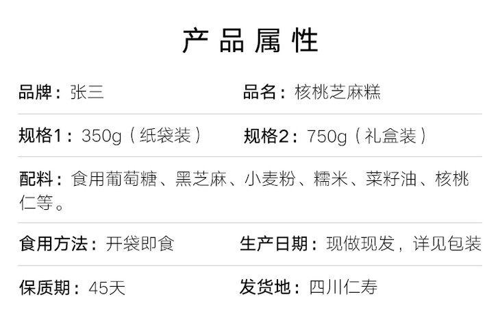 (温馨提示:由于芝麻糕为现做现发,保质期为45天,收到糕点后应尽快吃完。)