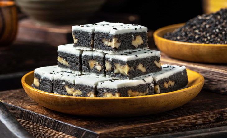各种精致点心铺陈于席,却有一款黑不溜秋的糕点,作为糕点登上了大雅之堂,让席上宾客都食之开怀。