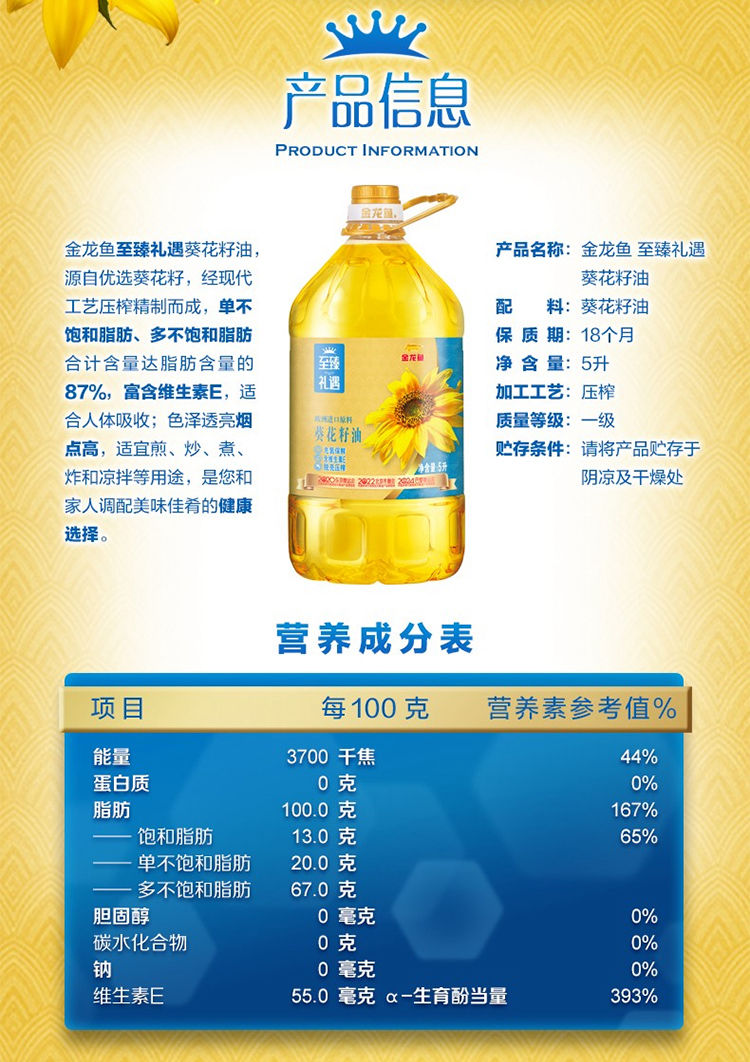 金龙鱼至臻礼遇 葵花籽油 5L【NB】