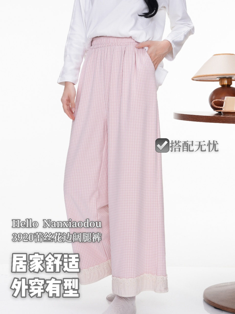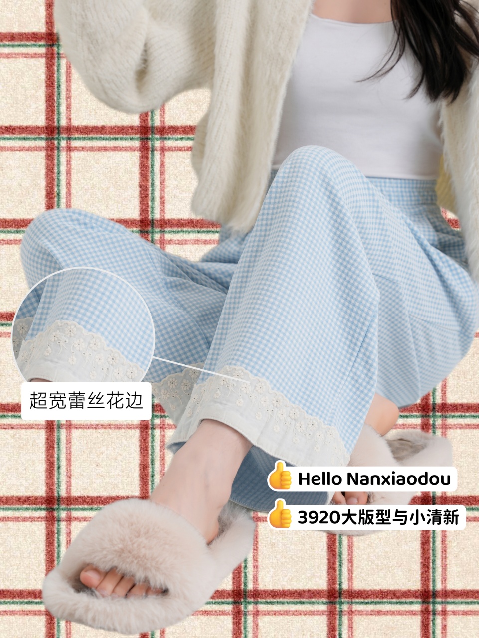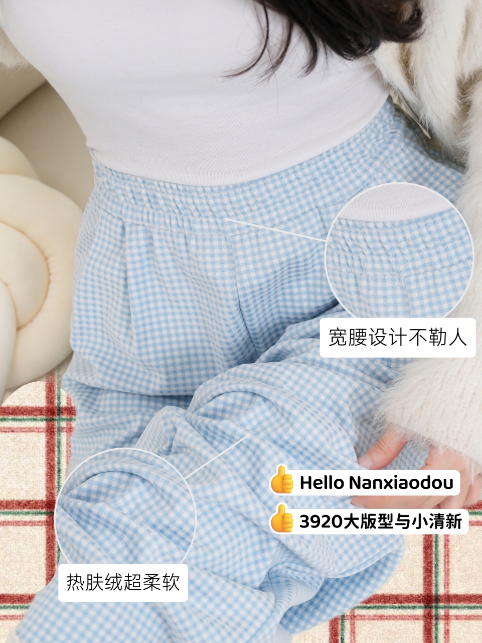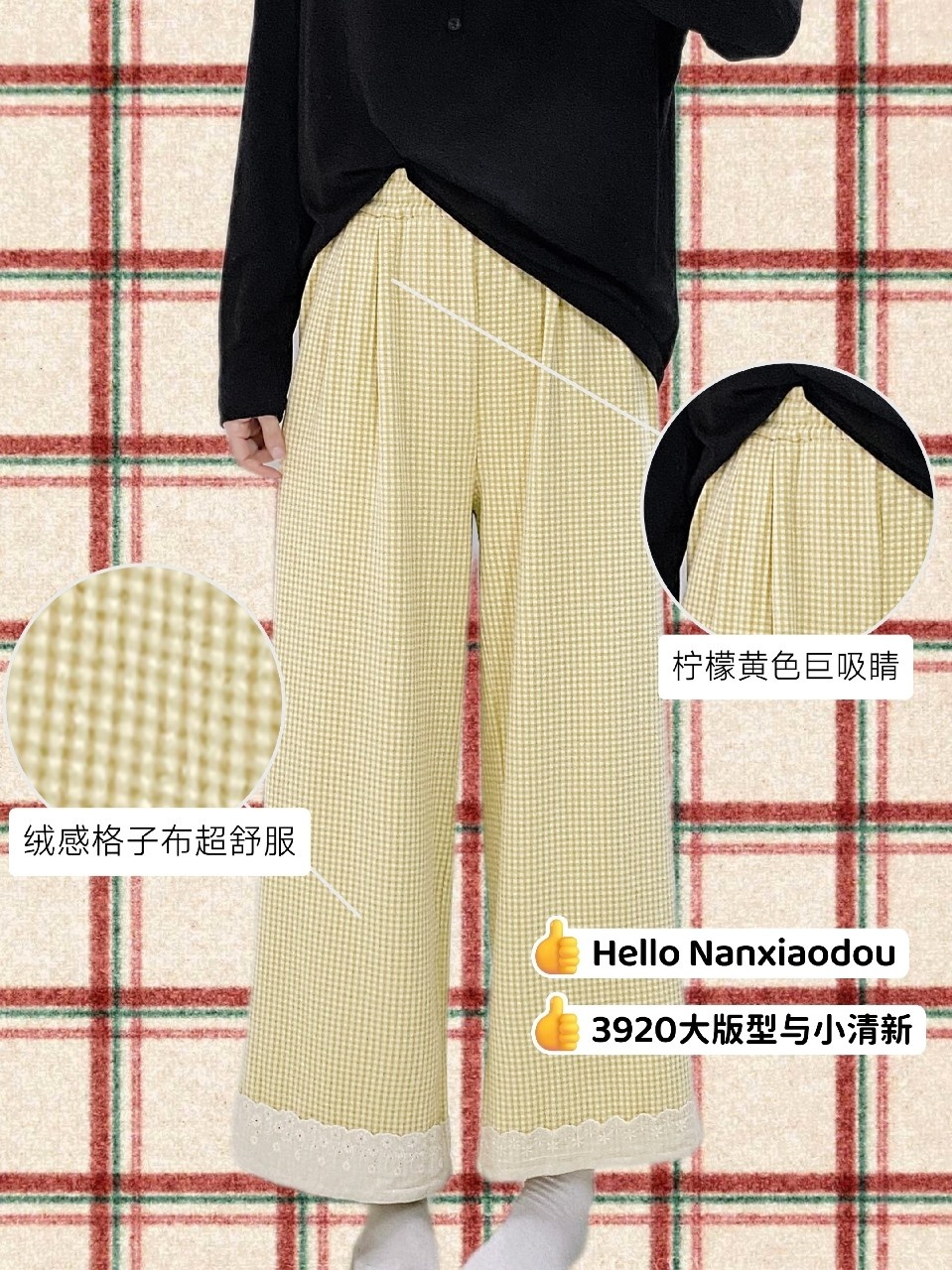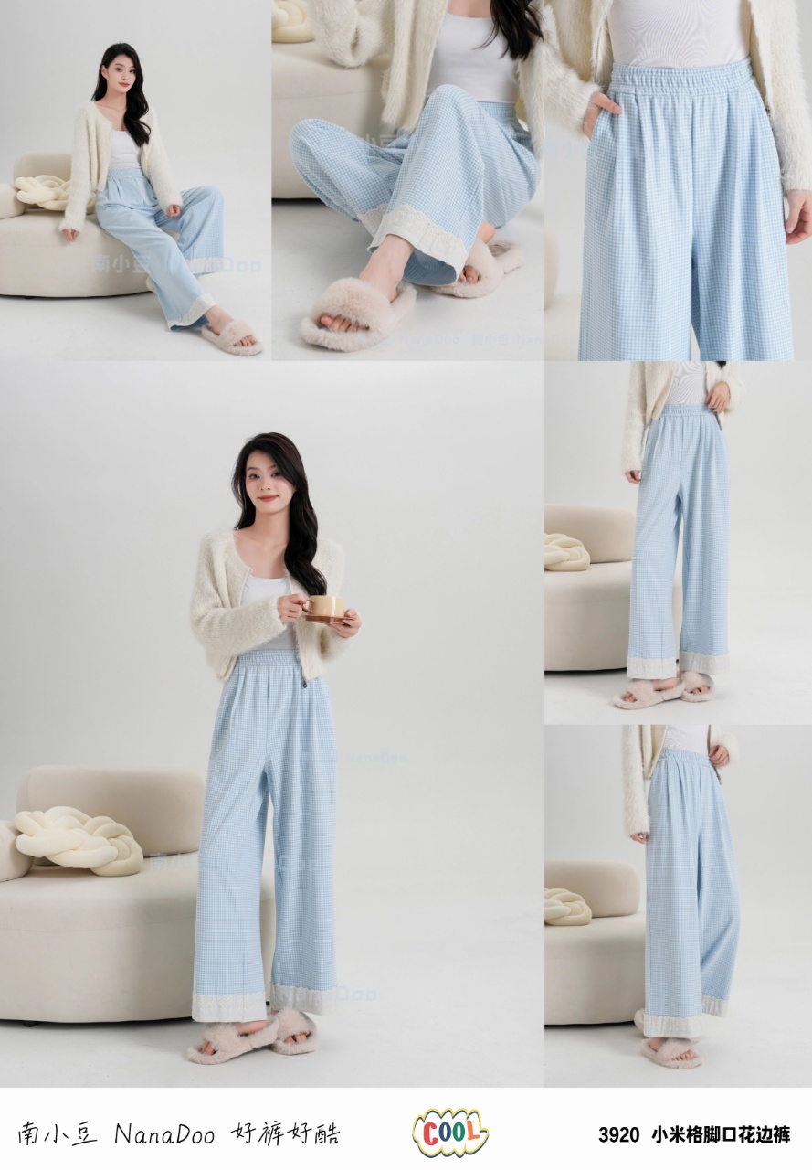 【YW】无忧购彩虹色系小格子热肤绒蕾丝花边休闲裤3920(截单后3-5天发货)