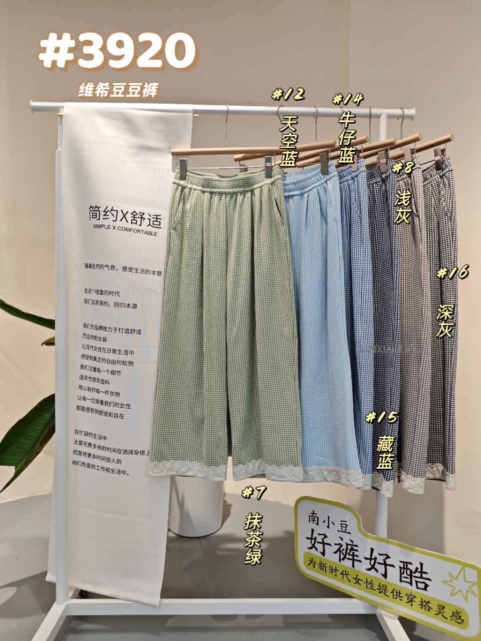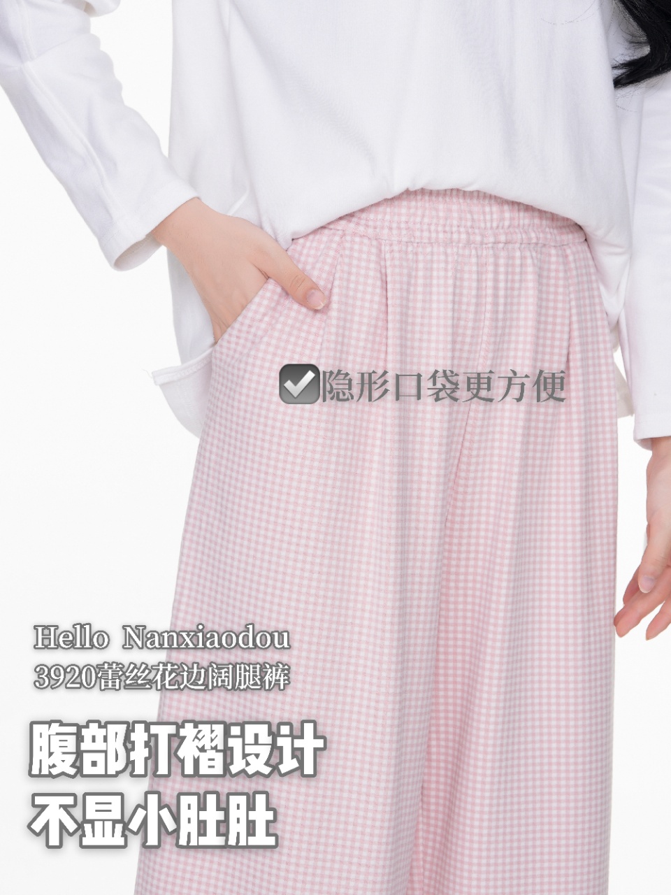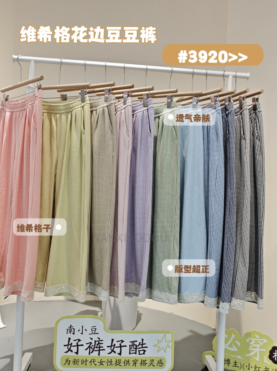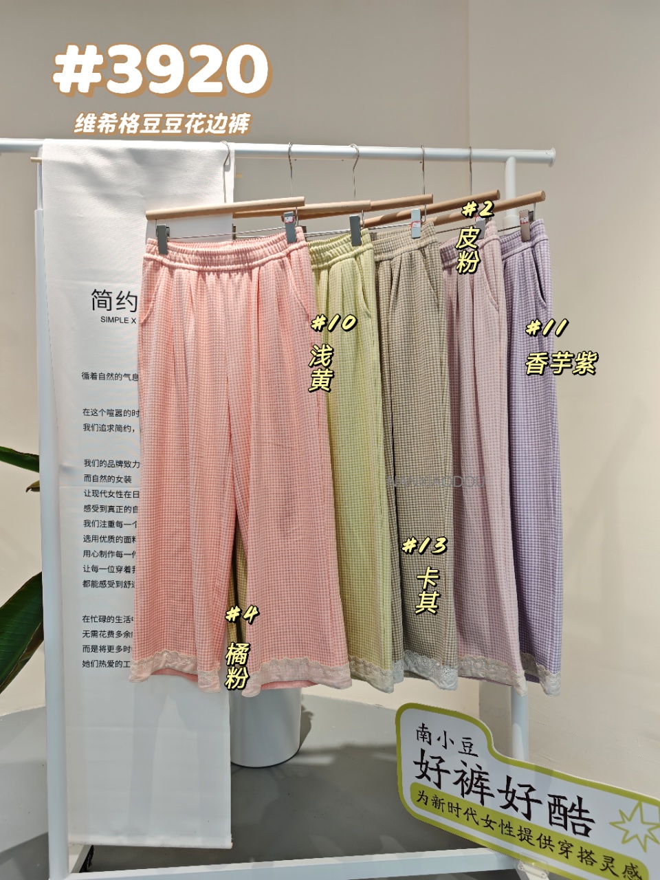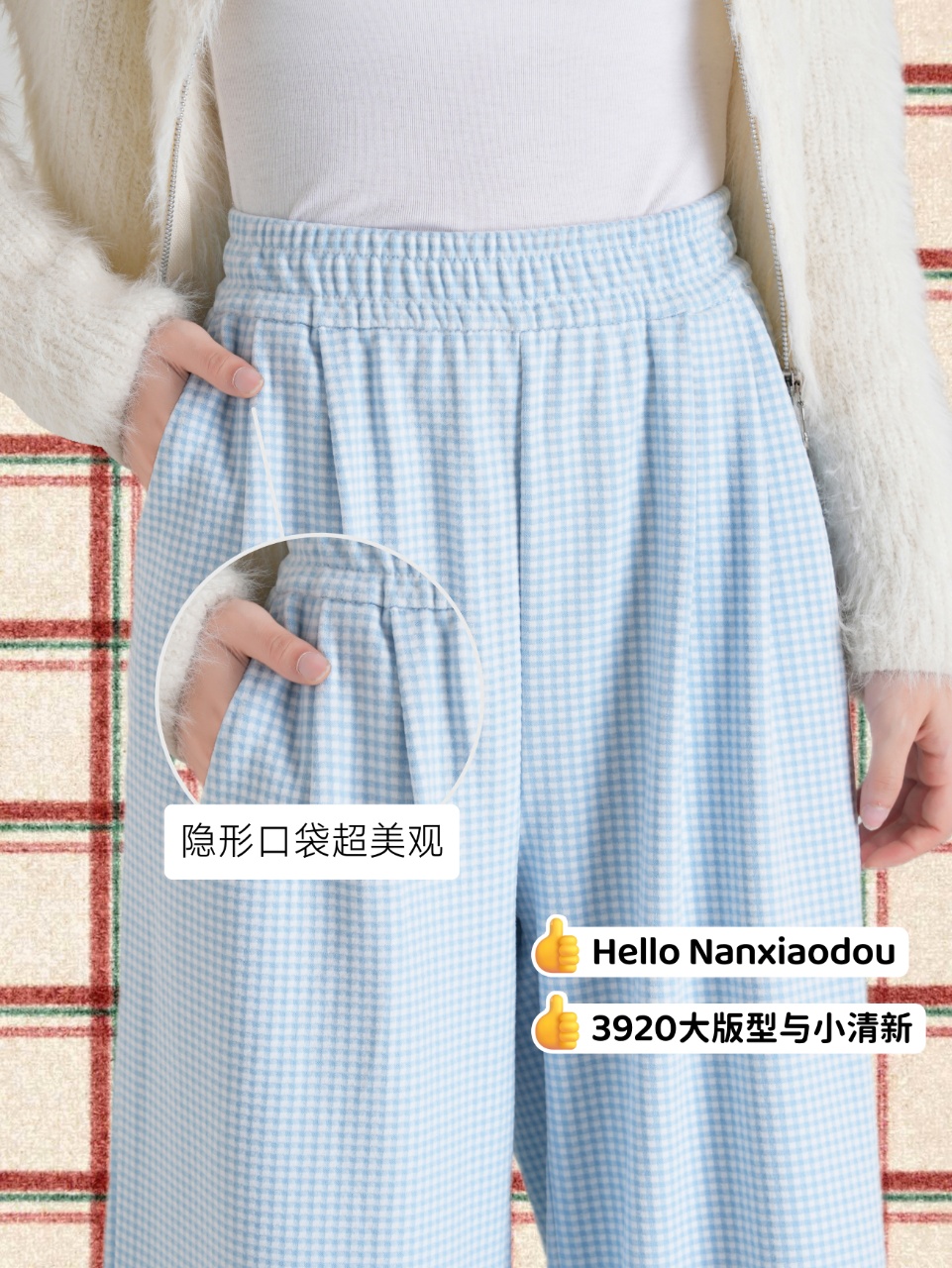 【YW】无忧购彩虹色系小格子热肤绒蕾丝花边休闲裤3920(截单后3-5天发货)