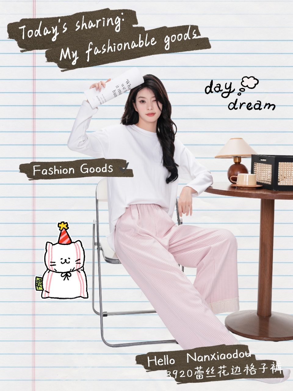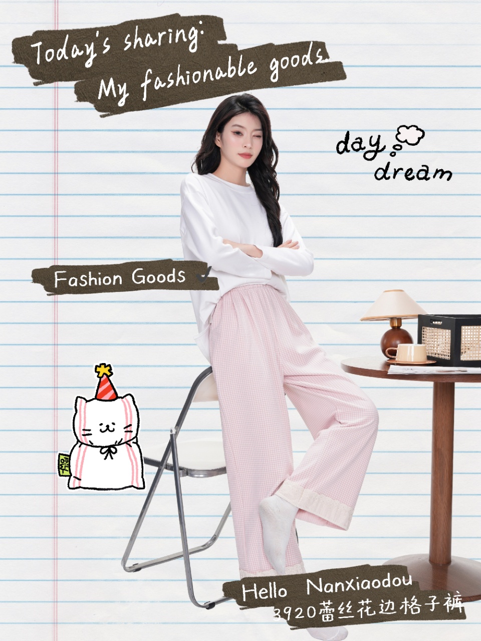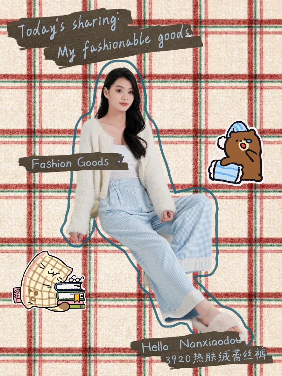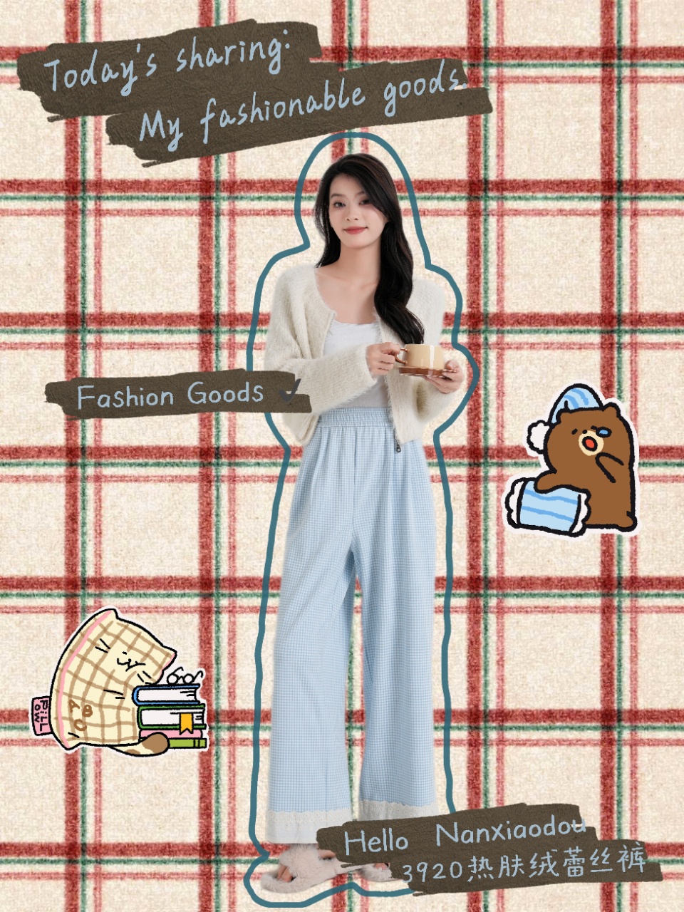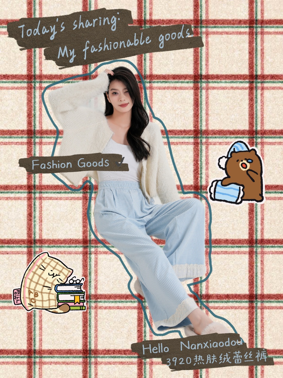 【YW】无忧购彩虹色系小格子热肤绒蕾丝花边休闲裤3920(截单后3-5天发货)