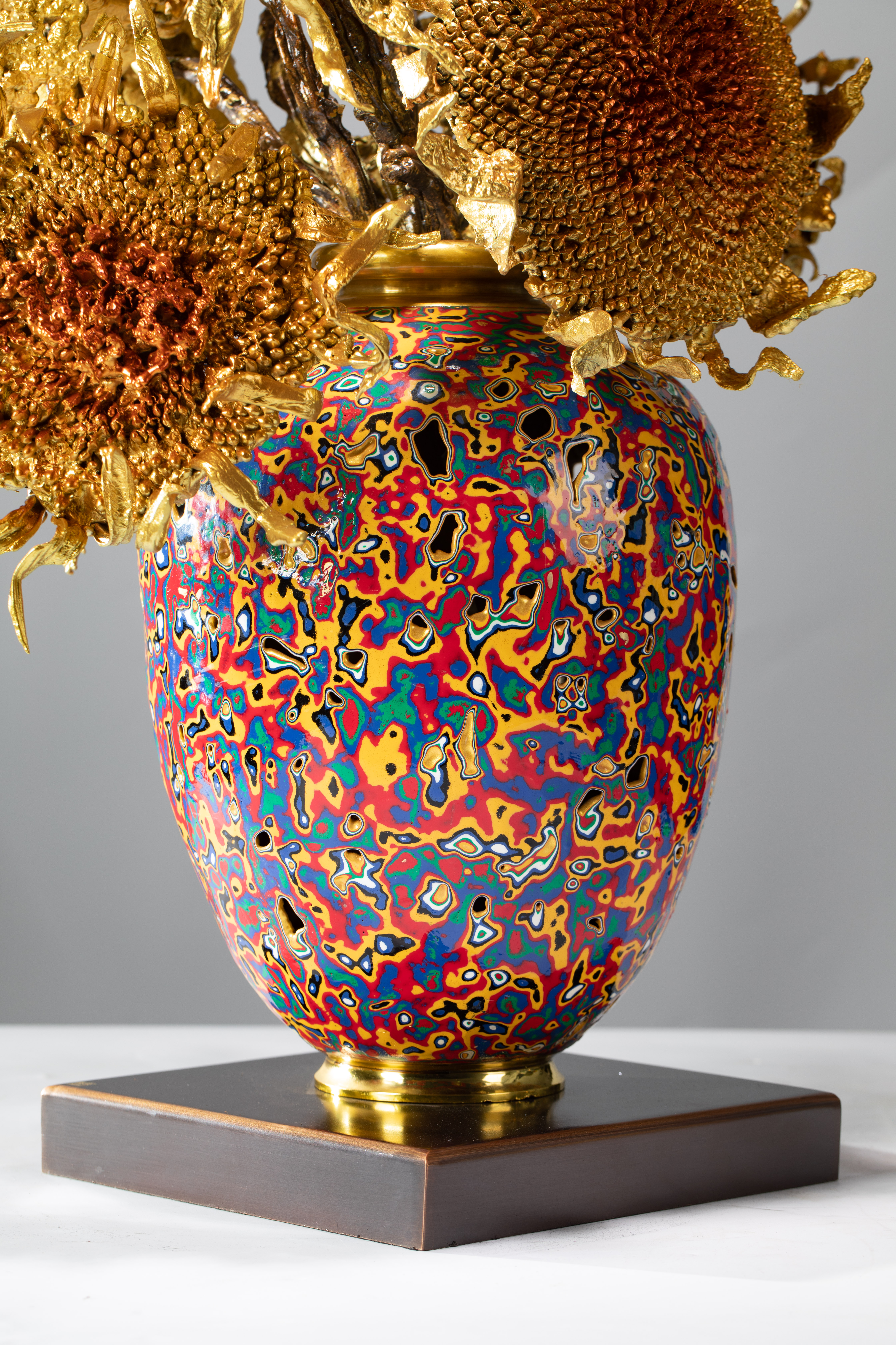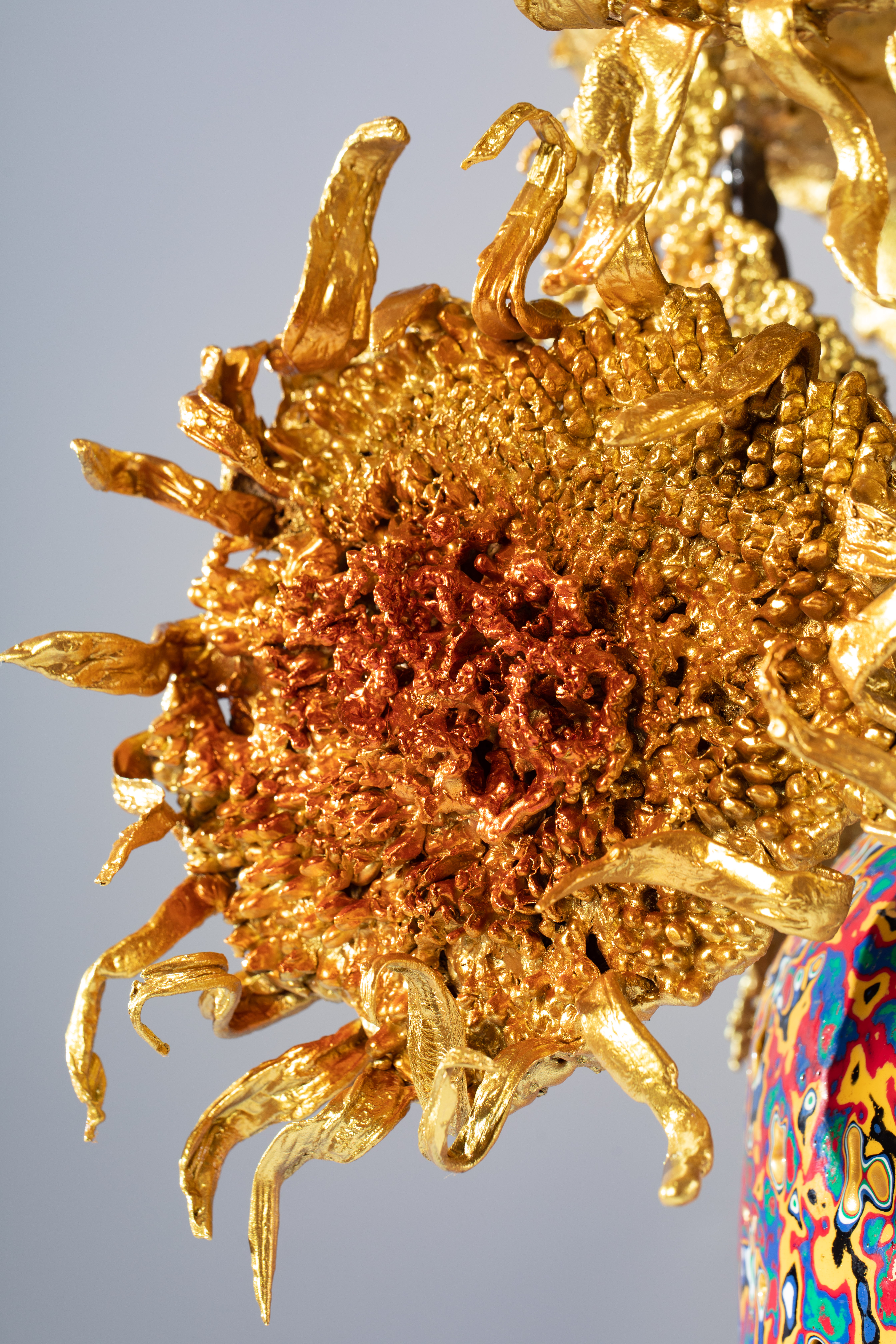朱炳仁铜 燃烧的向日葵家居玄关装饰电视柜桌面艺术摆件