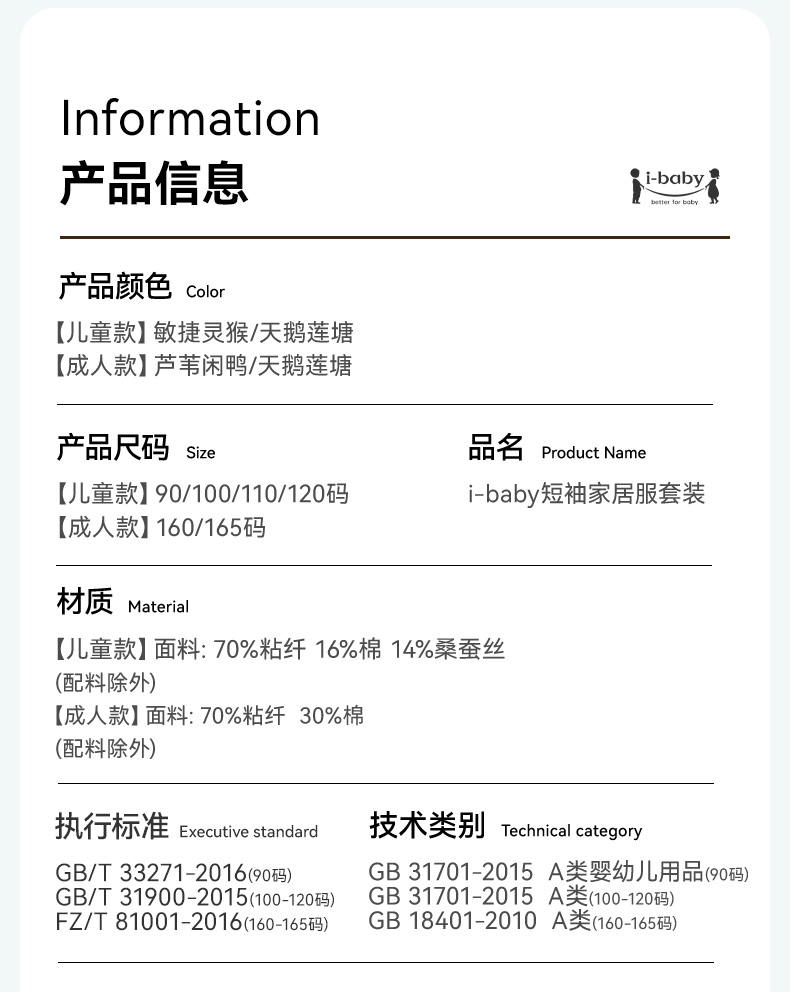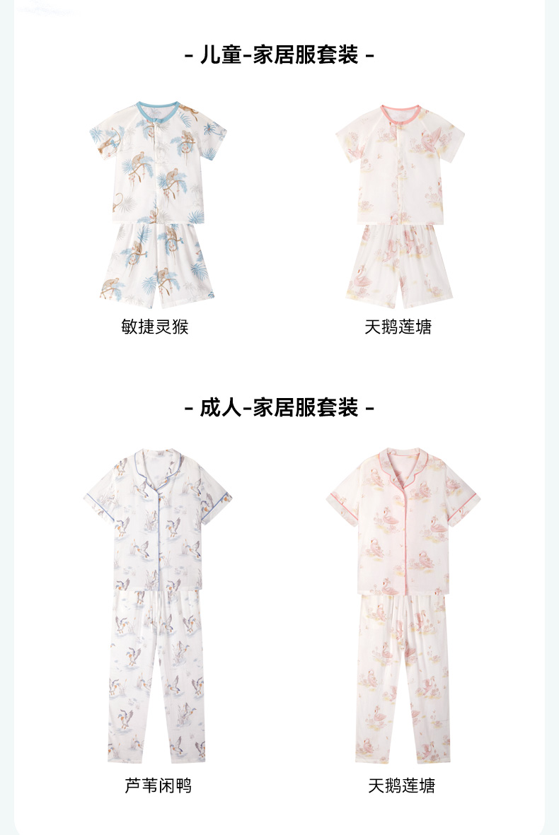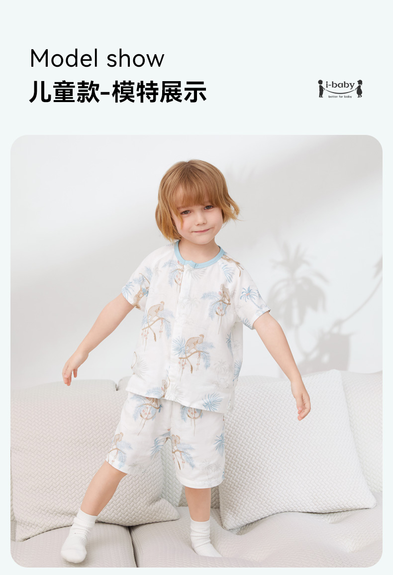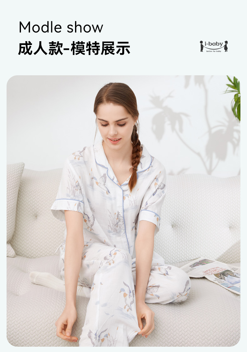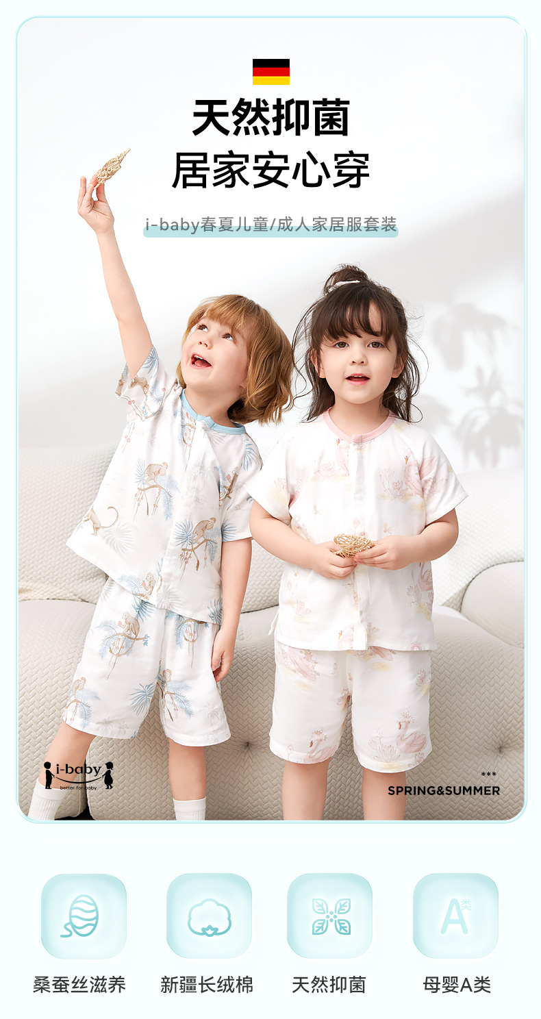 【QCXJ】i-baby 儿童/成人短袖家居服套装 薄款春夏装
