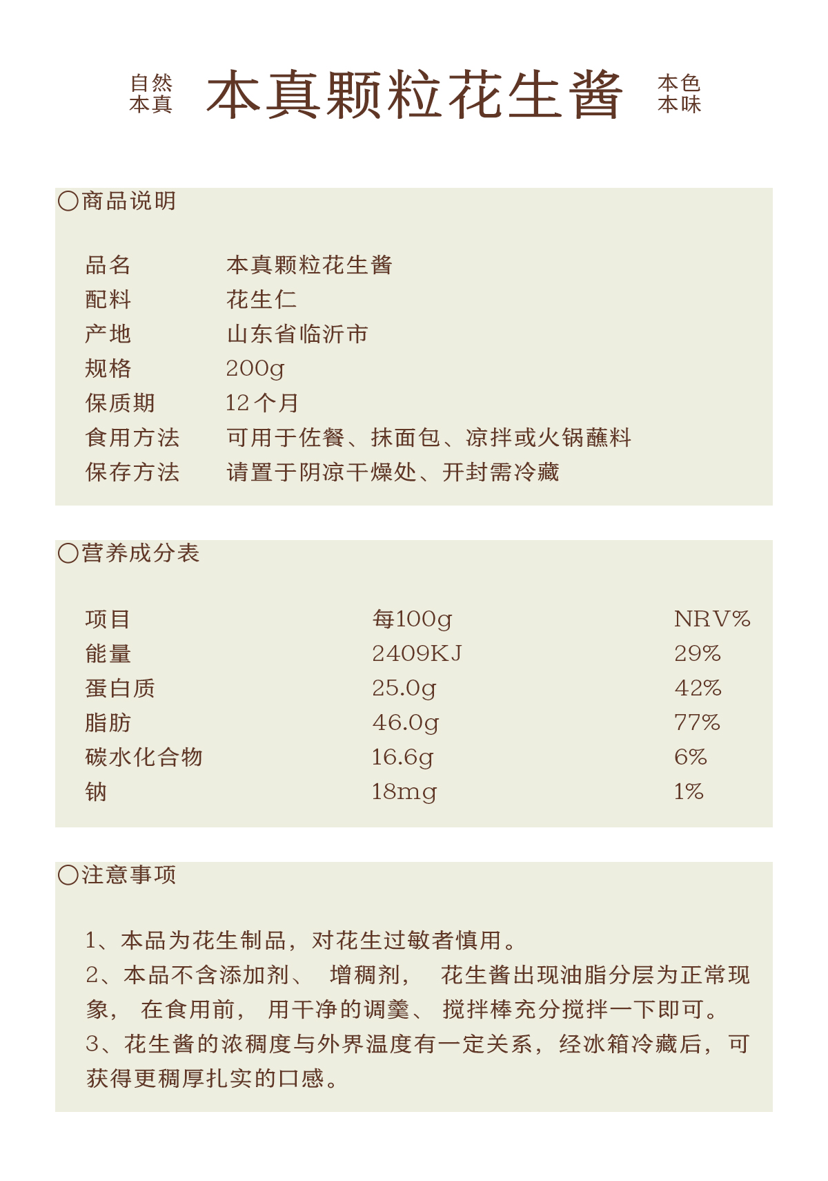 南食召 本真颗粒花生酱