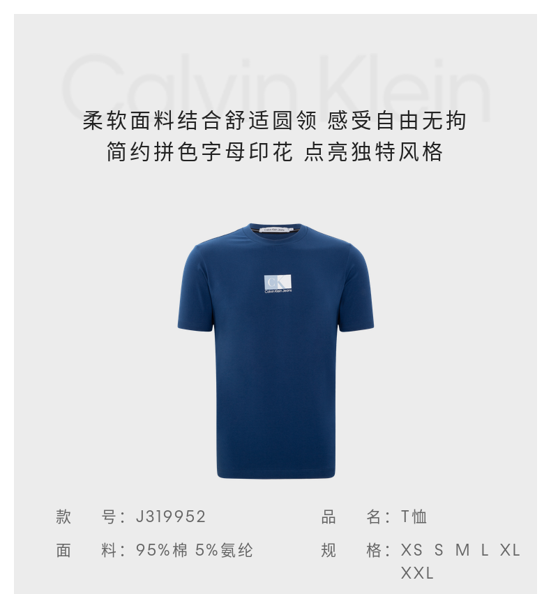 【海南专供价】CKJ男士时尚简约圆领拼色印花透气休闲短袖T恤J319952