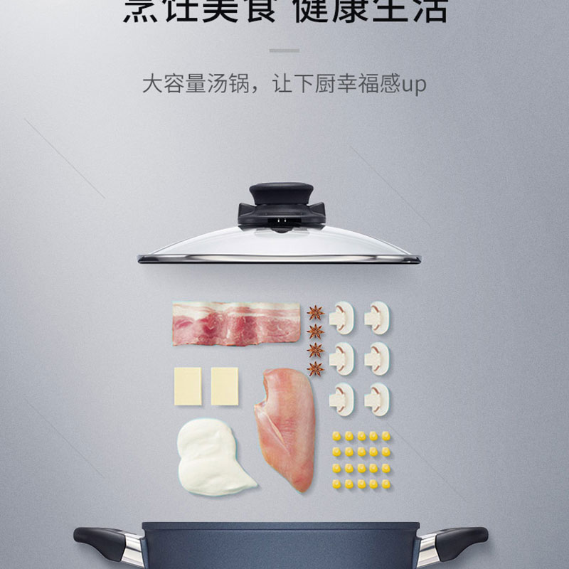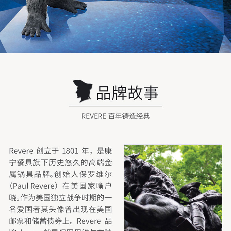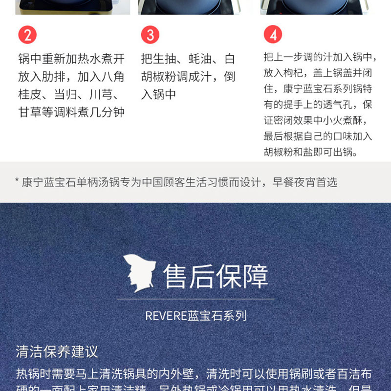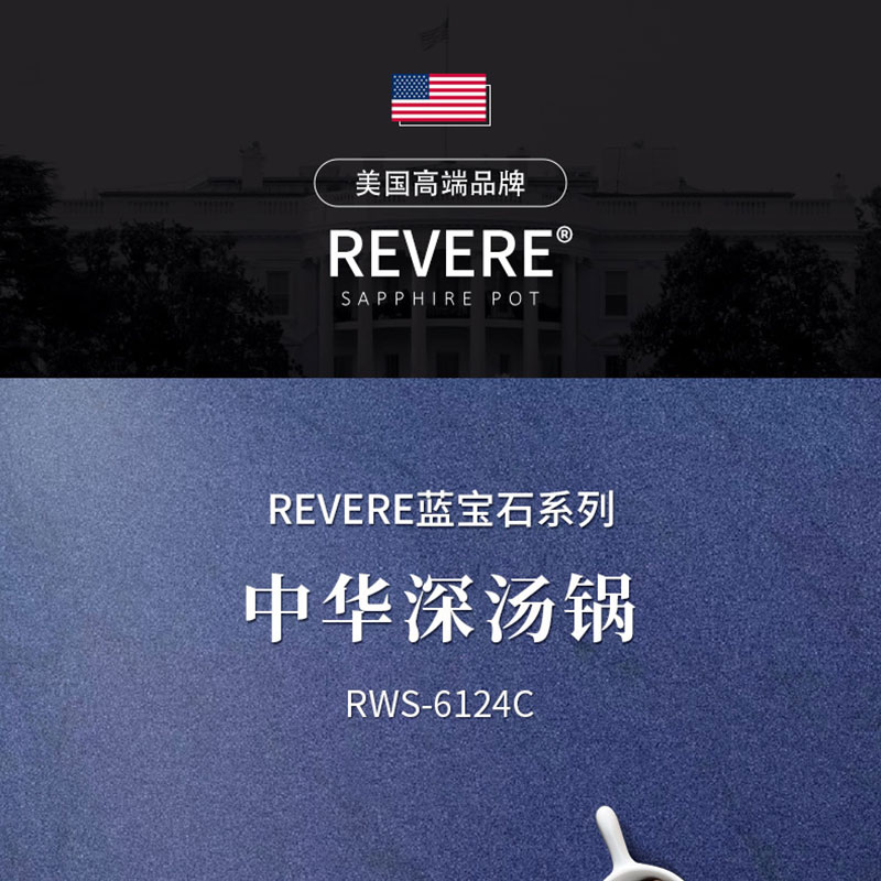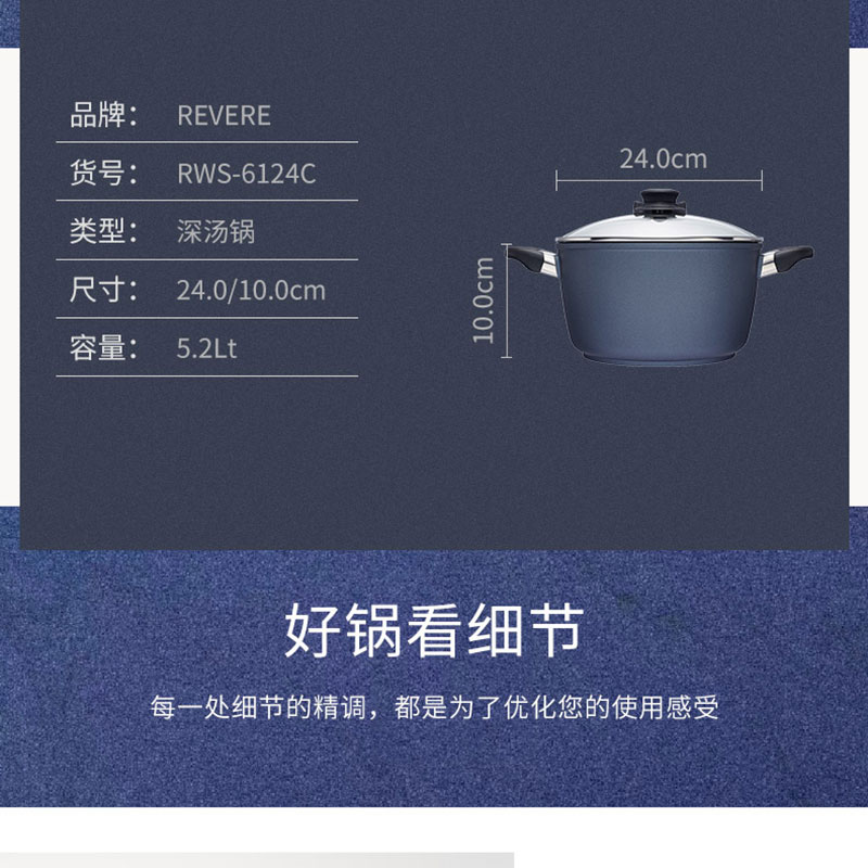【美国康宁进口清仓特价】Revere蓝宝石系列深汤锅24cm家用煮汤锅蒸锅煲汤双耳锅RWS-6124C