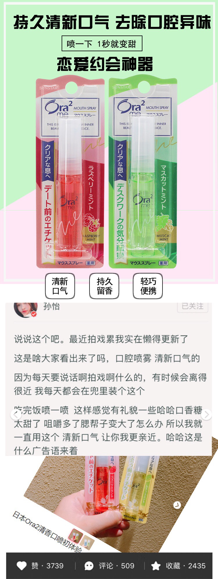 日本ora2皓乐齿口气清新剂清香果味口喷-会员6折