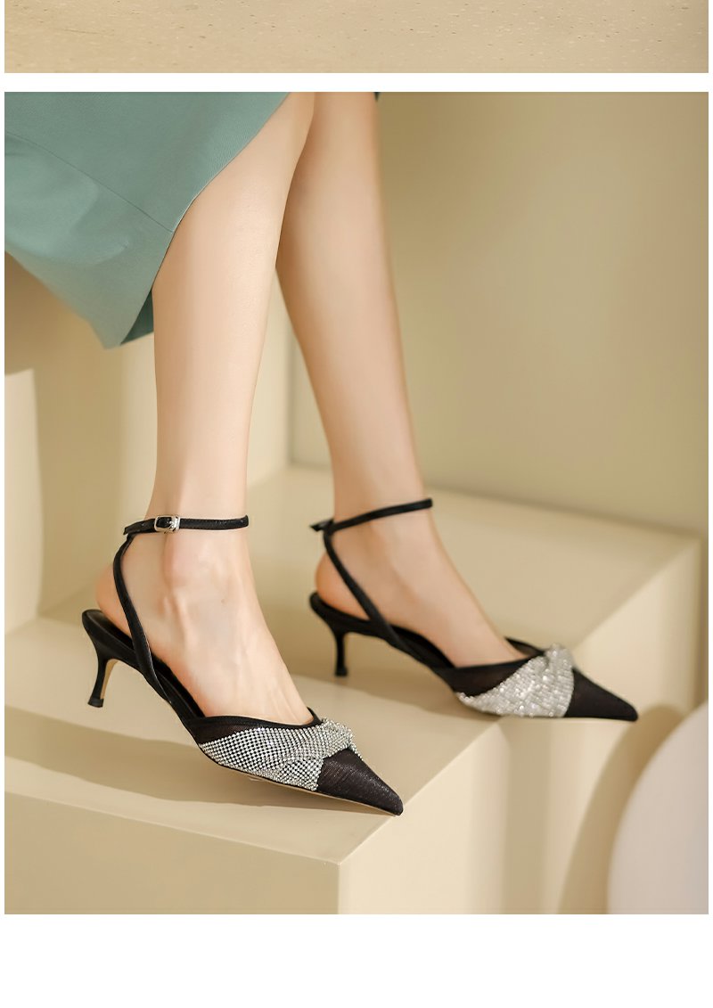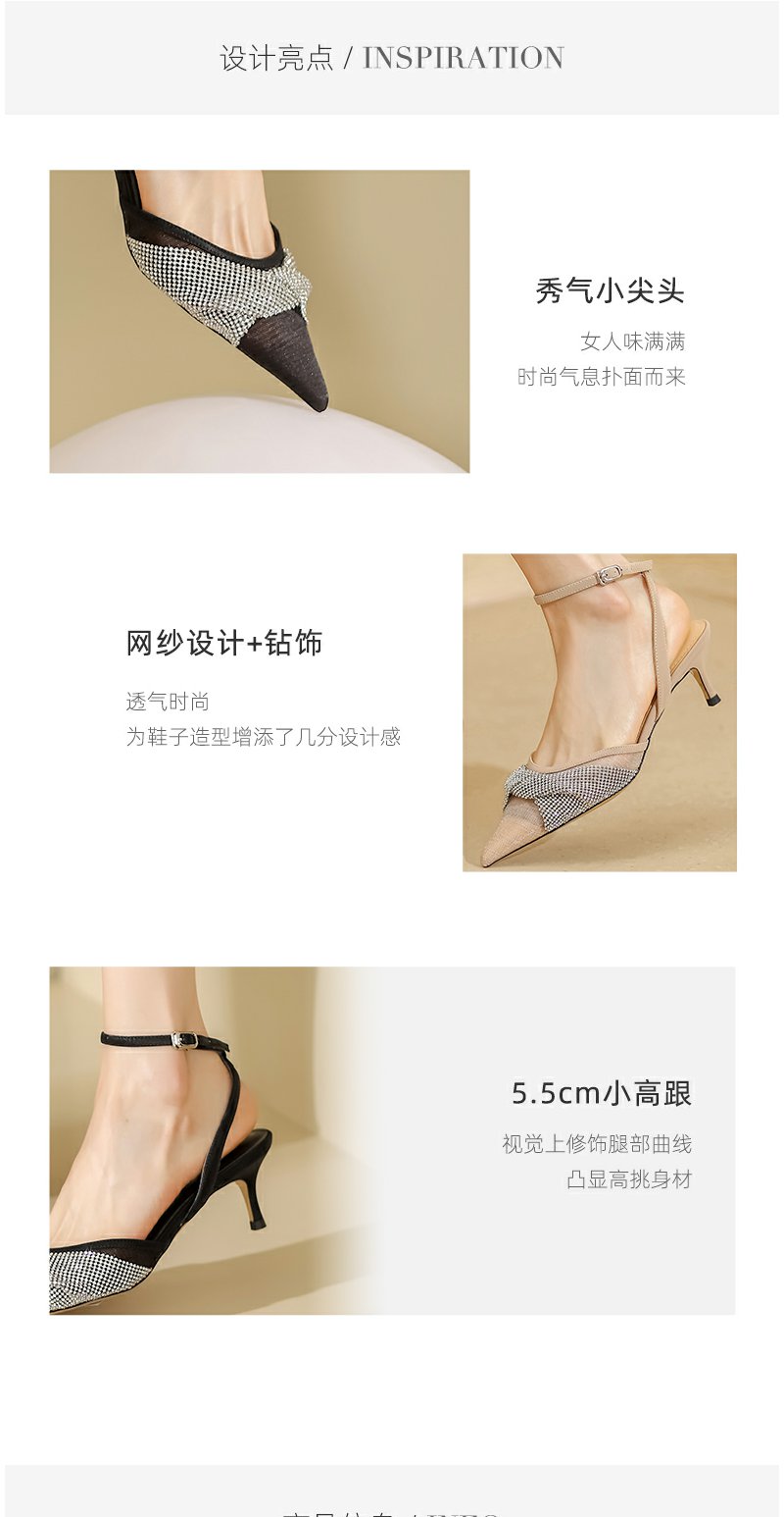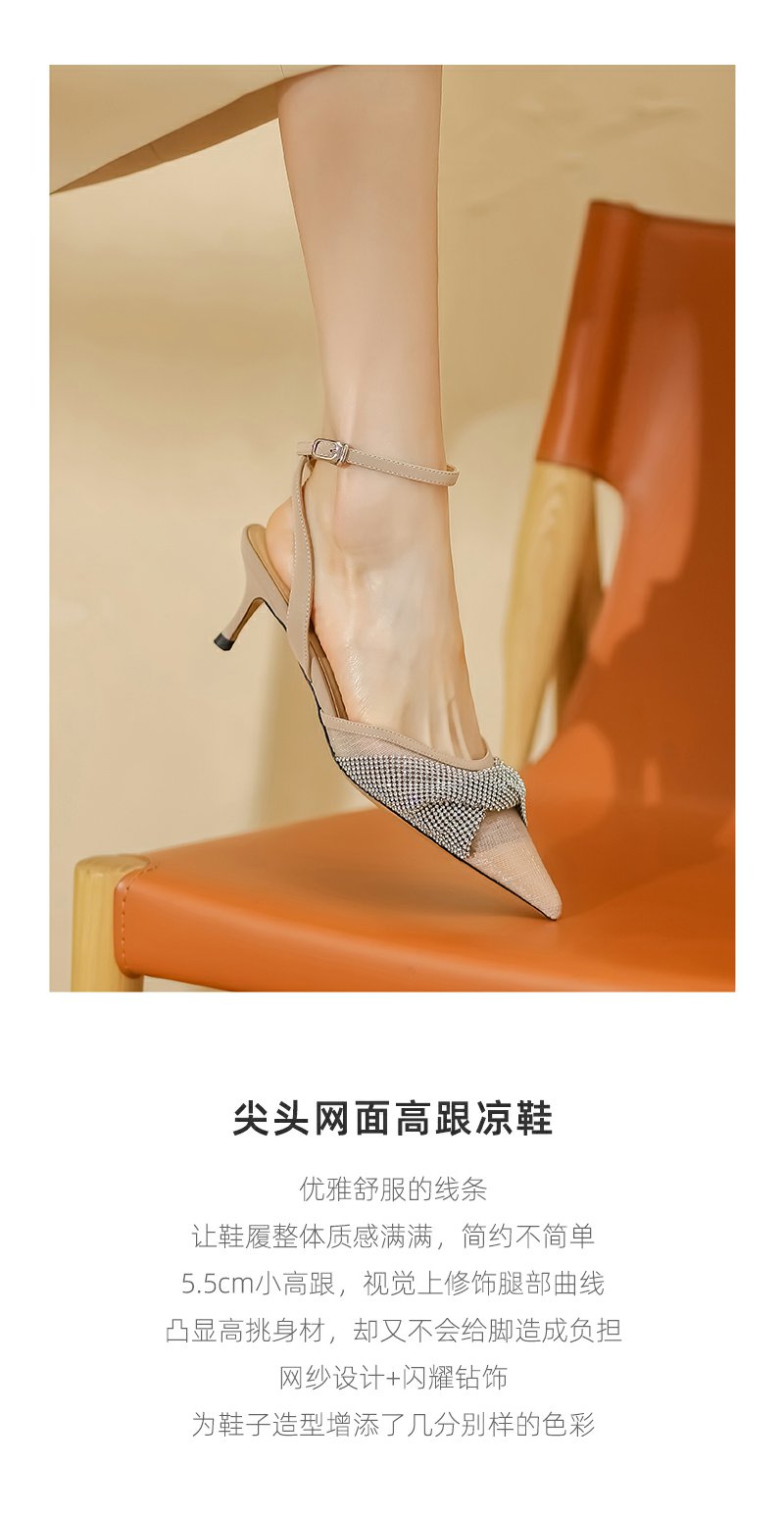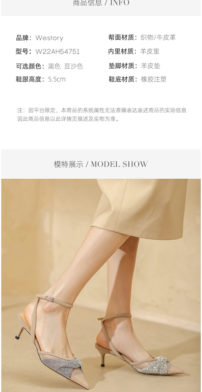 westory2022年夏尖头细高跟后空包头新款单鞋女法式凉鞋W22AH54751