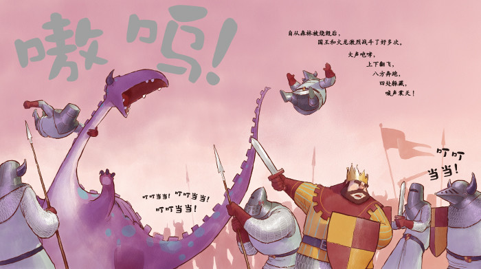 《国王、火龙与男孩》从前,有一位国王,他拥有高大的城堡、广袤的土地,还有许多勇敢的骑士。后来,一头喷火巨龙摧毁了王国里的森林。为了保护自己的领土,人与龙之间爆发了旷日持久的战争。直到有一天,一个听不见声音的男孩跑到了他们中间……
