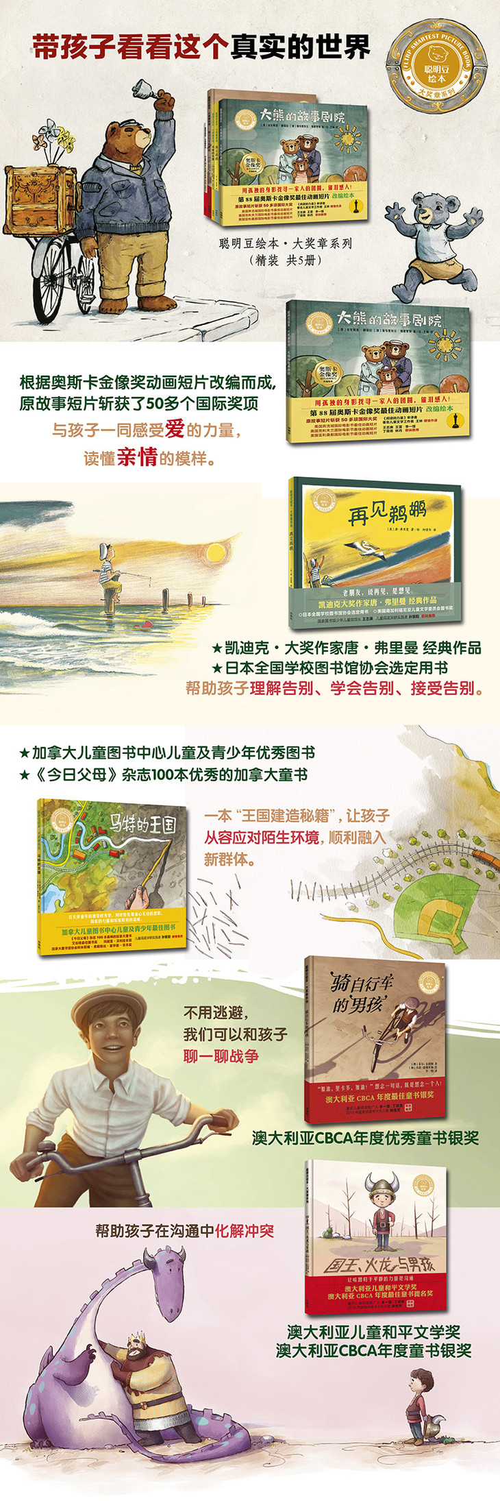 爱、友谊、沟通、想象、童心、战争······这些话题,关乎孩子的心灵成长,如何向他们讲述,不妨翻开这些绘本,在故事中寻找答案。