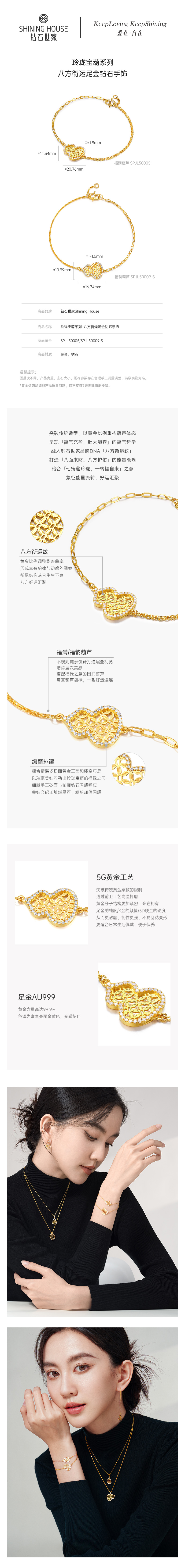 【八方衔运纹】【 玲珑宝葫 】钻石世家 玲珑宝葫系列 足金葫芦镶钻手链 【黄金产品不支持无理由退换货】预计3-5天发货