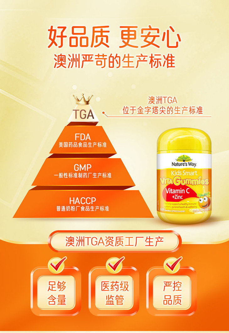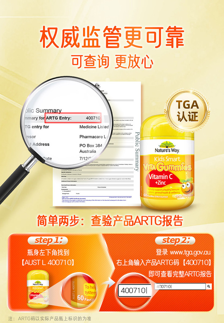 【跨境进口】Nature’s Way澳洲佳思敏儿童维生素C软糖宝宝VC锌60粒(26年2月)|报关后不支持退换货 介意慎拍