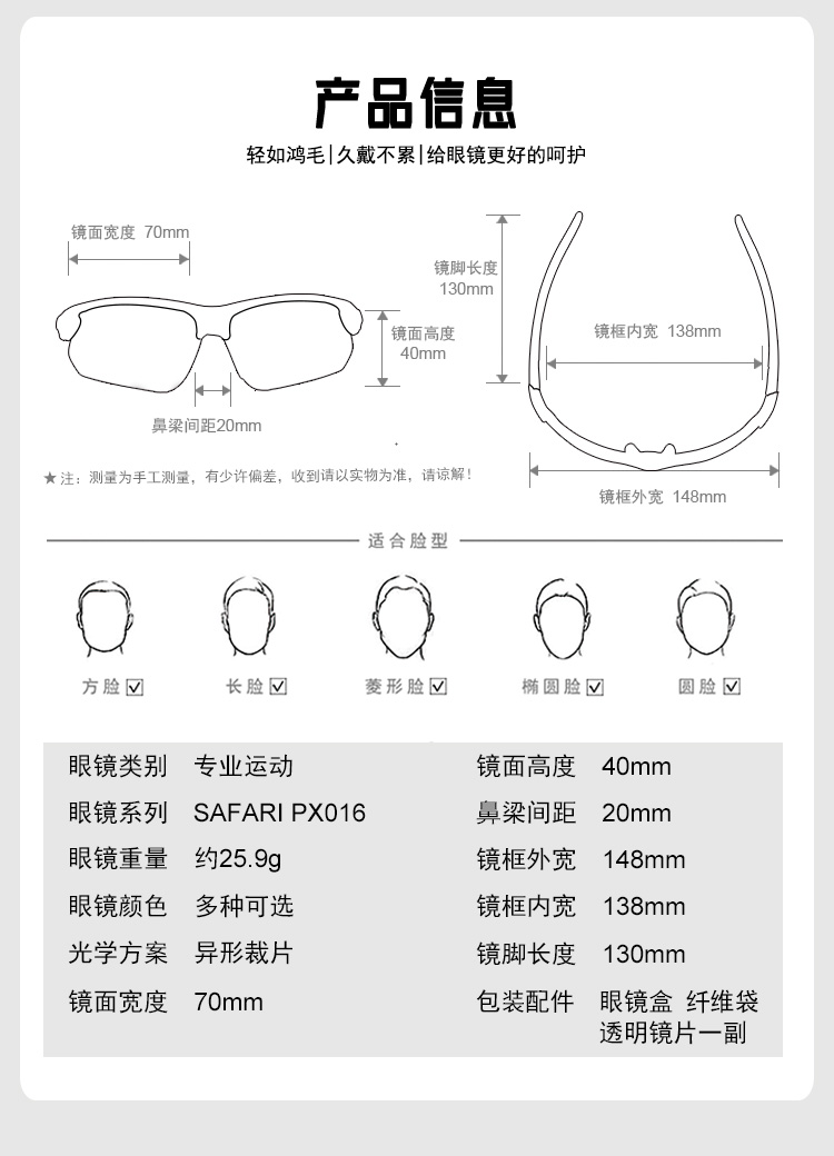 POHINIX博铌斯马拉松越野跑步眼镜变色眼镜户外骑行眼镜运动眼镜 PX016
