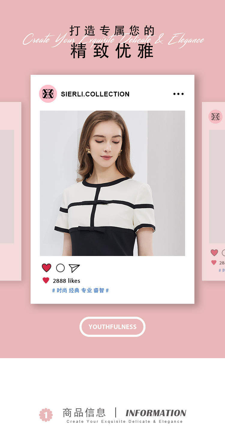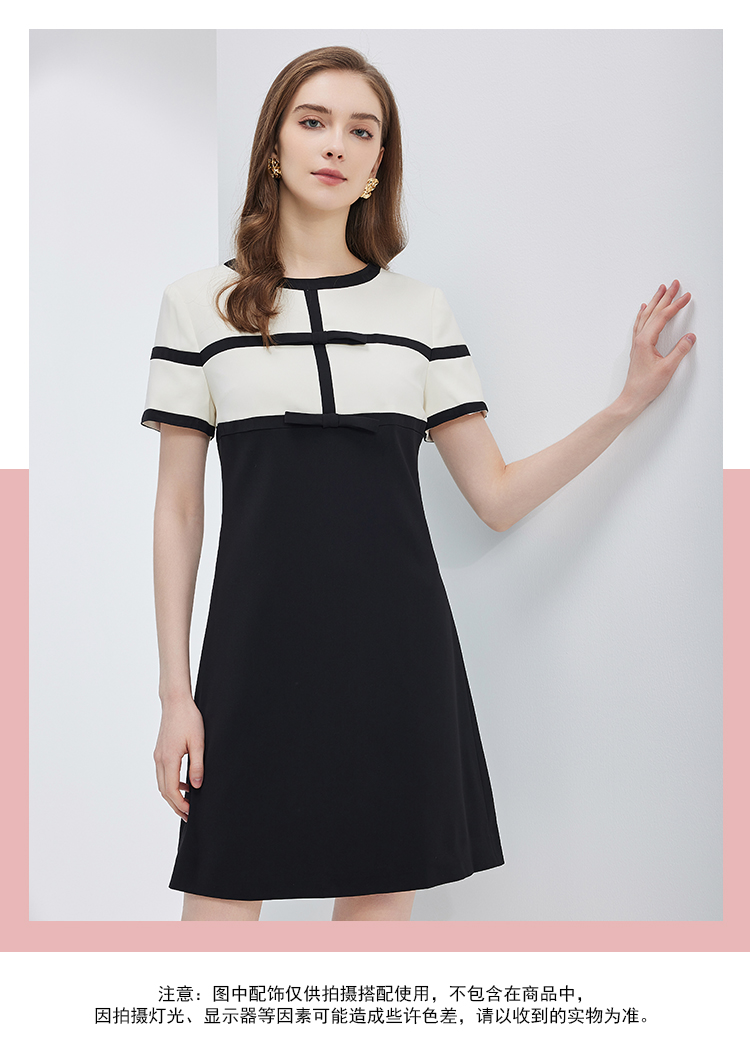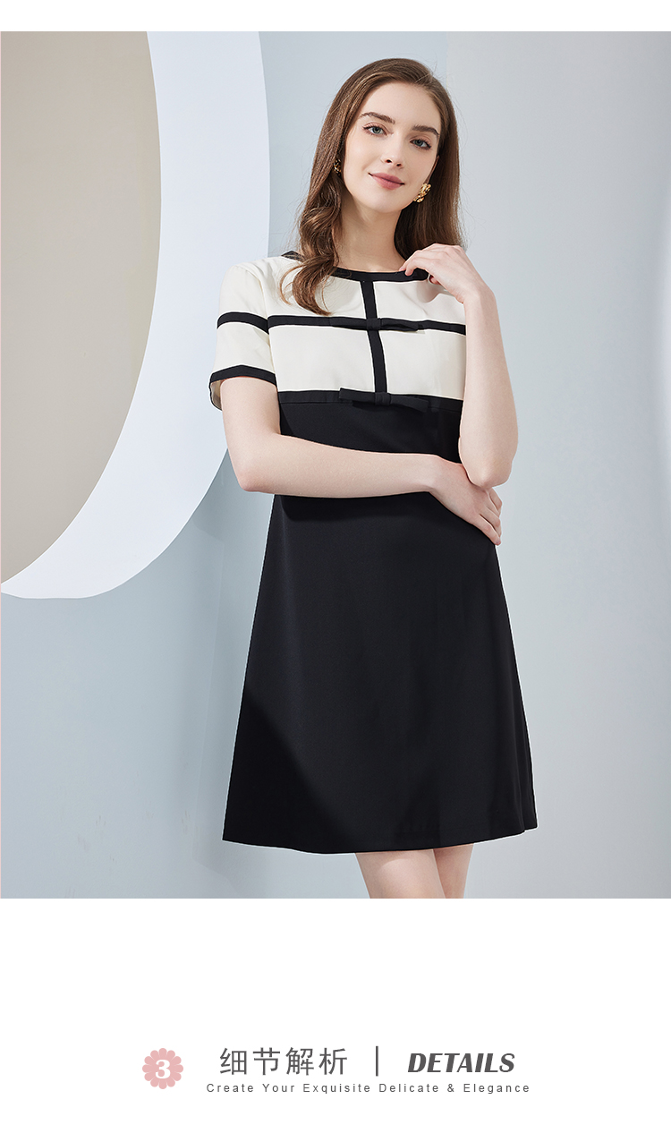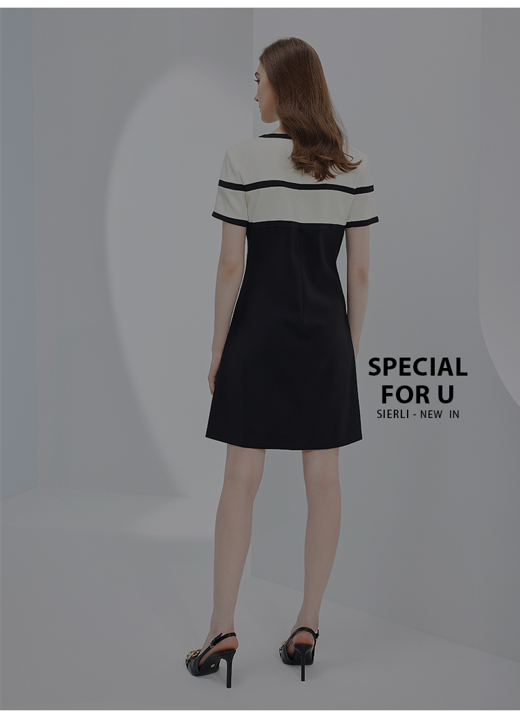 QF88C斯尔丽瑟俪2023夏季新款撞色滚边时尚简约显瘦大方减龄款连衣裙