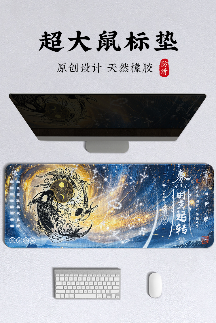 创意设计长款【时来yun转】鼠标垫天然橡胶日常办公居家使用