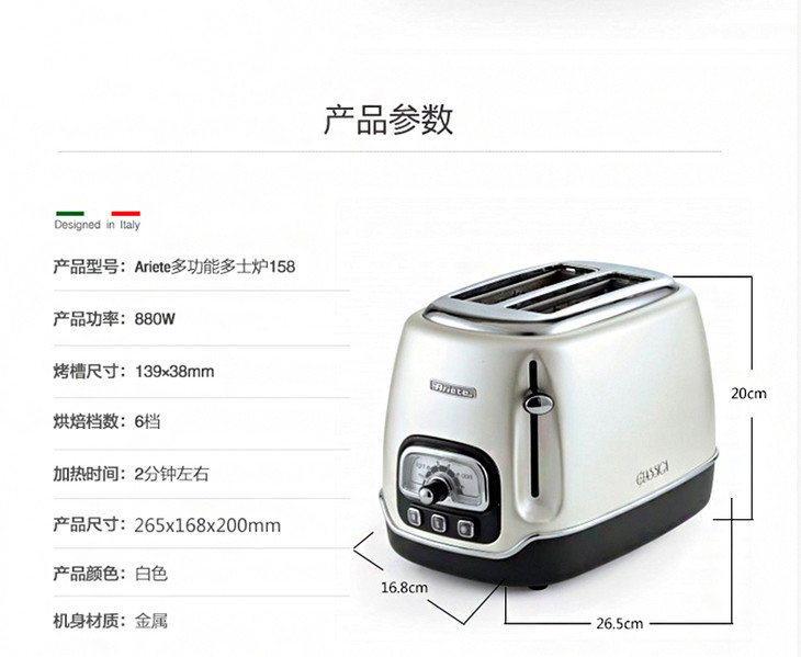 【阿里亚特】Ariete阿里亚特意式尊贵款多士炉158家用早餐