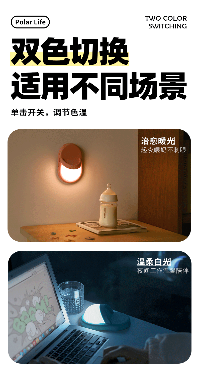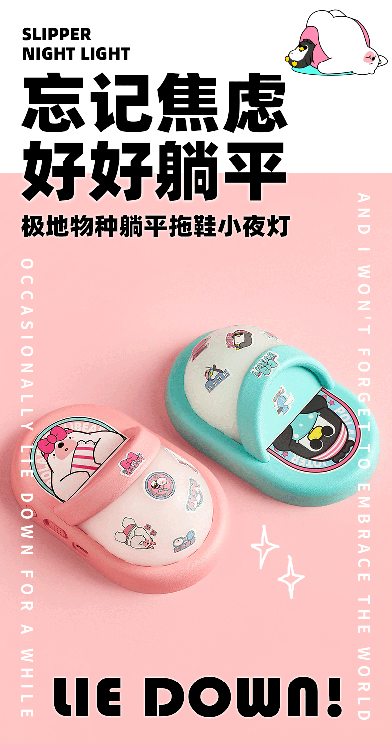 极地物种躺平拖鞋卧室usb小夜灯床头灯护眼充电款