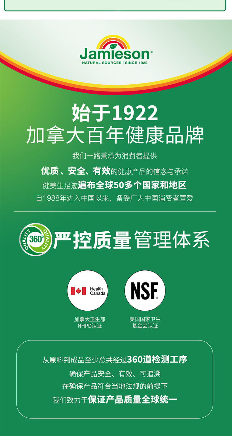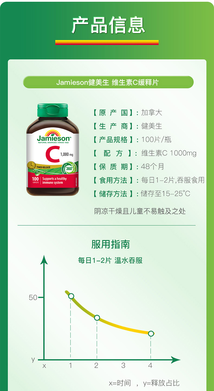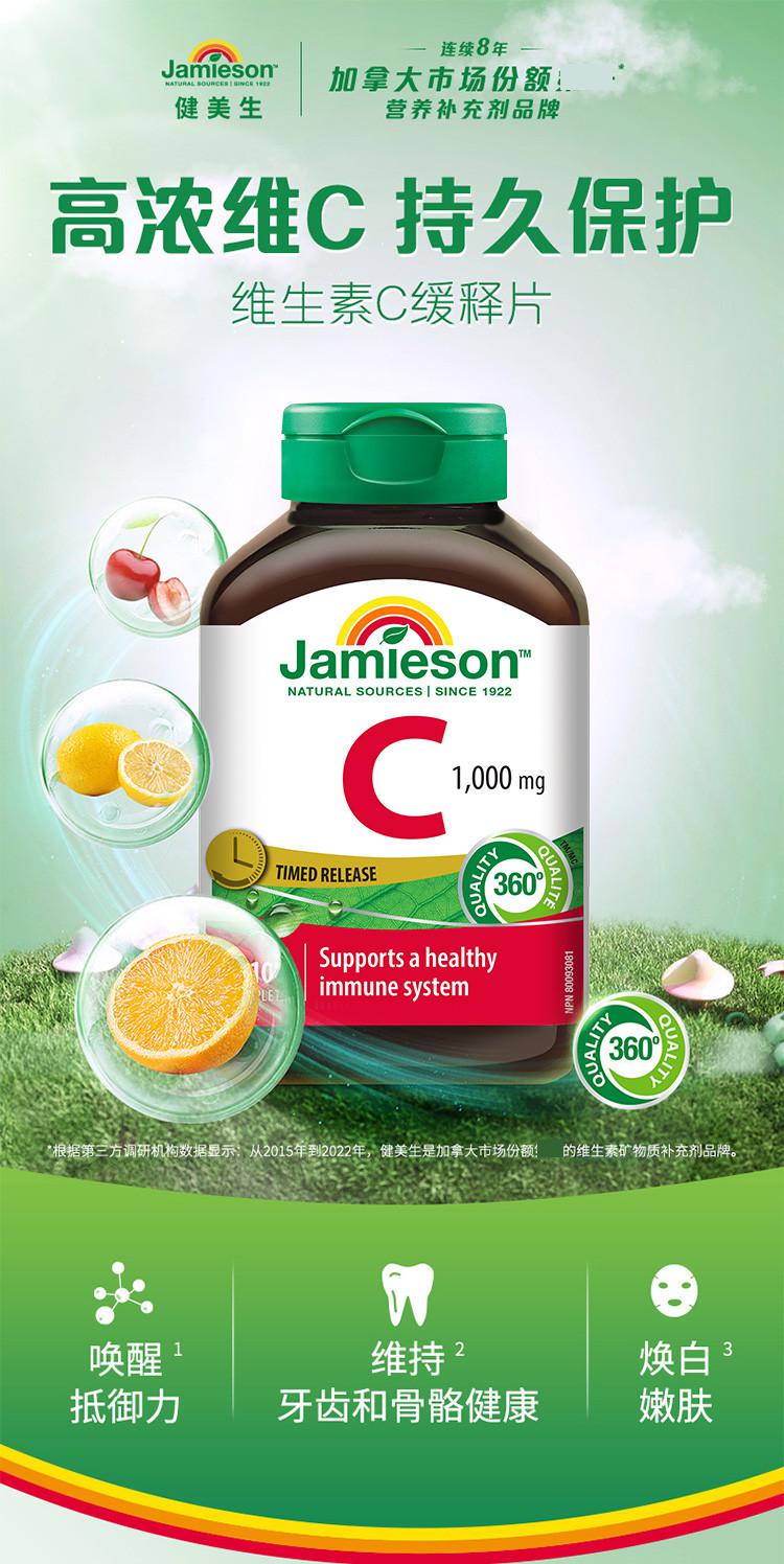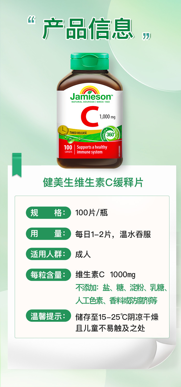 【保税仓发货】Jamieson维生素C1000mg缓释片100粒健美生