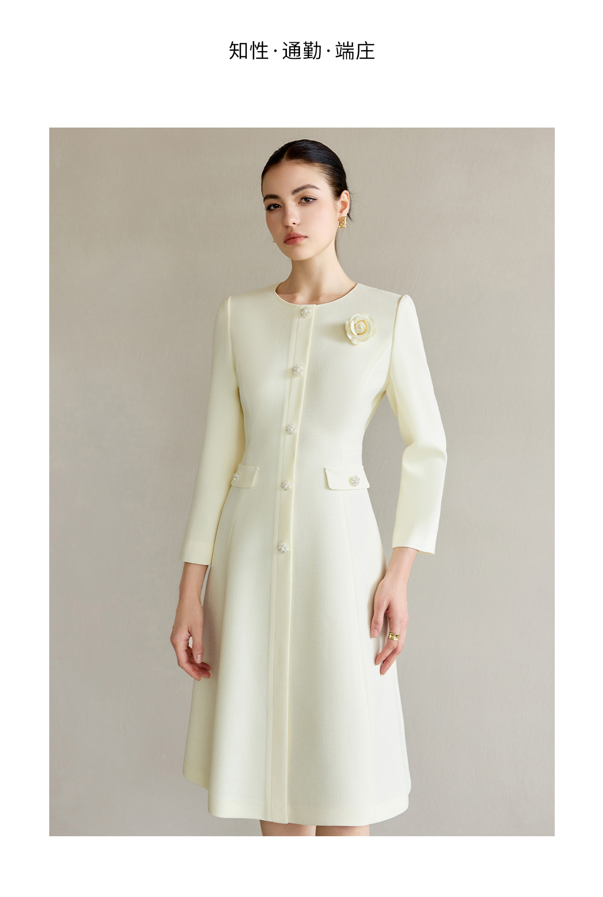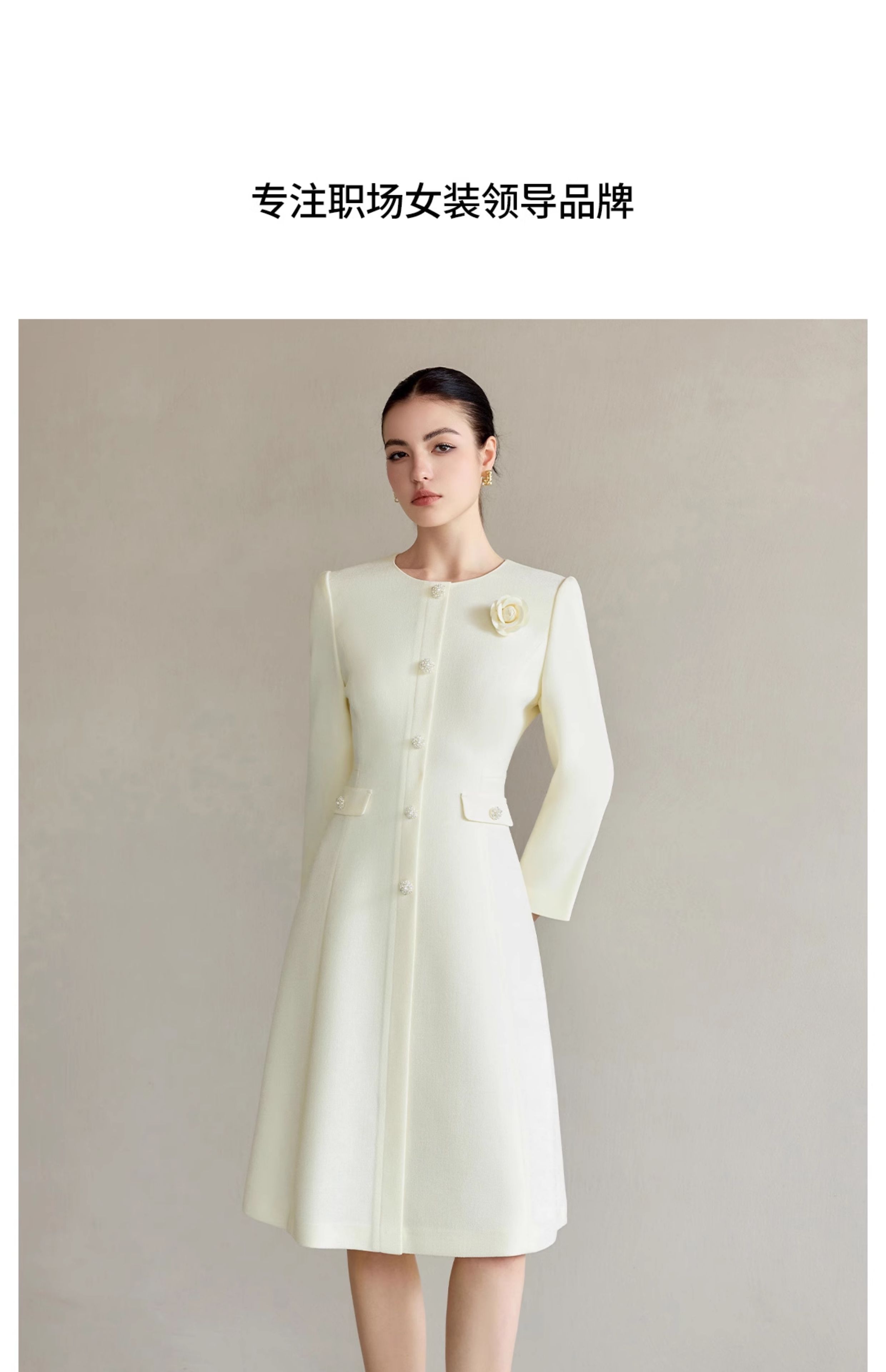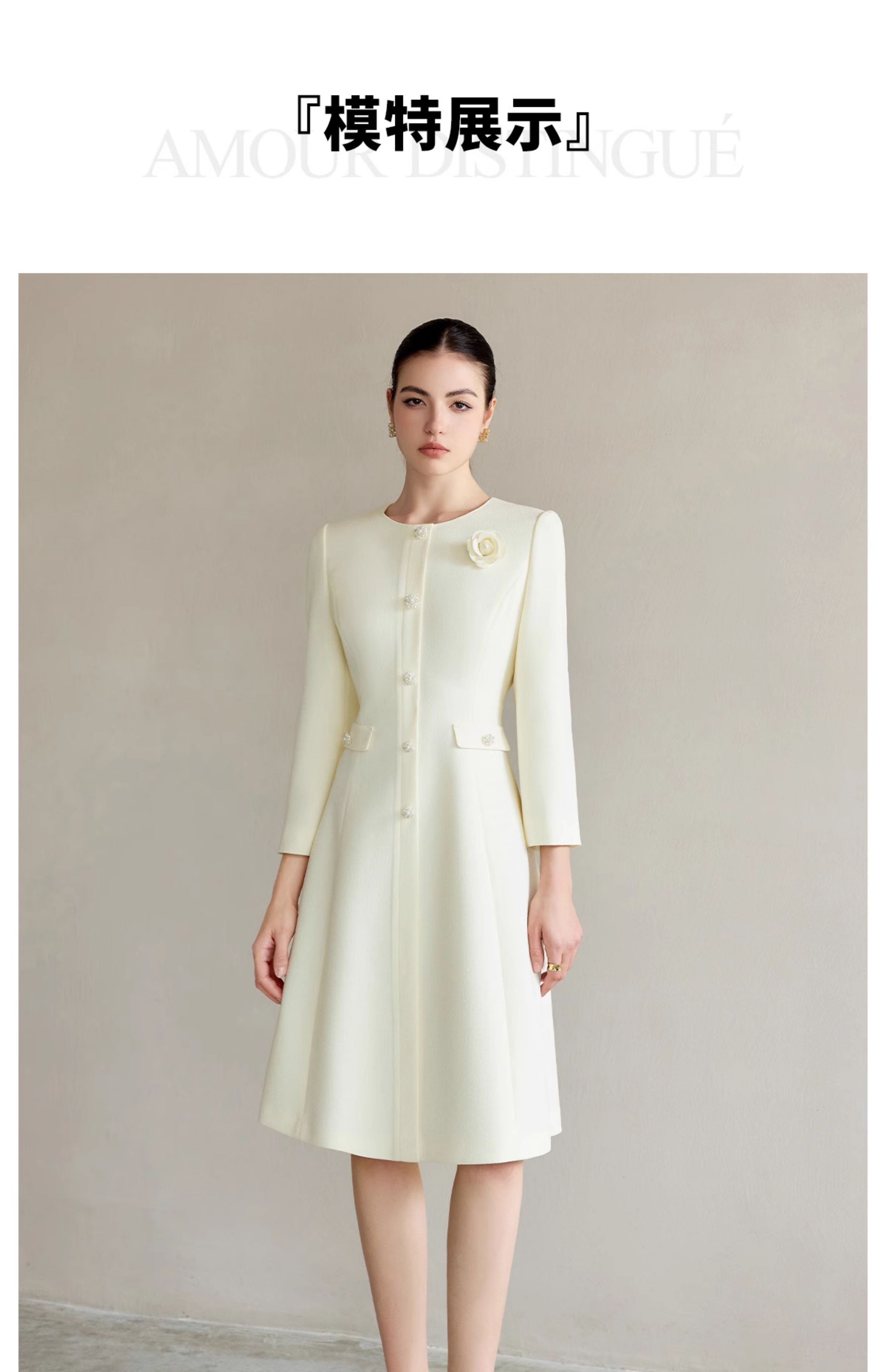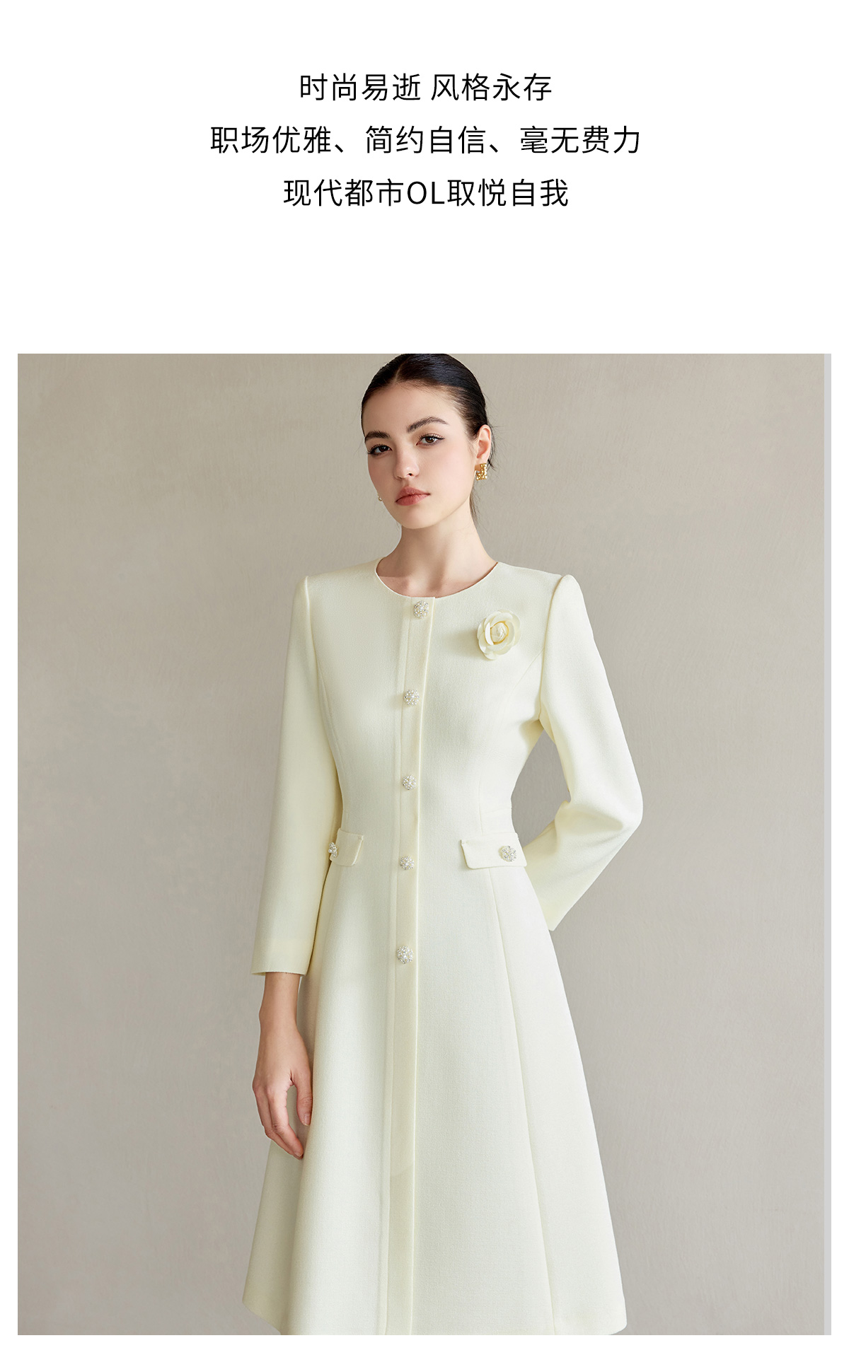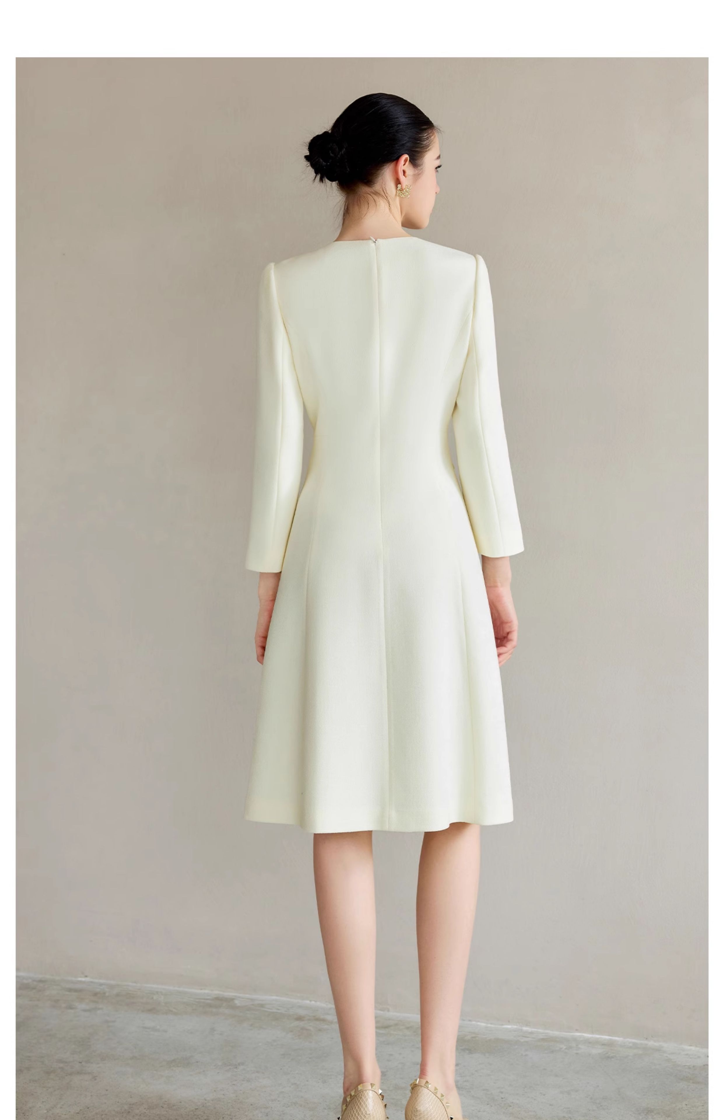 IWY/气质名媛米色连衣裙女新款圆领法式西装裙主持上镜正装Q1293