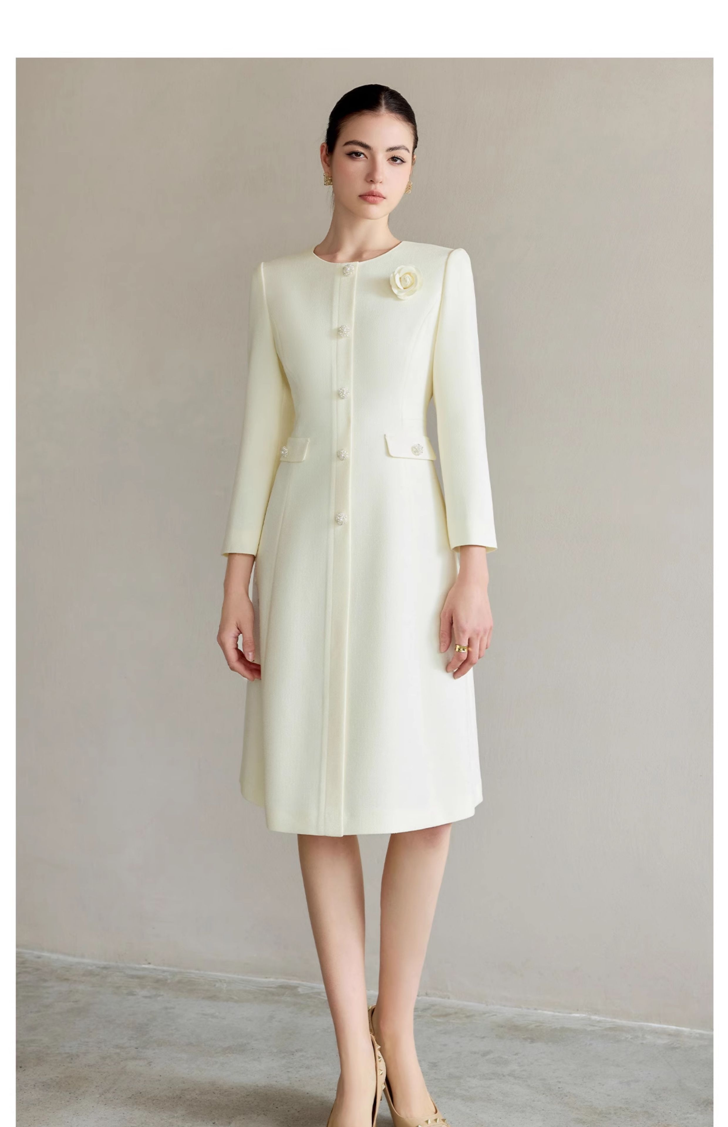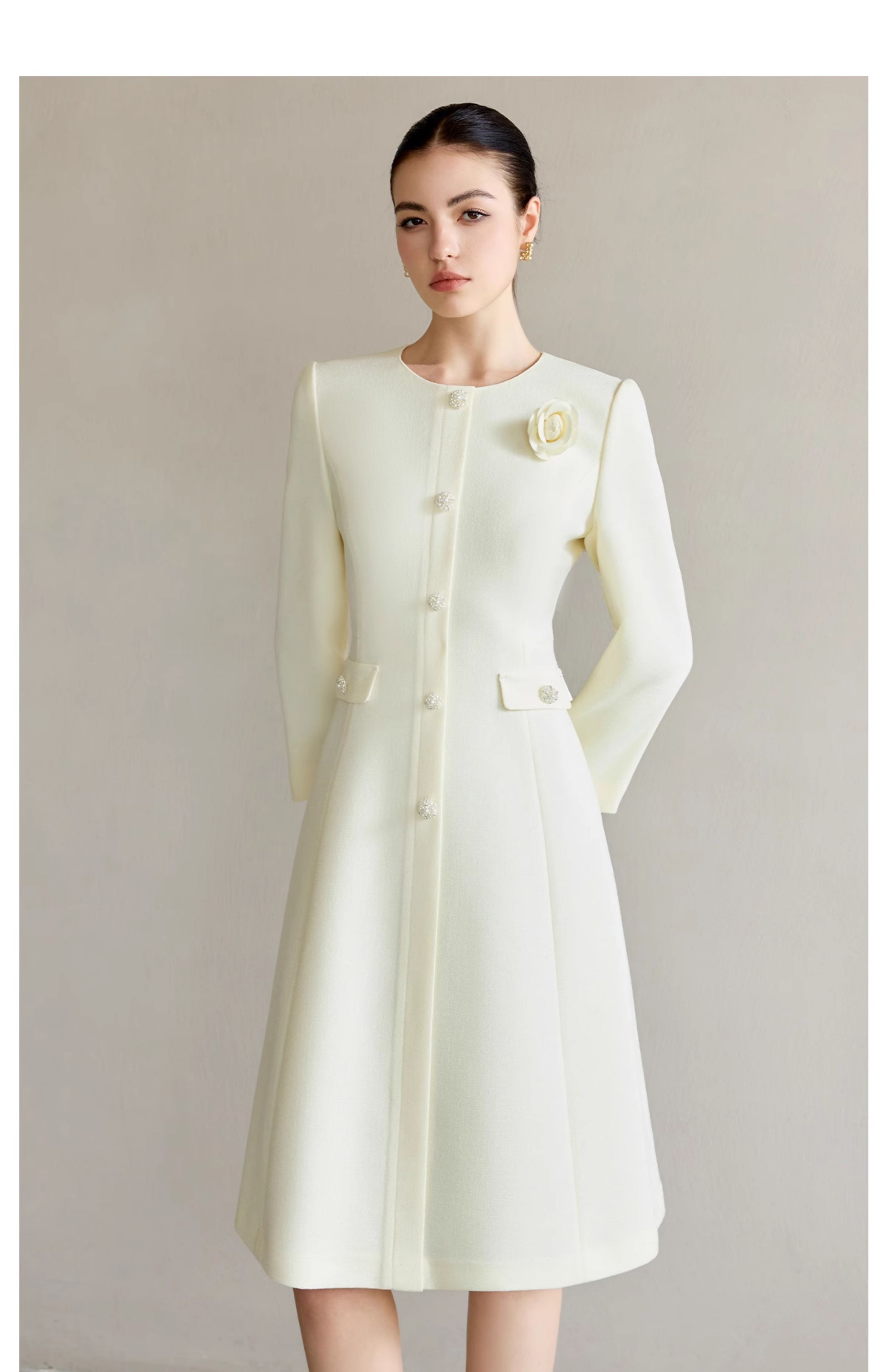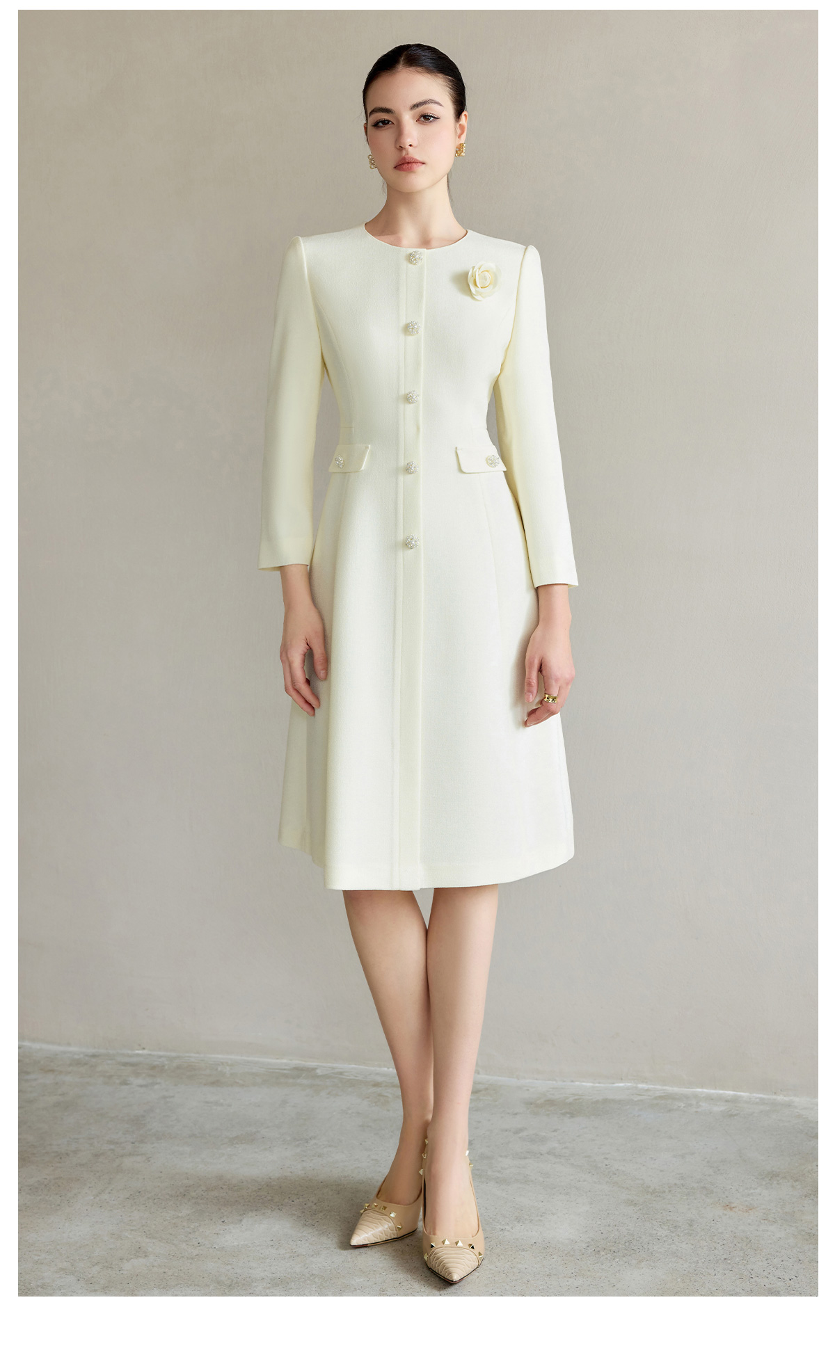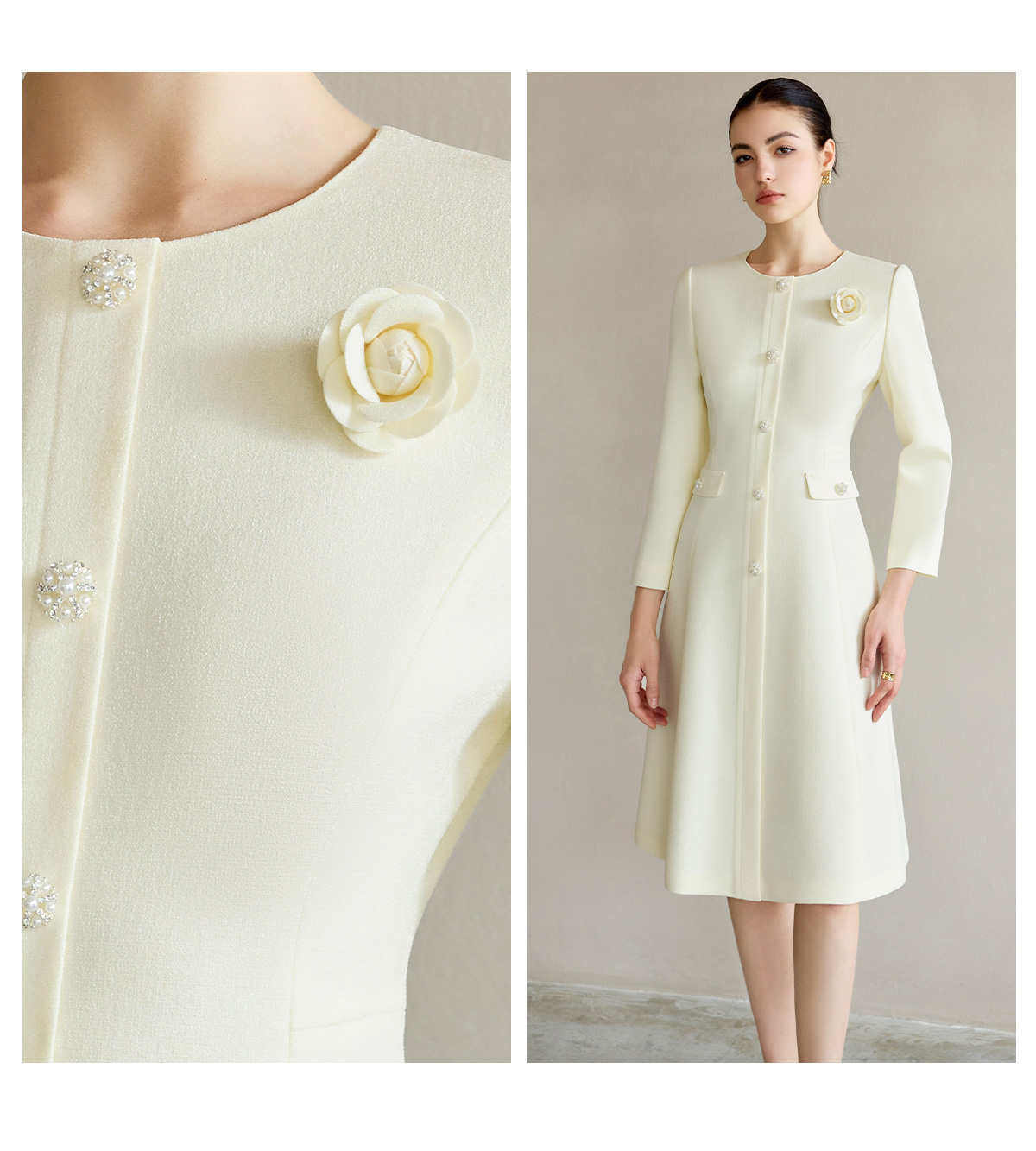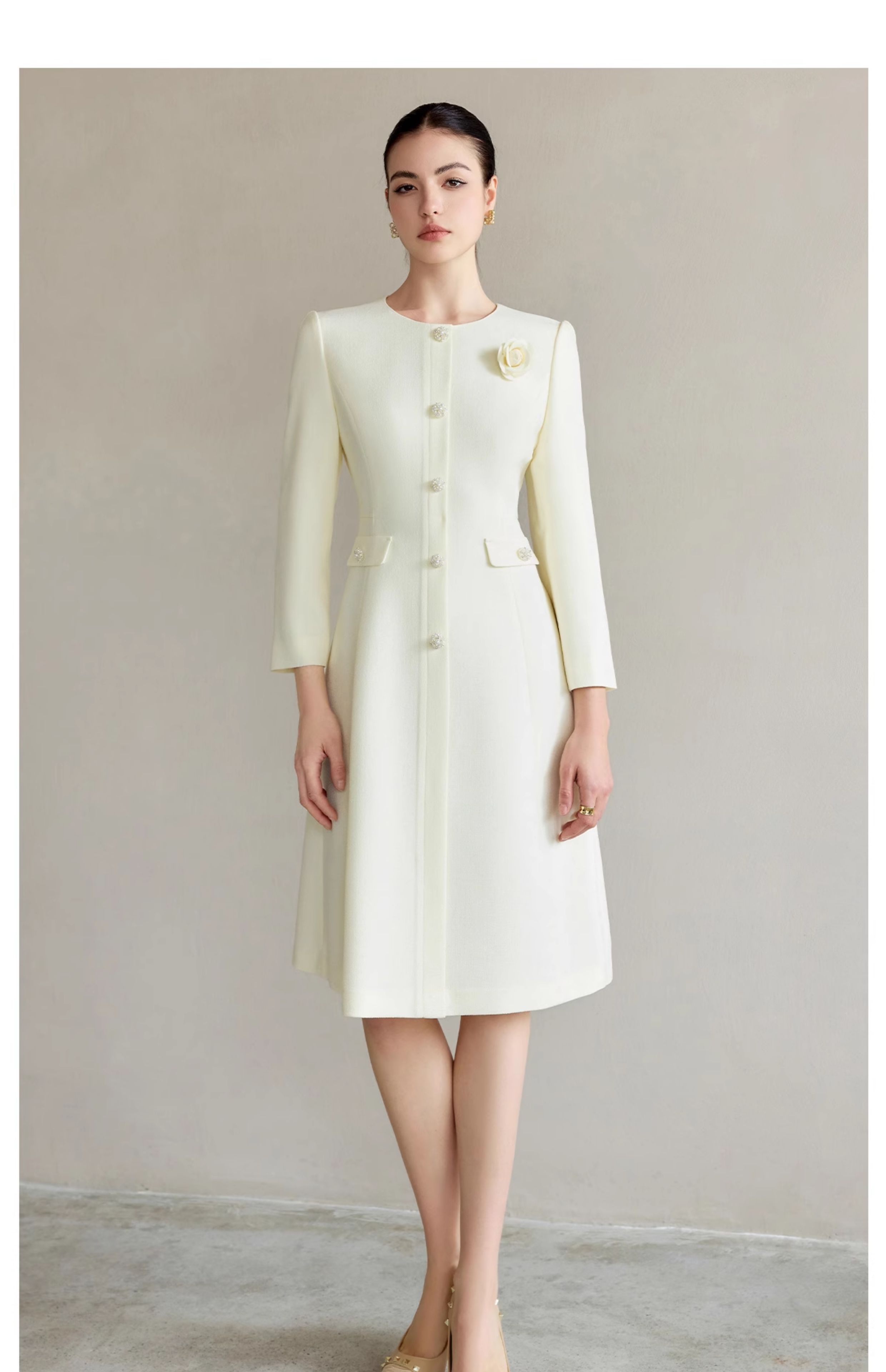 IWY/气质名媛米色连衣裙女新款圆领法式西装裙主持上镜正装Q1293