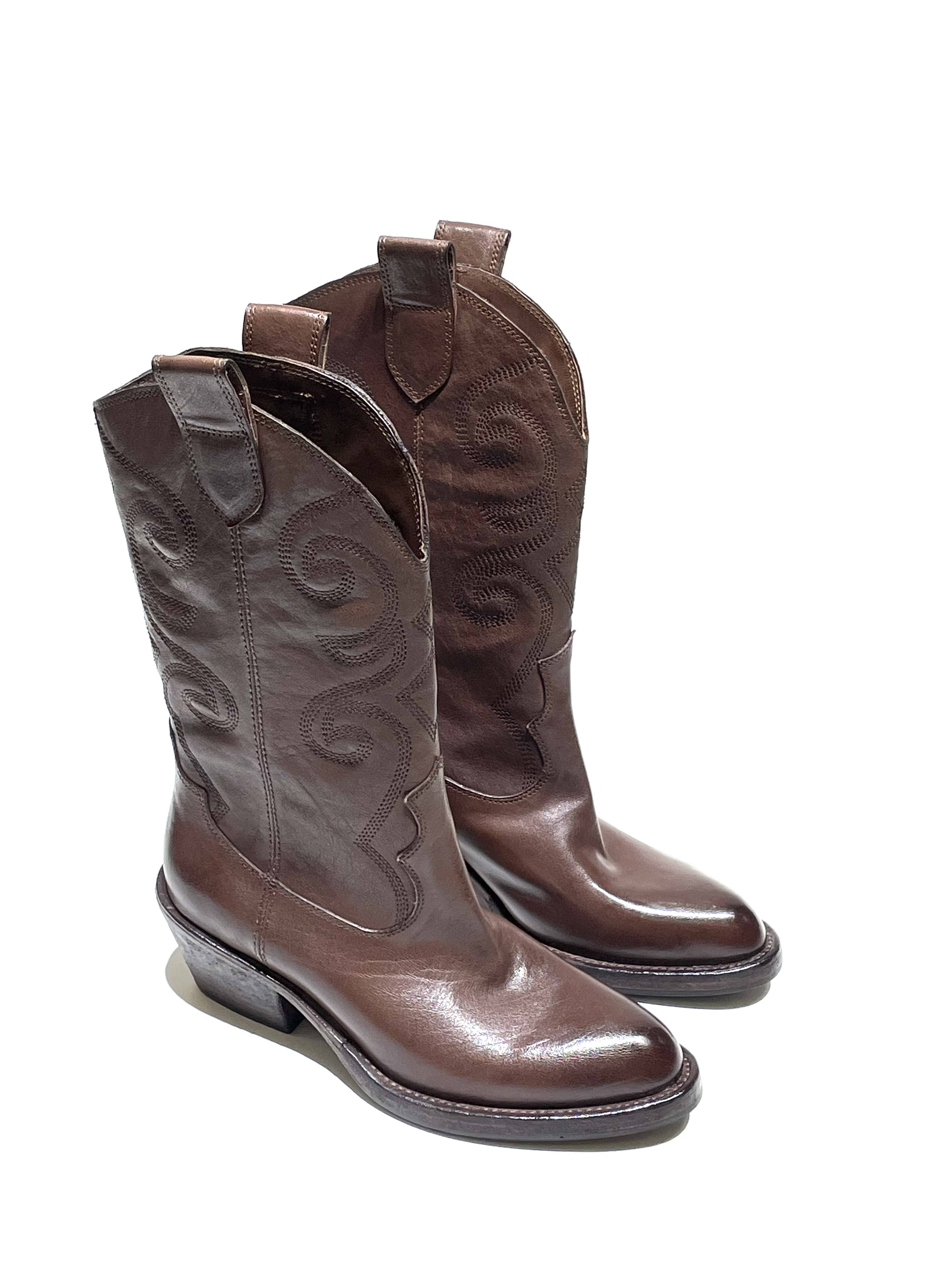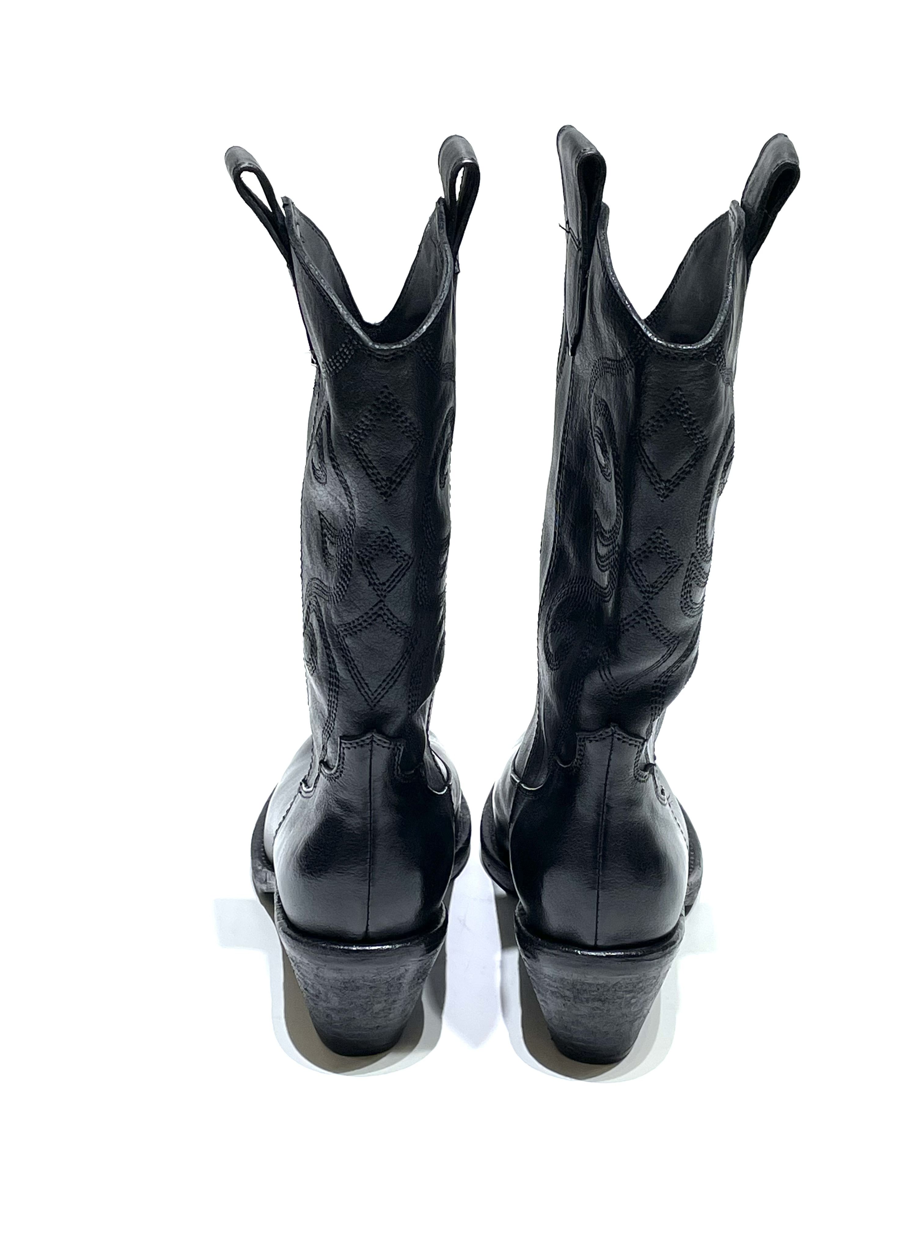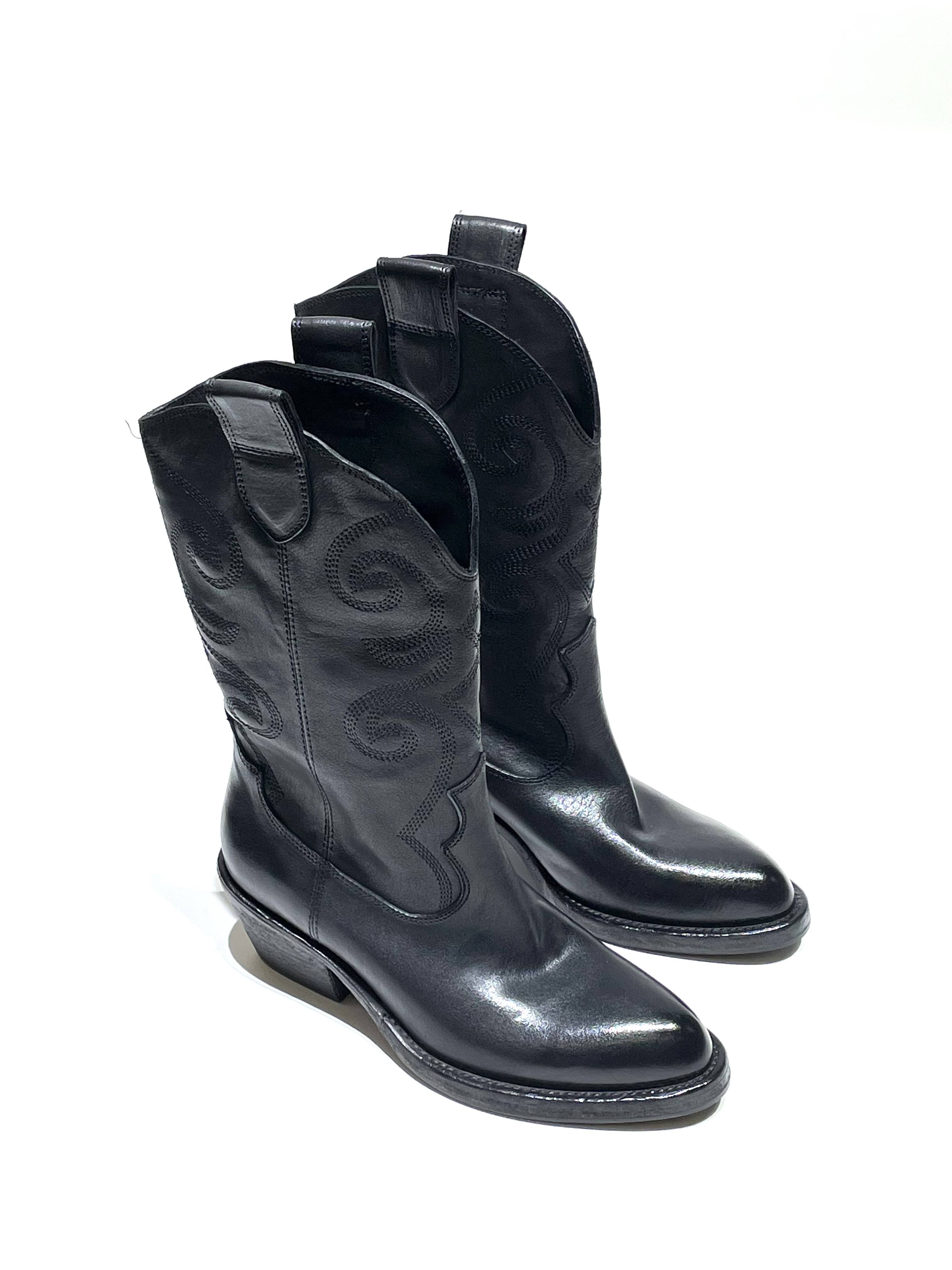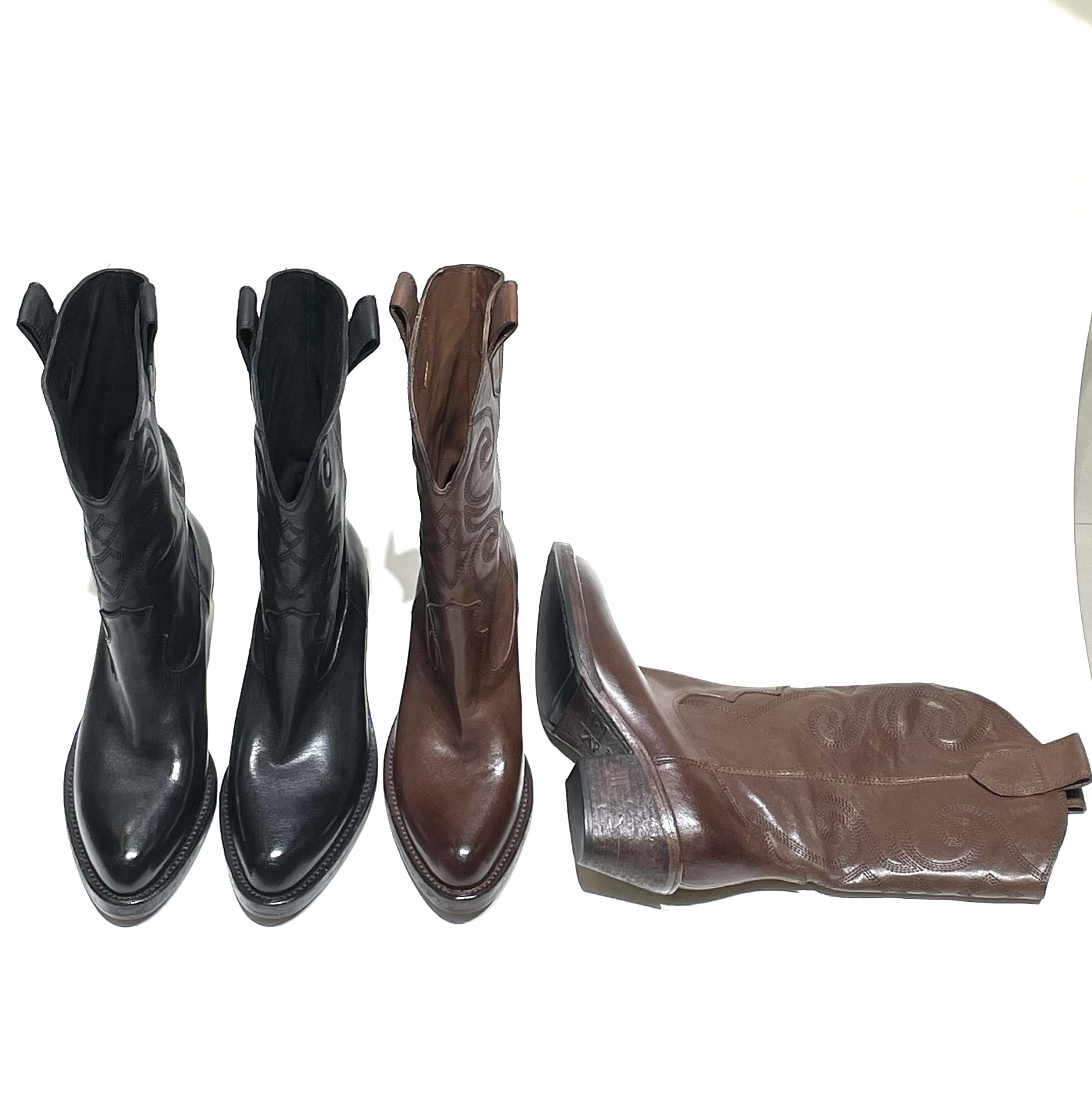 美拉德刺绣牛仔靴西部靴又称"德州靴"因此更加注重其功能性时至今日随着复古风和中性元素的盛行曾经的西部着装风格重回大众视野众多西部标志性单品被设计师们重新带回时尚领域在时尚圈掀起风潮!