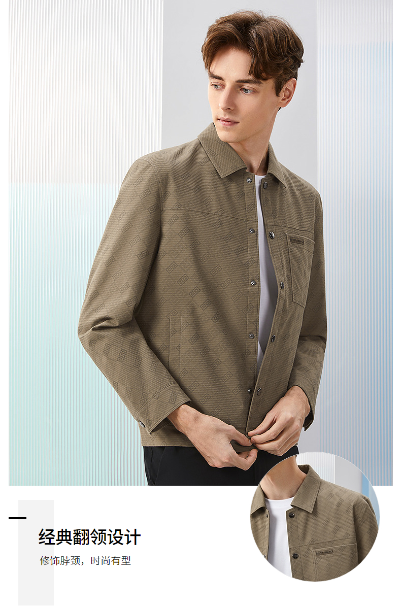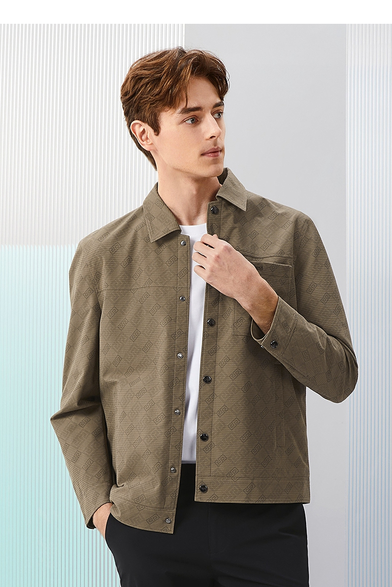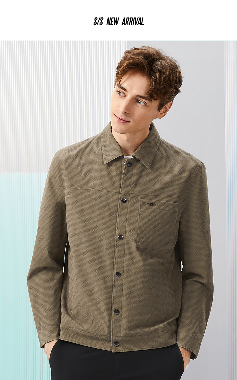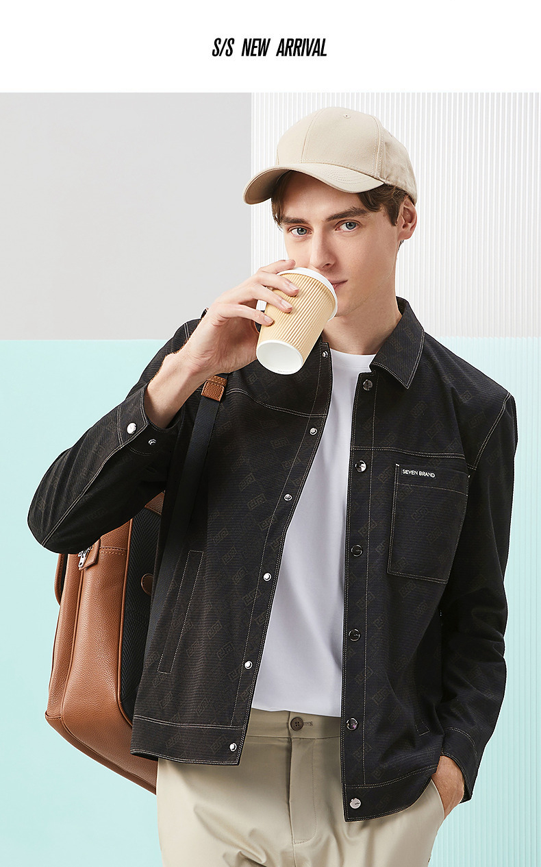 柒牌男装翻领夹克男2024春季新款时尚潮流中青年字母满印休闲外套 126K70140