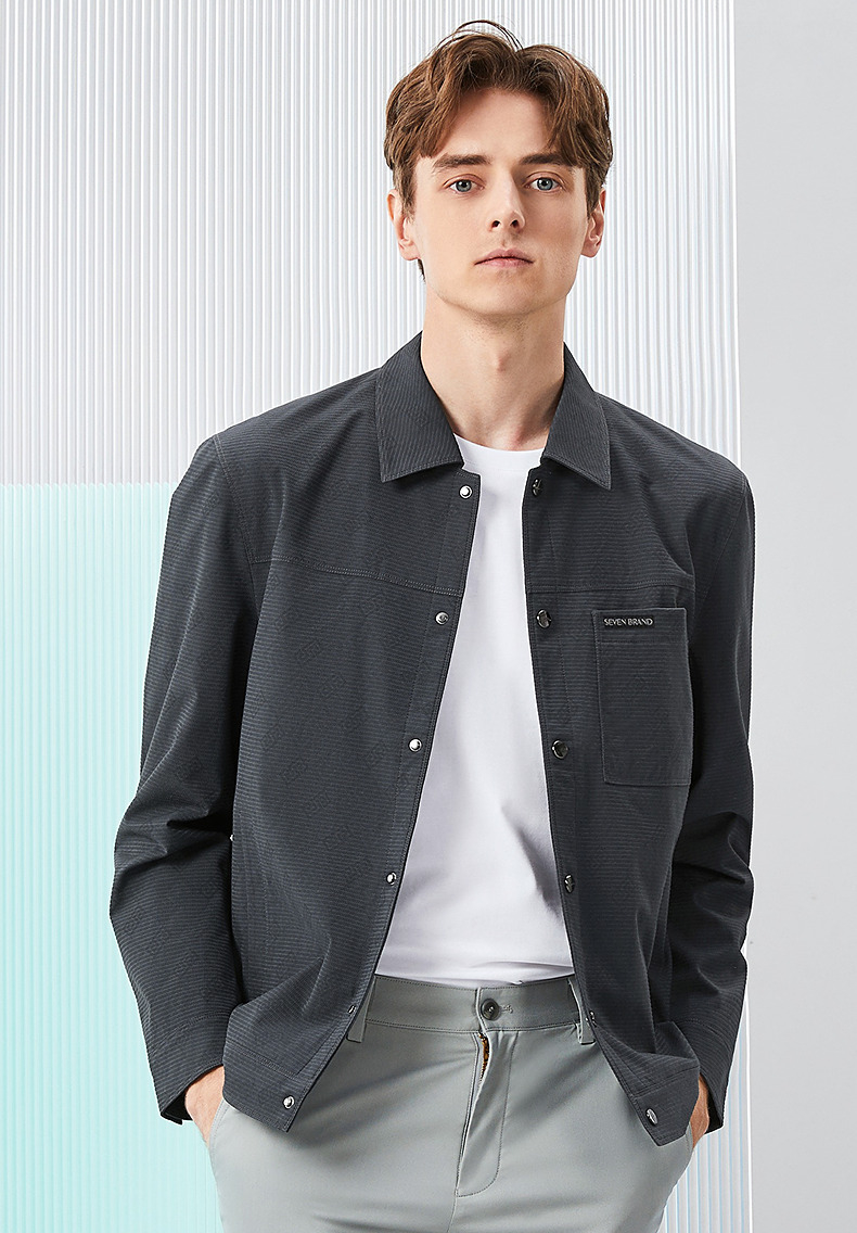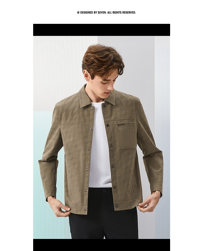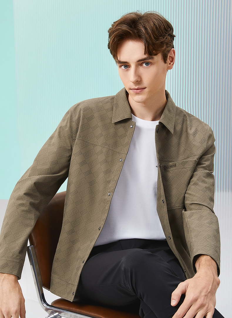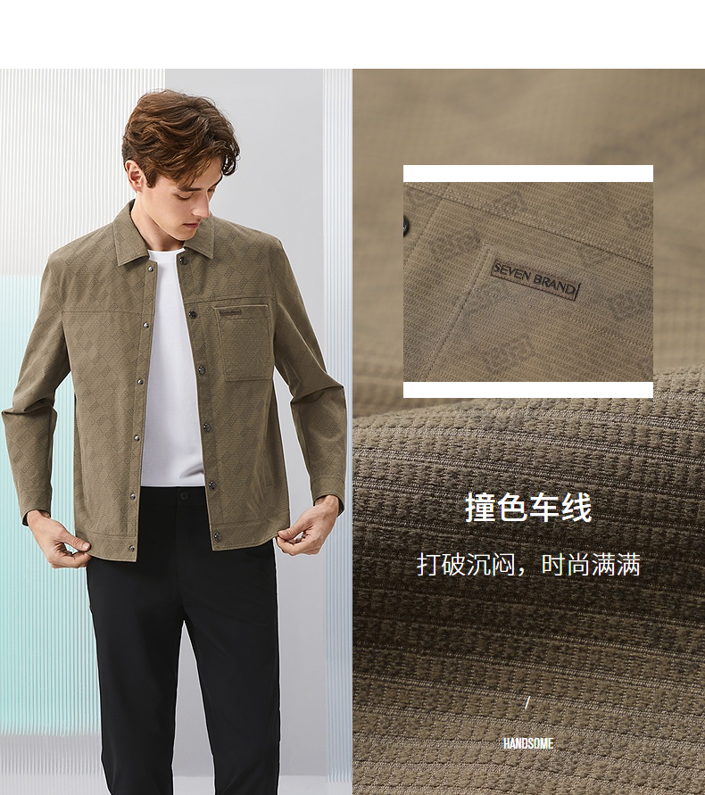 柒牌男装翻领夹克男2024春季新款时尚潮流中青年字母满印休闲外套 126K70140