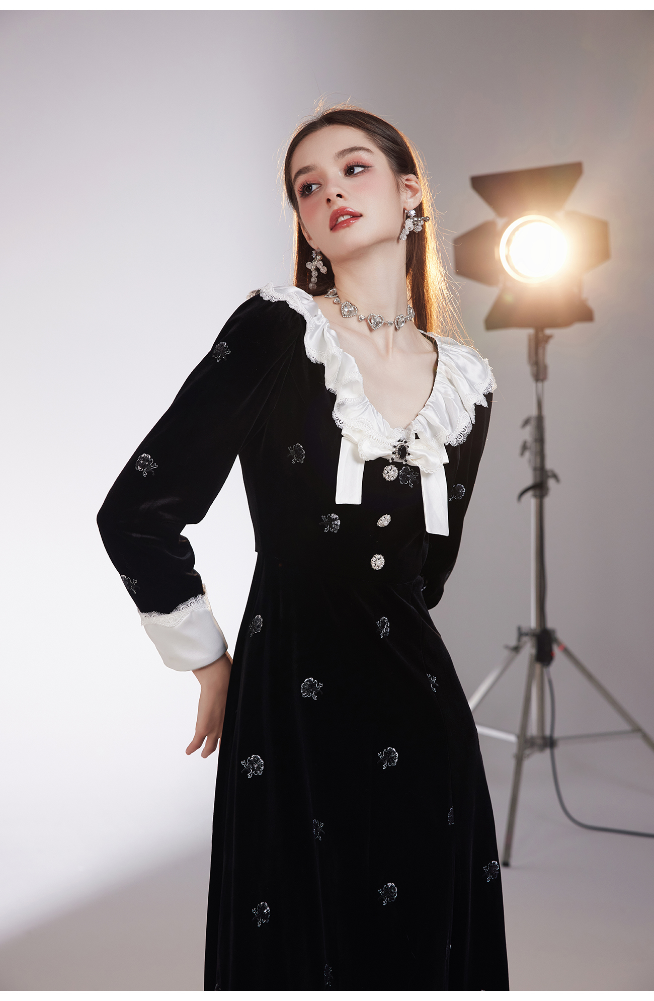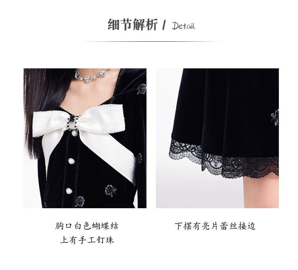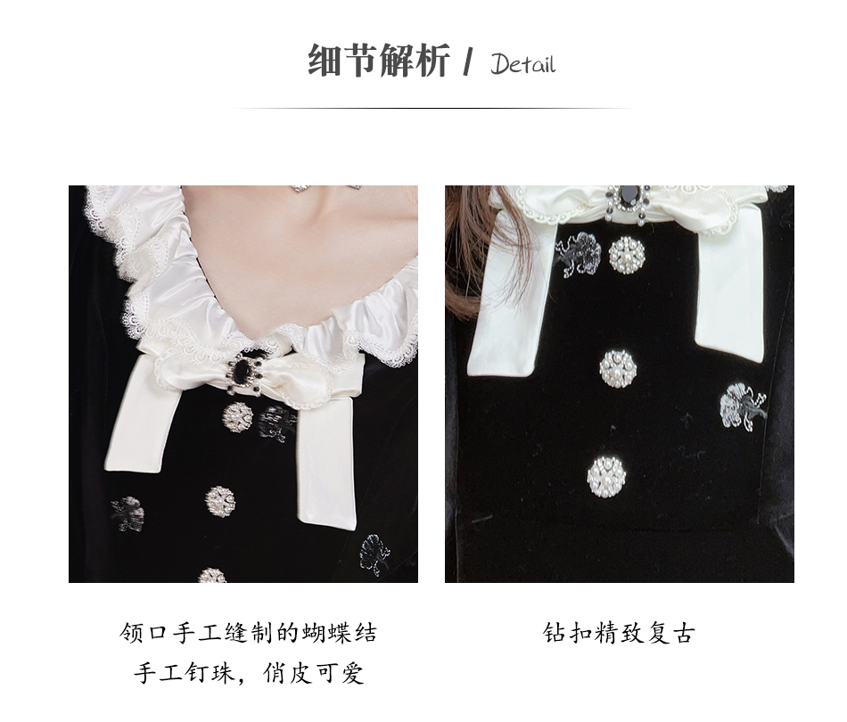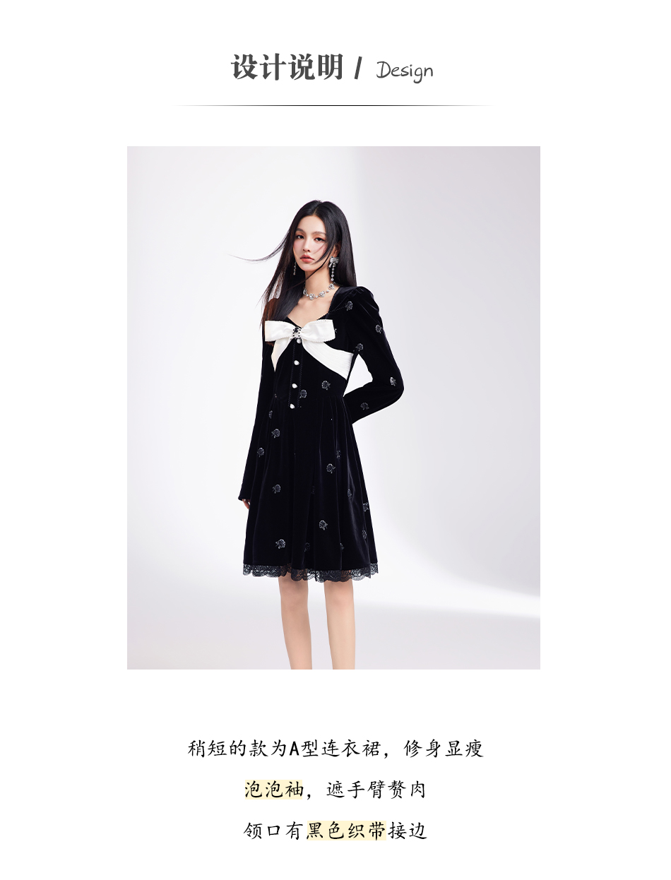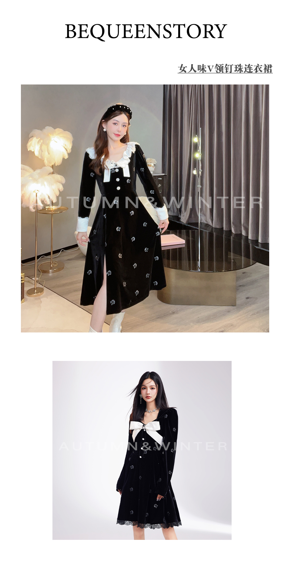 【孤品样衣,不退不换】 【烛光晚宴】气质女人味V领钉珠连衣裙