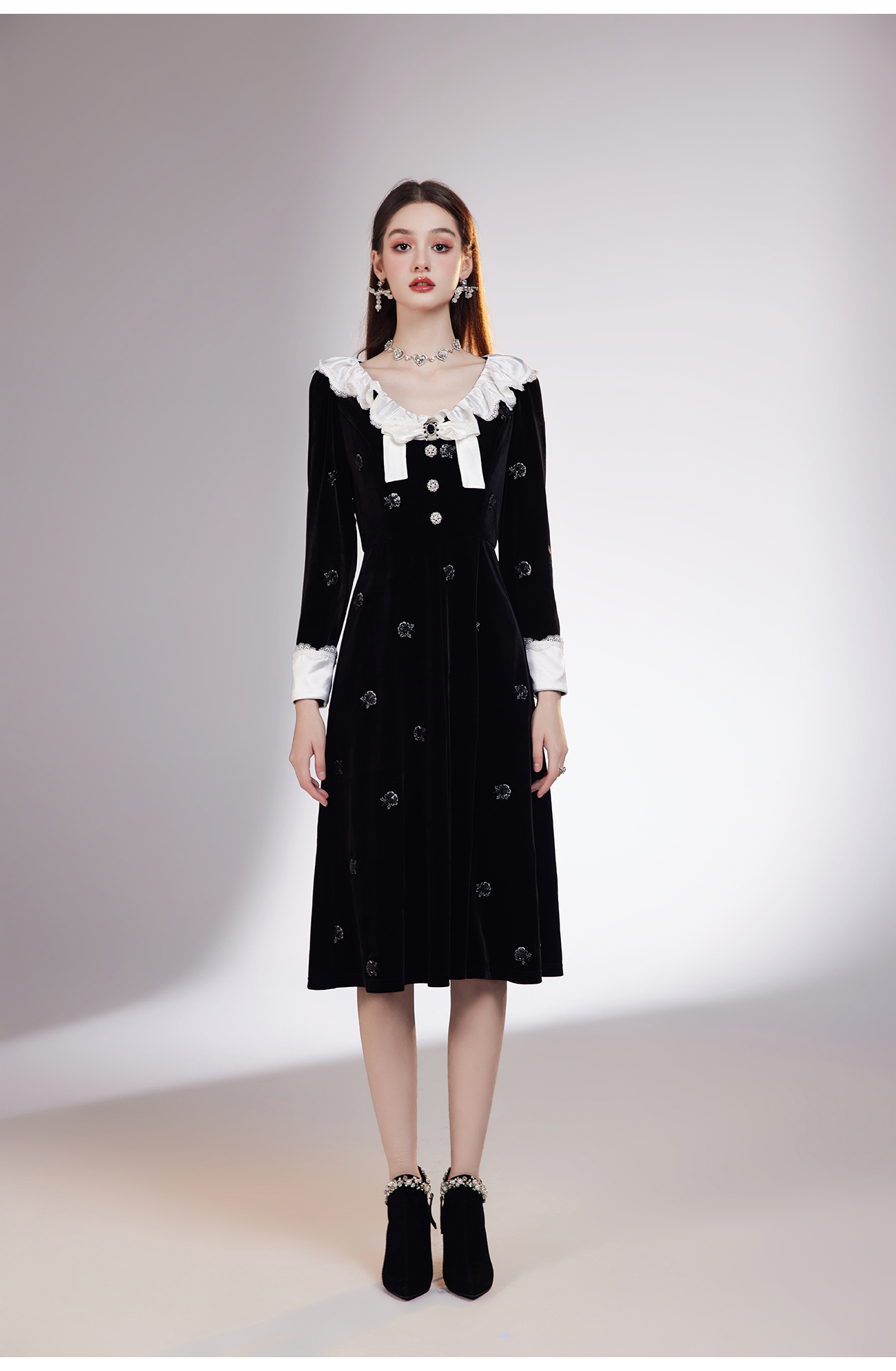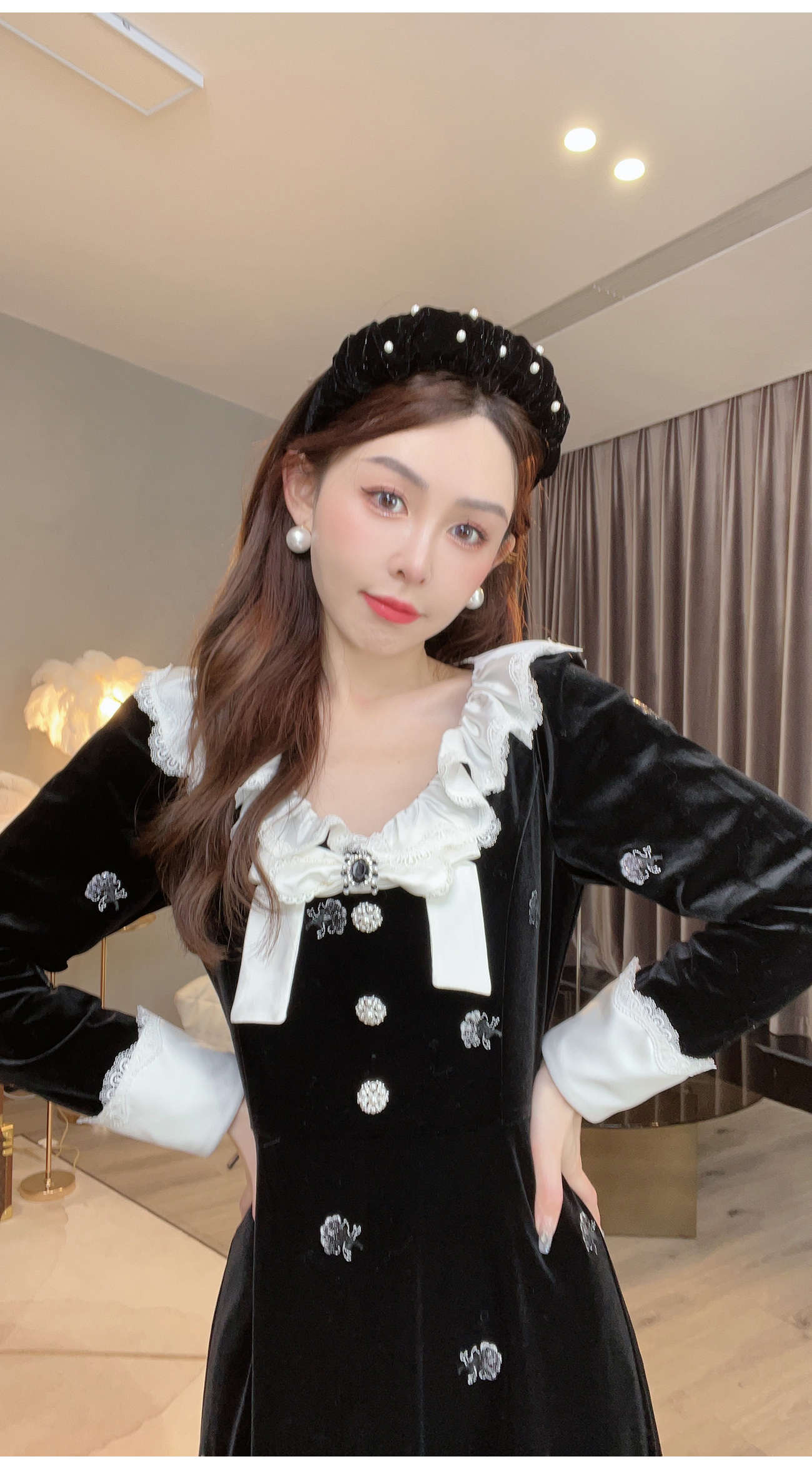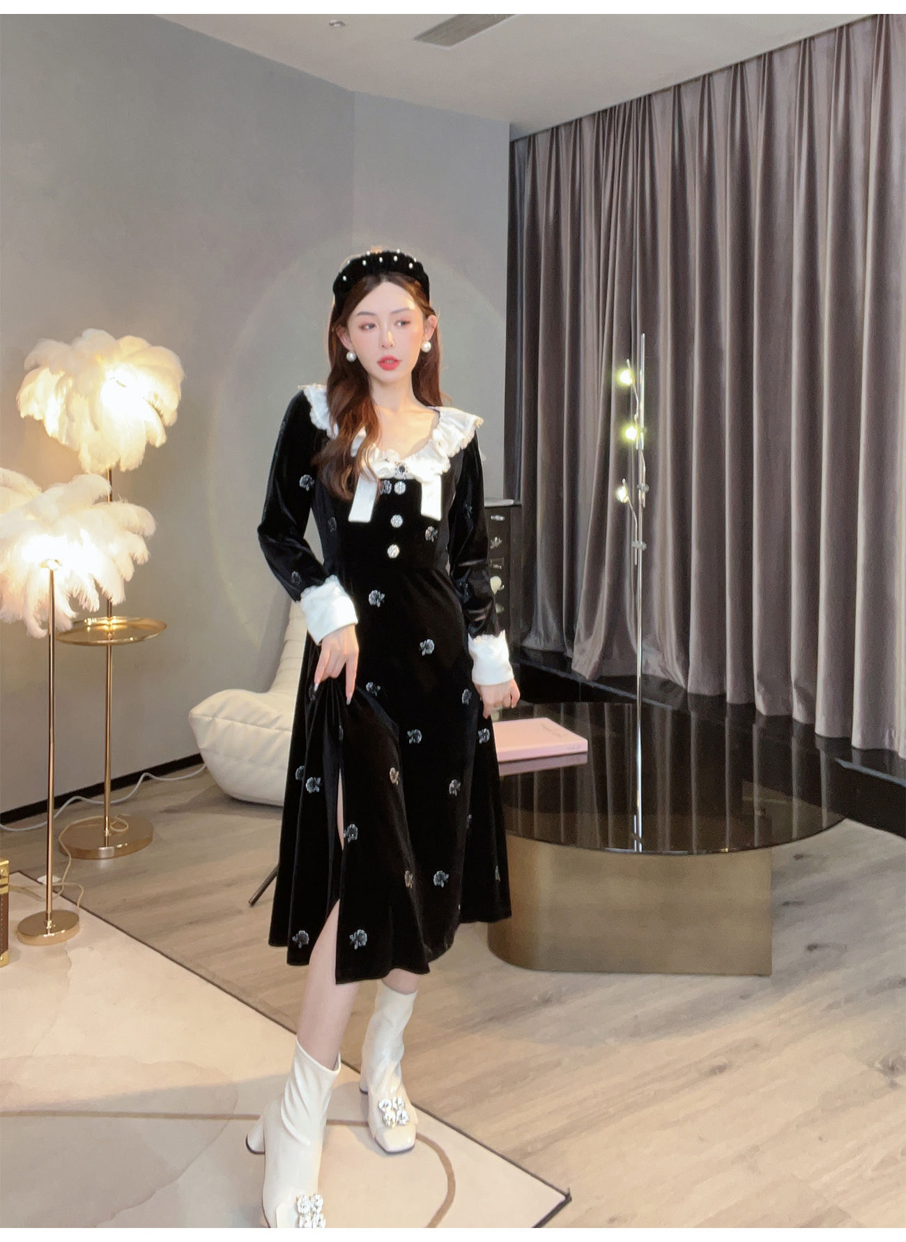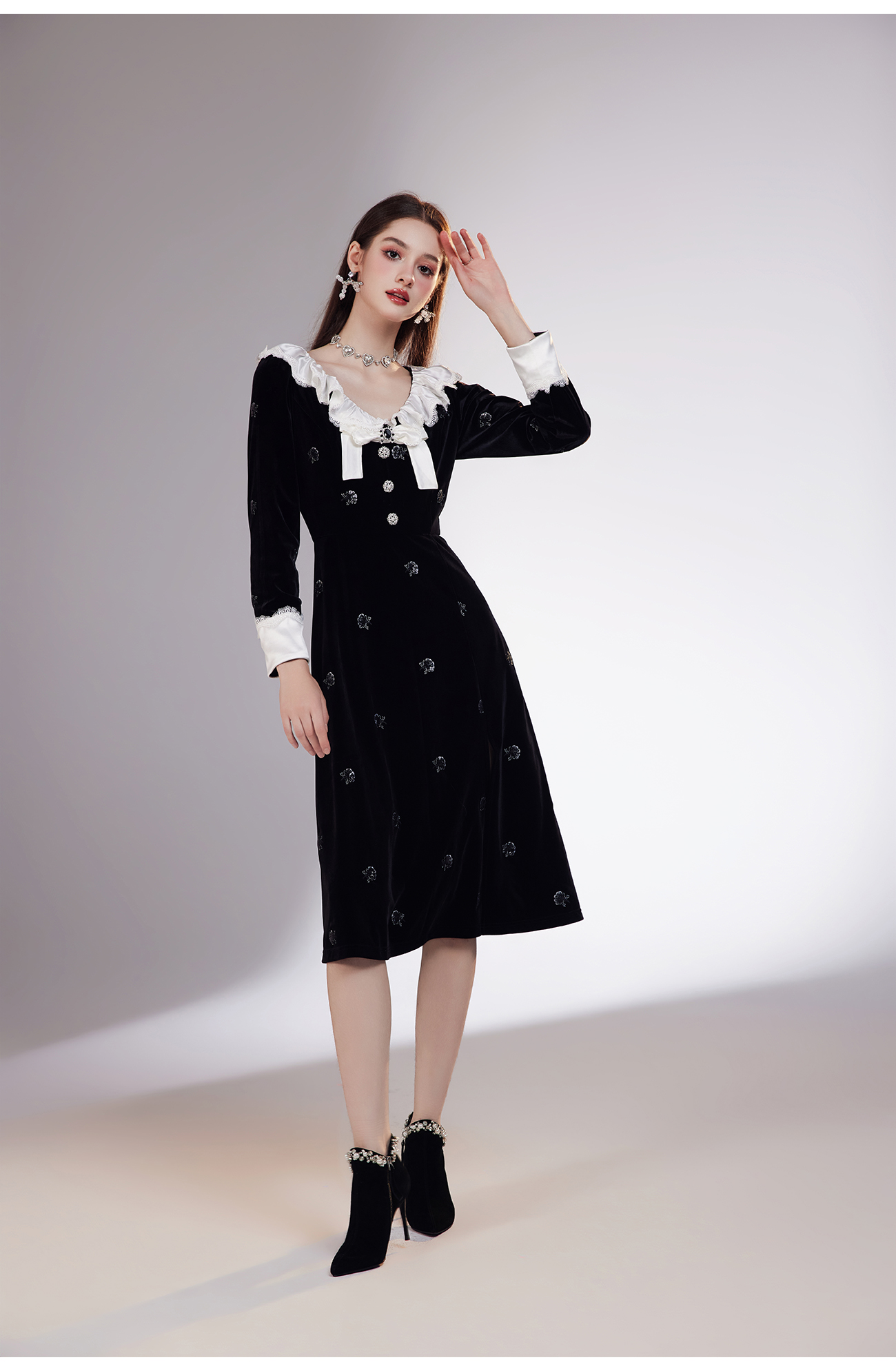 【孤品样衣,不退不换】 【烛光晚宴】气质女人味V领钉珠连衣裙