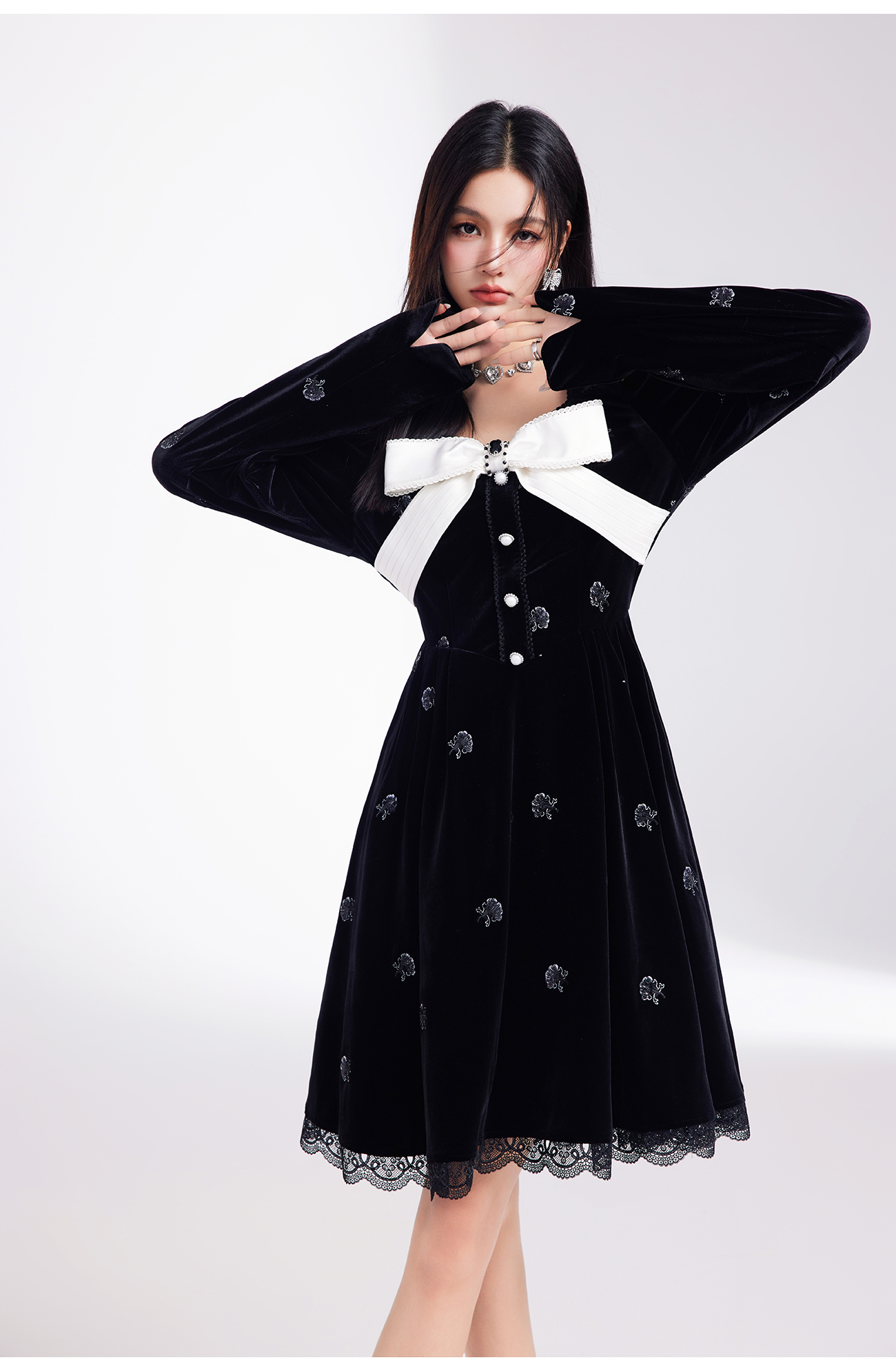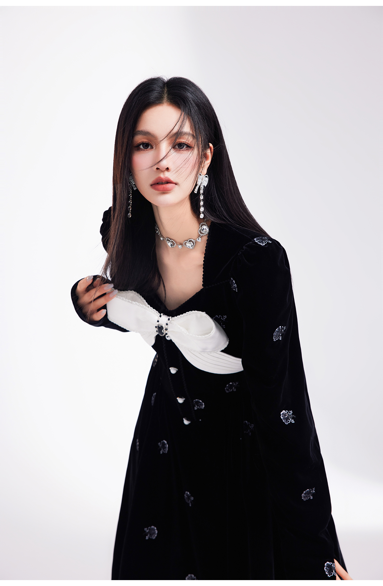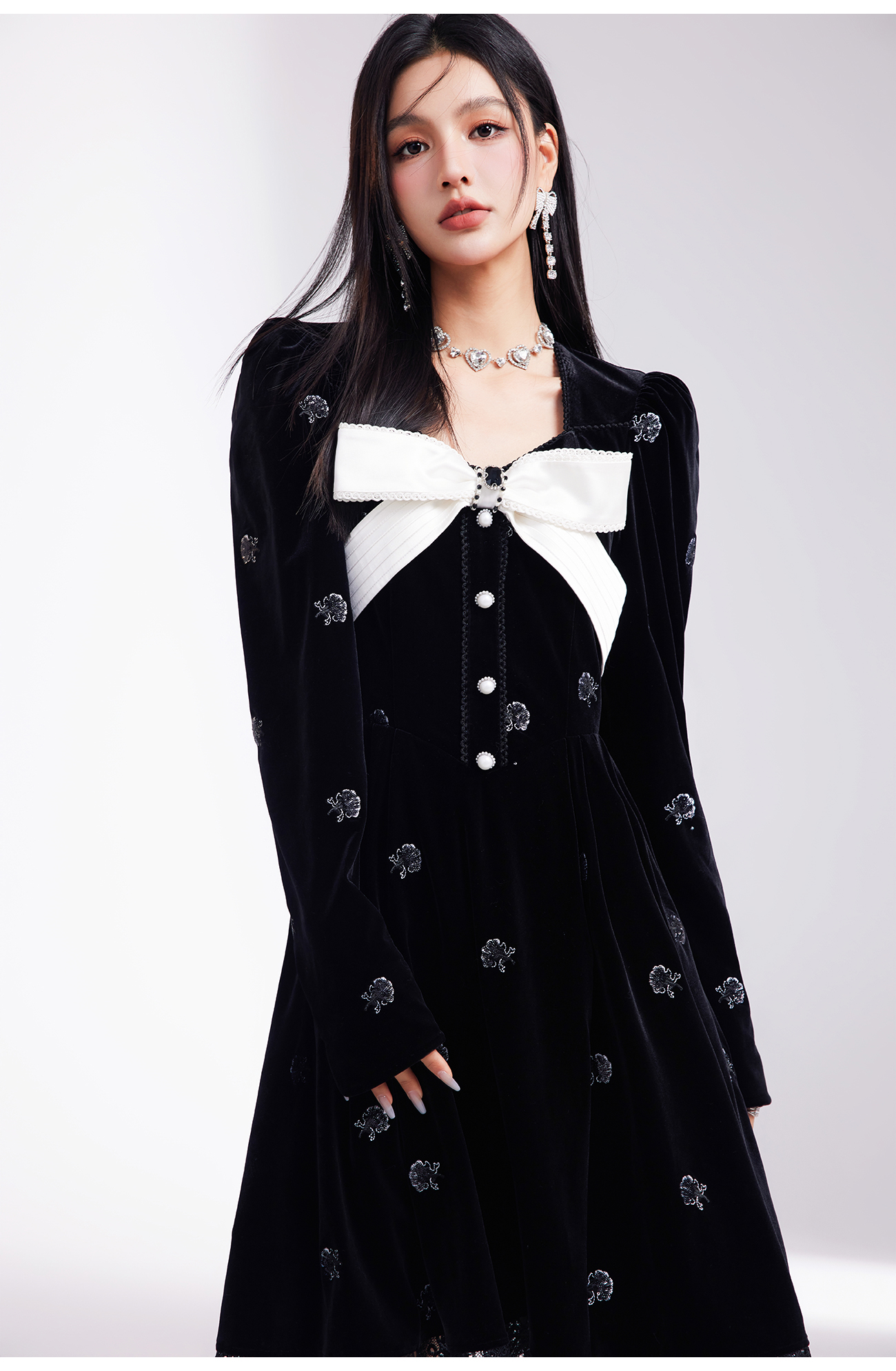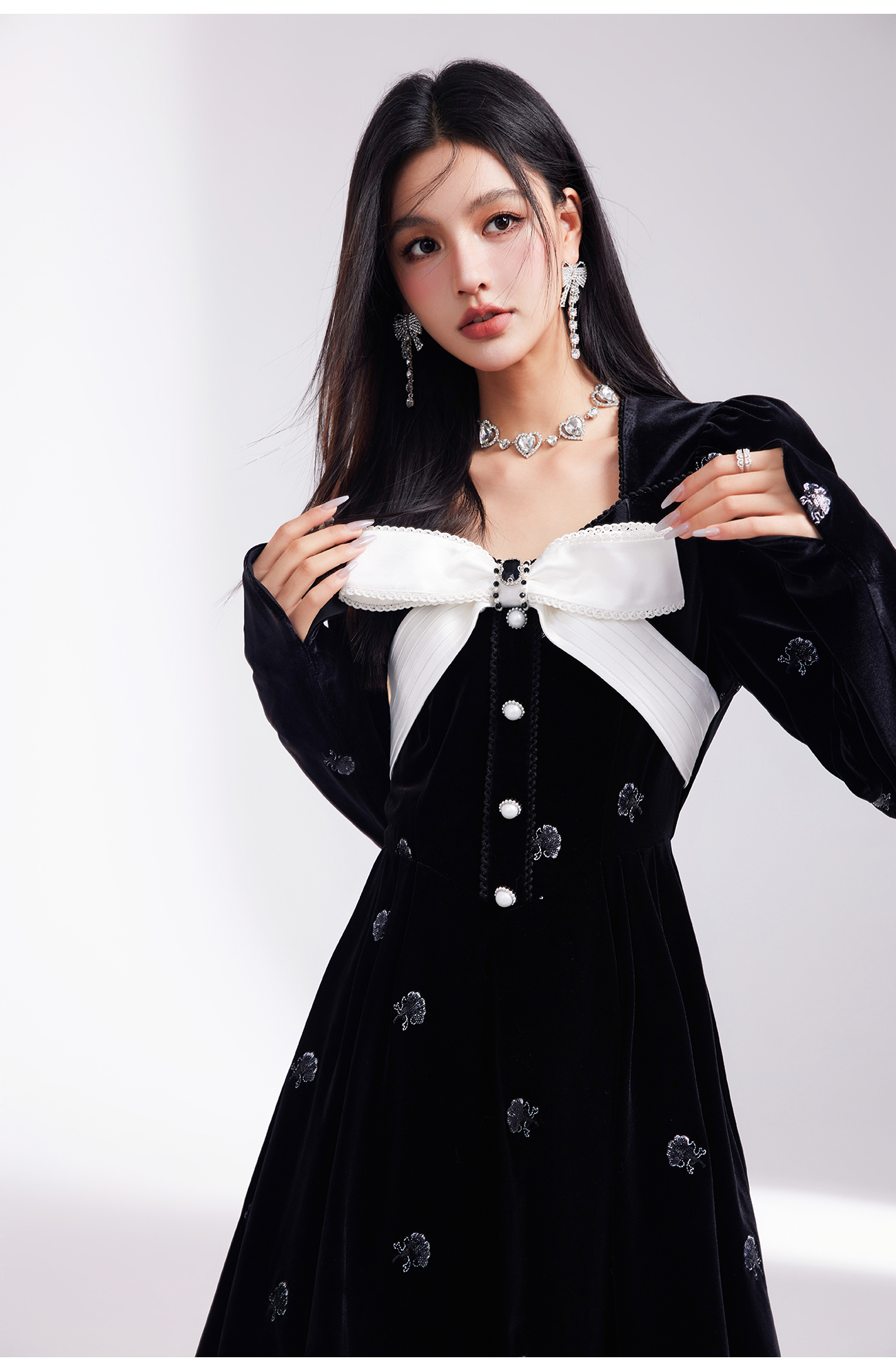 【孤品样衣,不退不换】 【烛光晚宴】气质女人味V领钉珠连衣裙