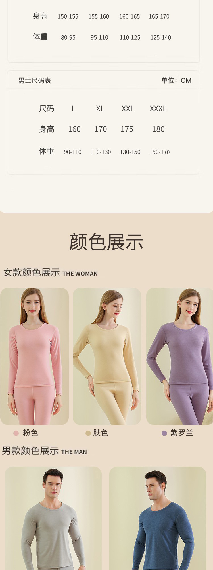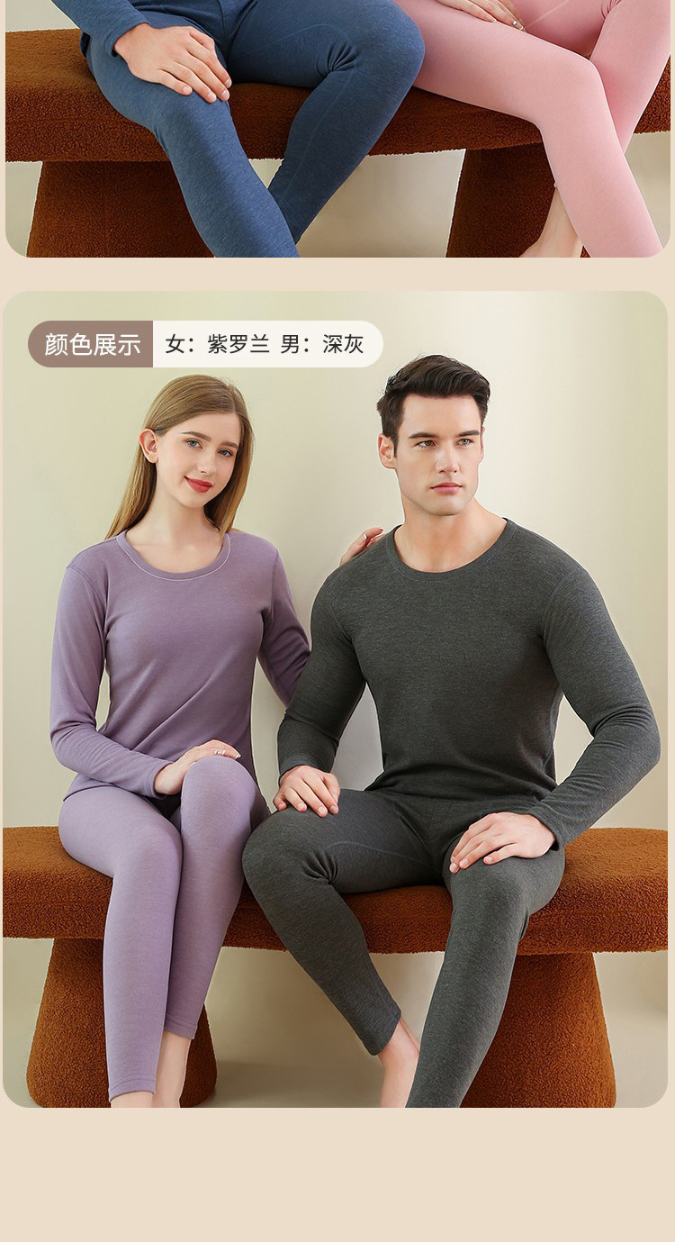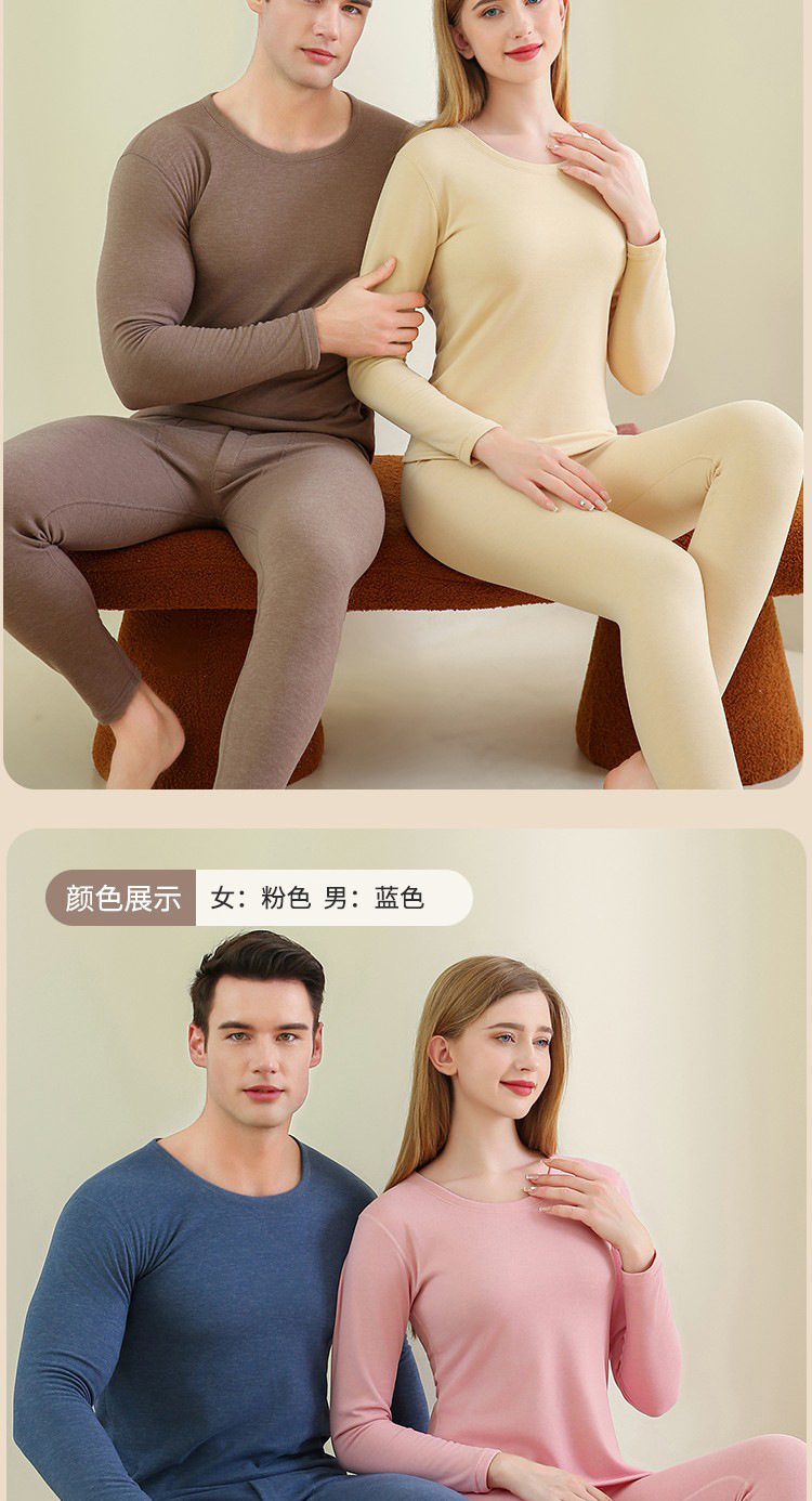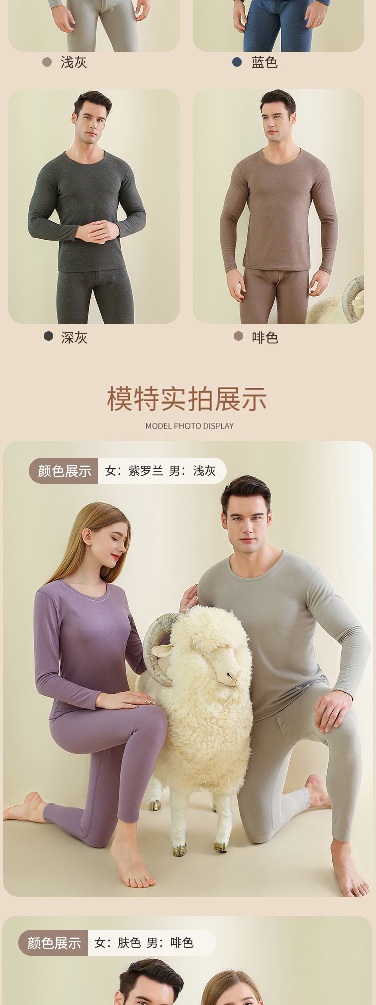 蚕丝羊毛男士女士保暖内衣新款圆领润肤柔软打底内穿秋衣秋裤套装