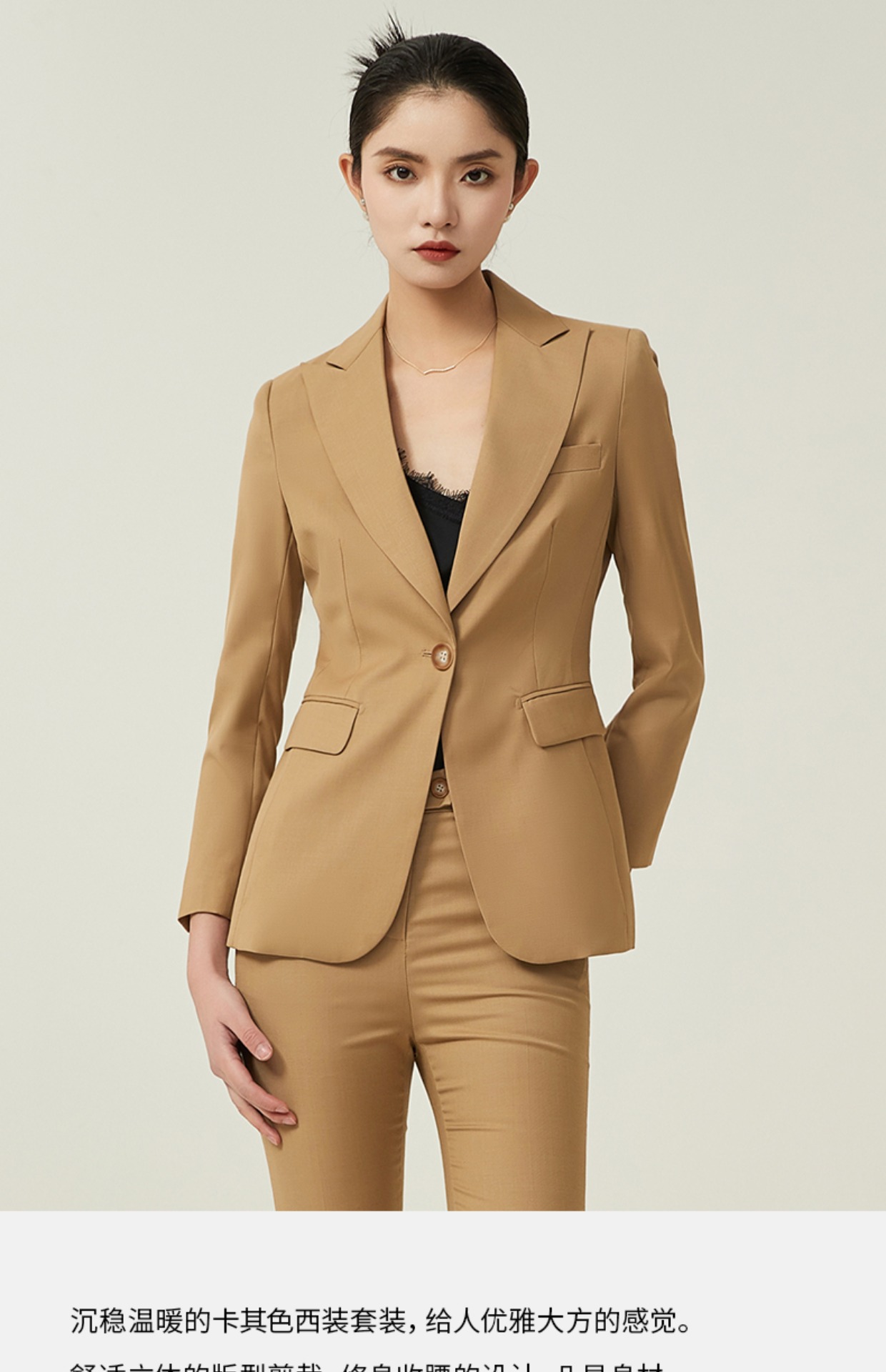 IWY/高端卡其色西装套装女秋季款时尚气质职业装售楼部酒店前台工作服193028C1+P3