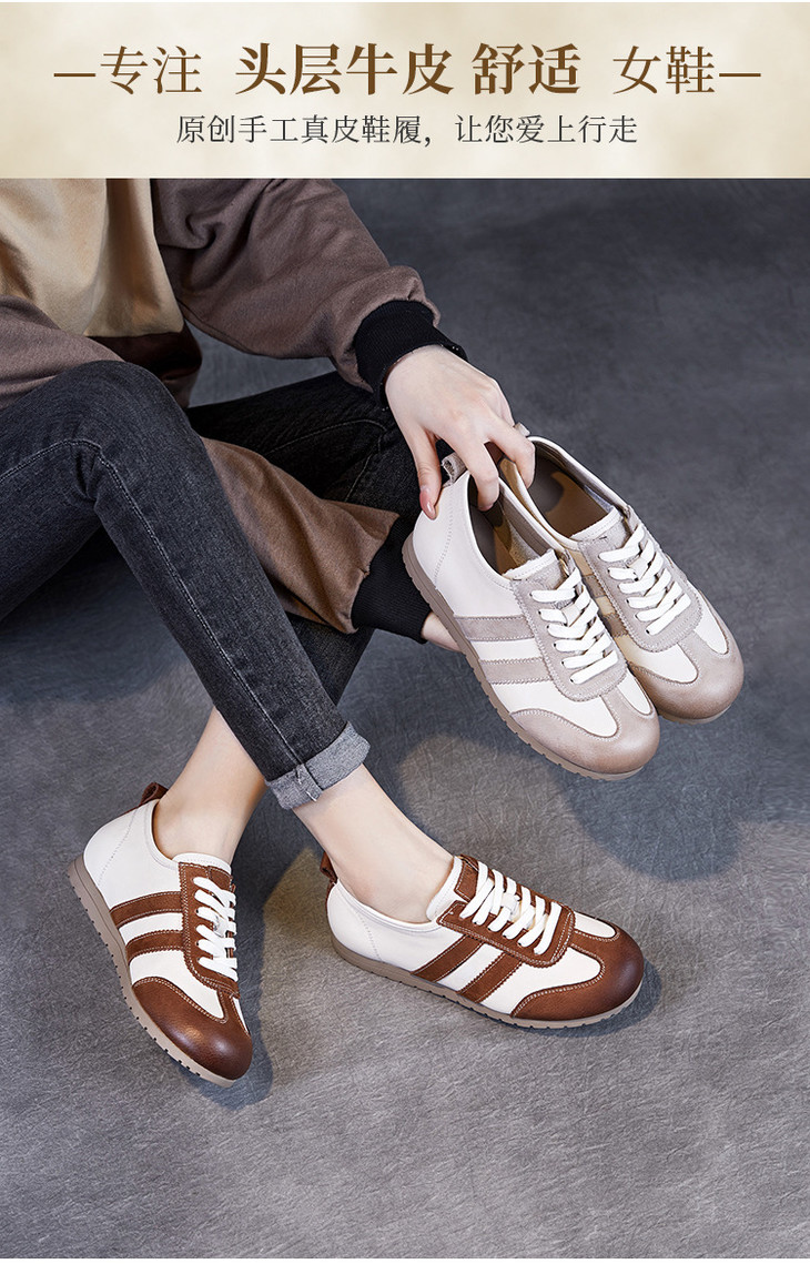 真皮平底舒适运动鞋,百搭系带休闲鞋ZM258165